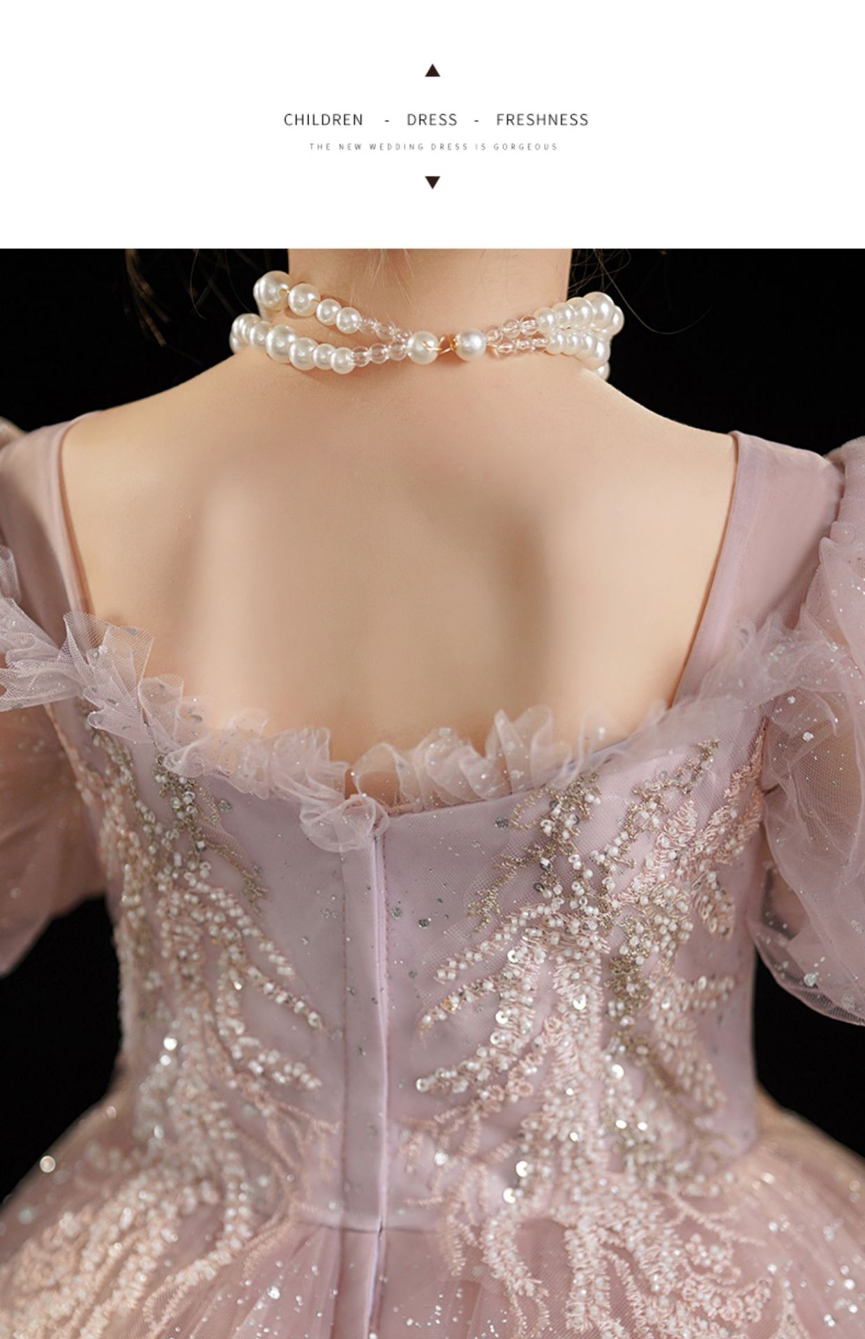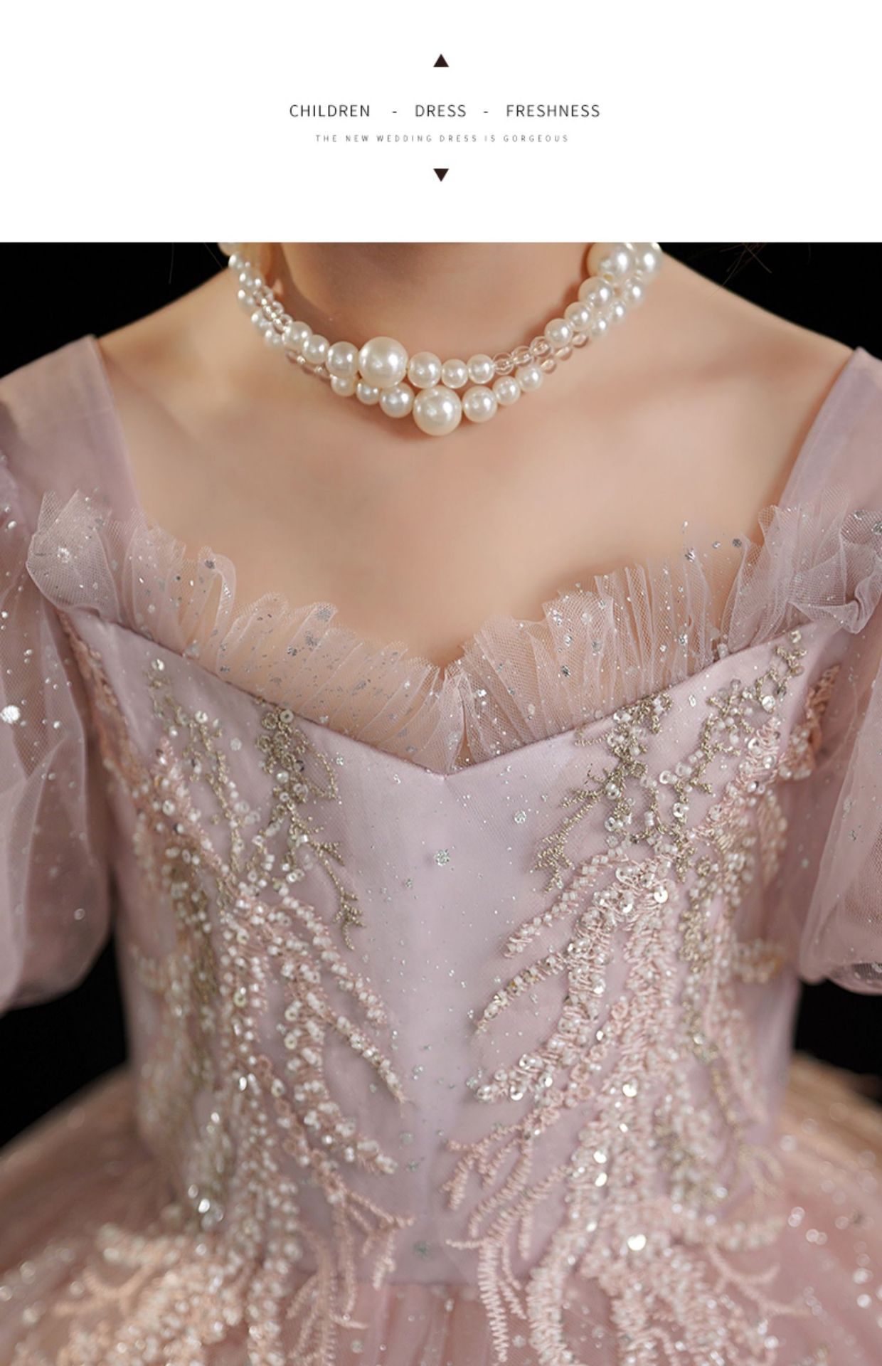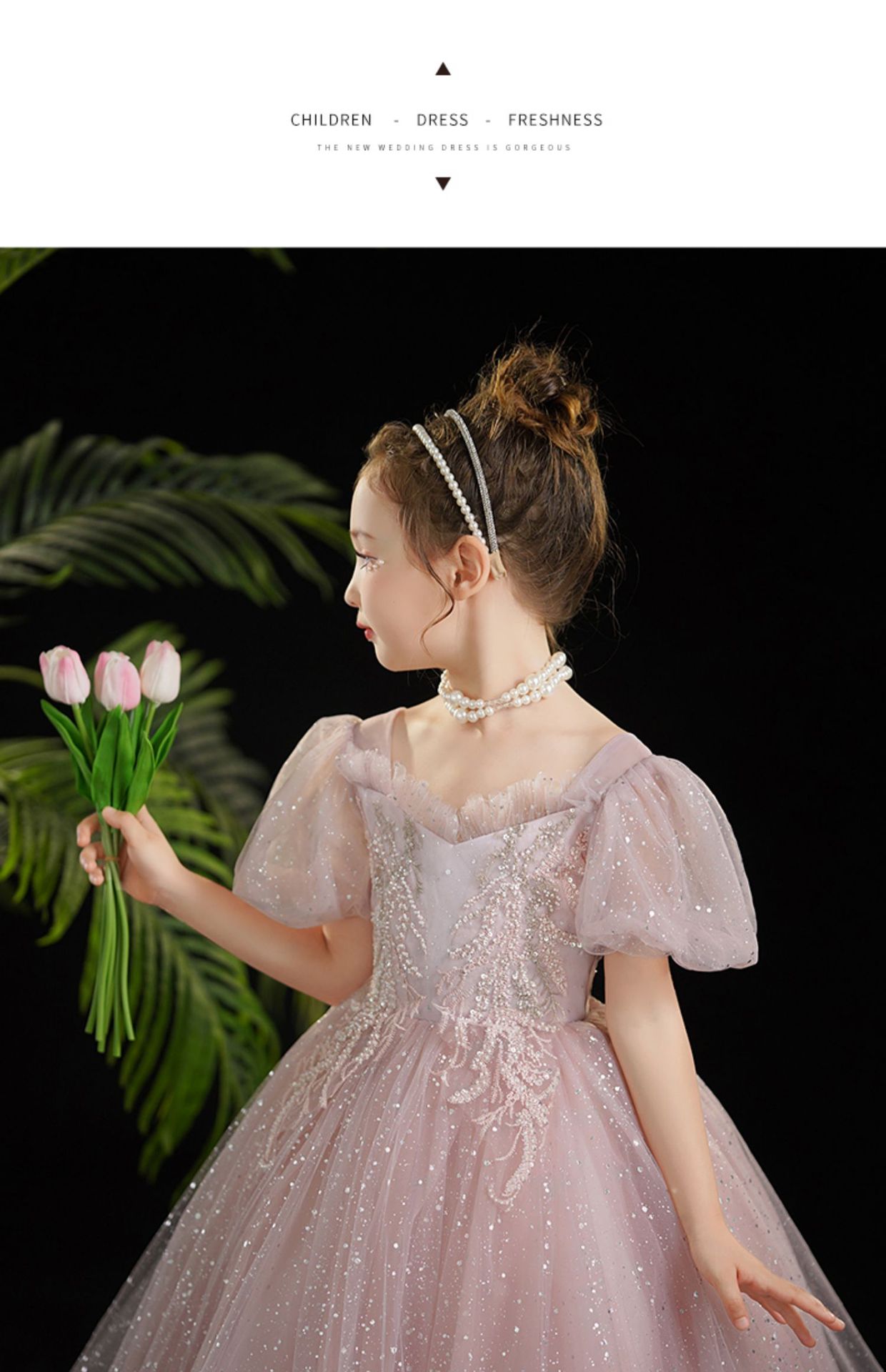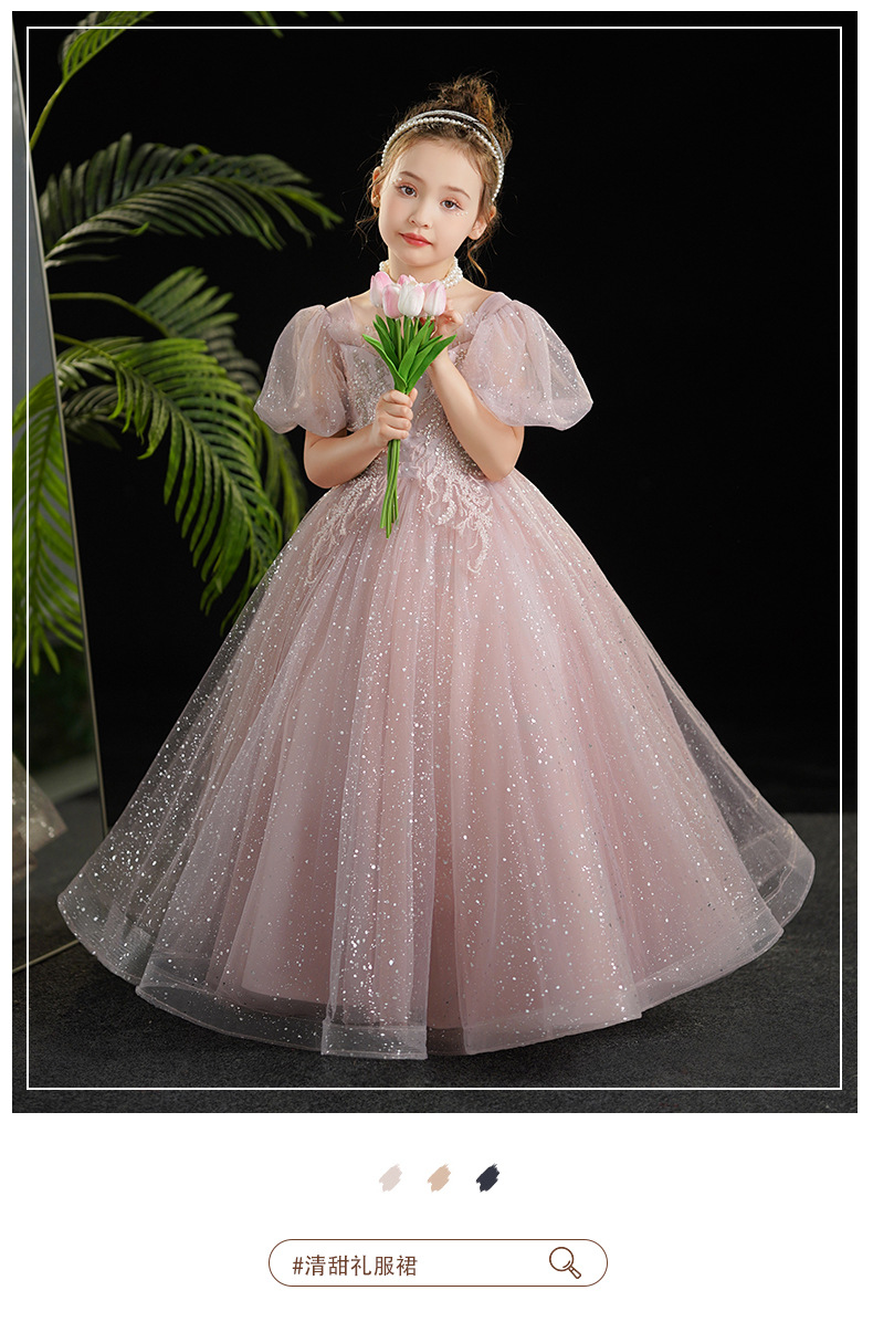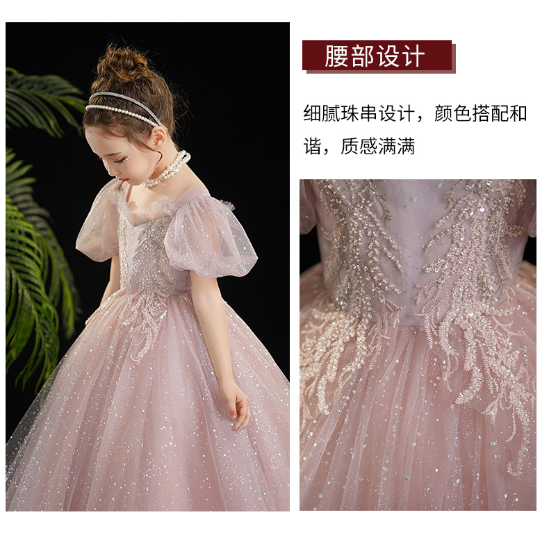 女童礼服轻奢小众高端公主裙走秀主持人钢琴演奏生日儿童演出粉色