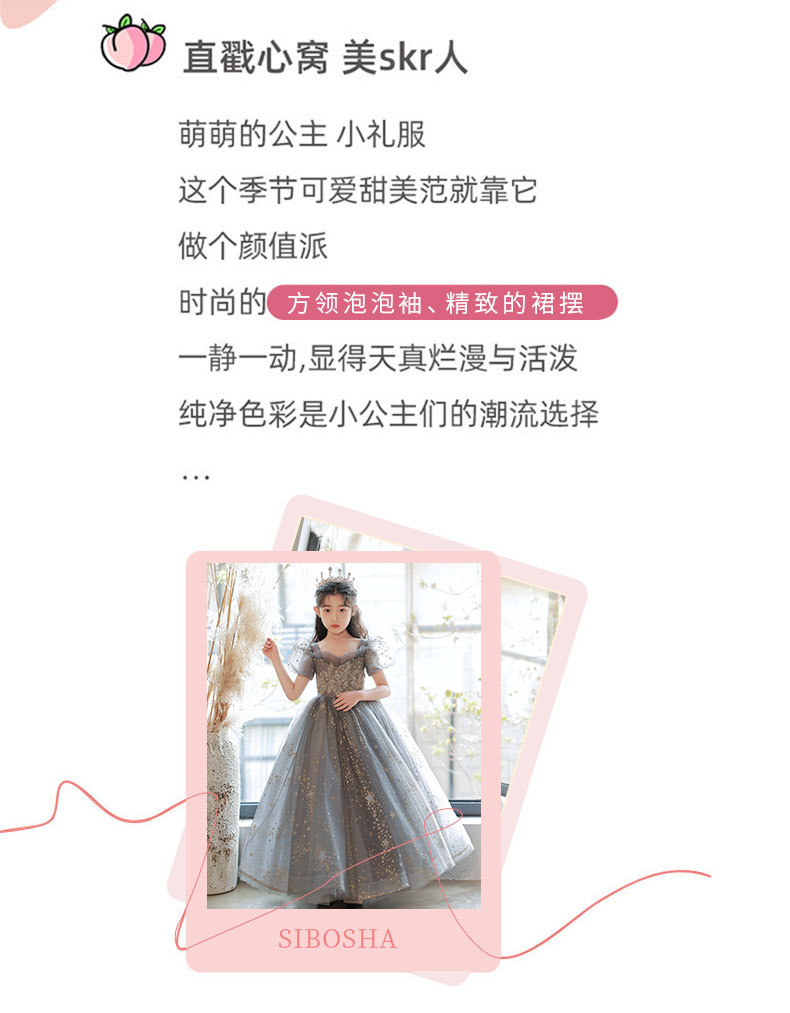儿童礼服公主裙女童走秀钢琴演出服新款春花童蓬蓬纱主持人晚礼服