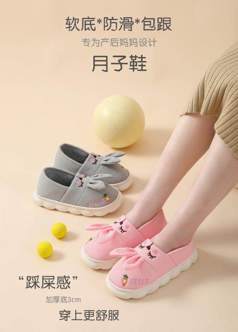 月子鞋春秋季产妇产后用品软底包跟加厚底夏款孕妇棉拖鞋2345月份