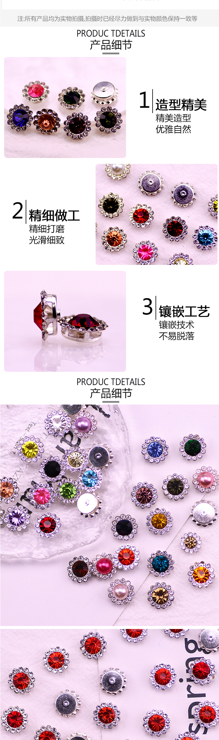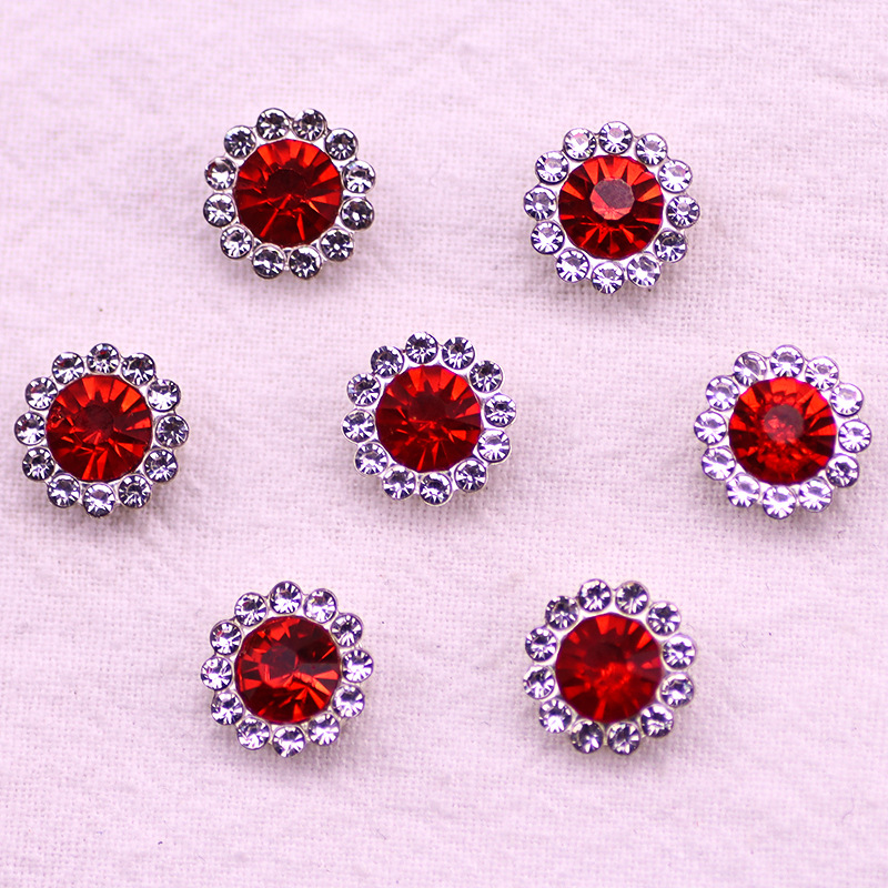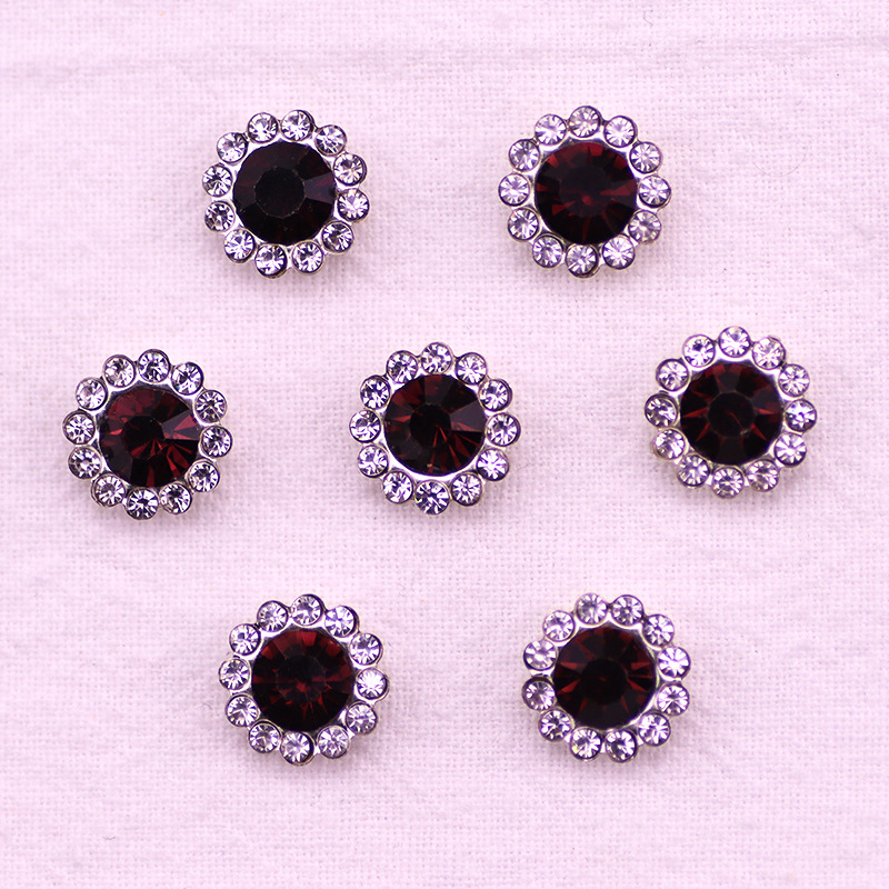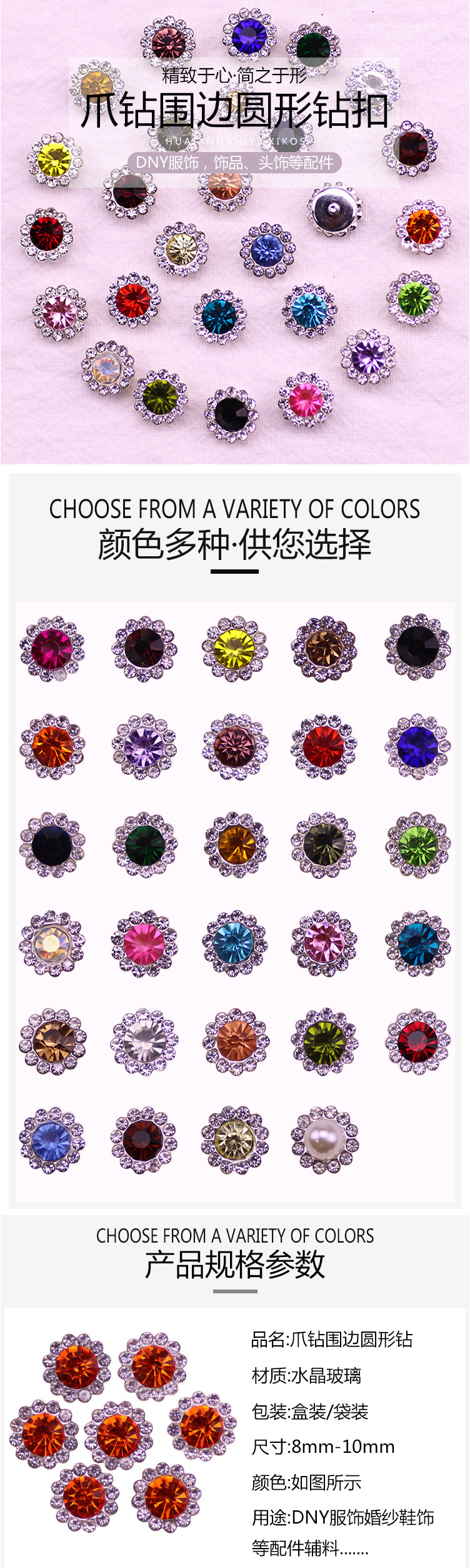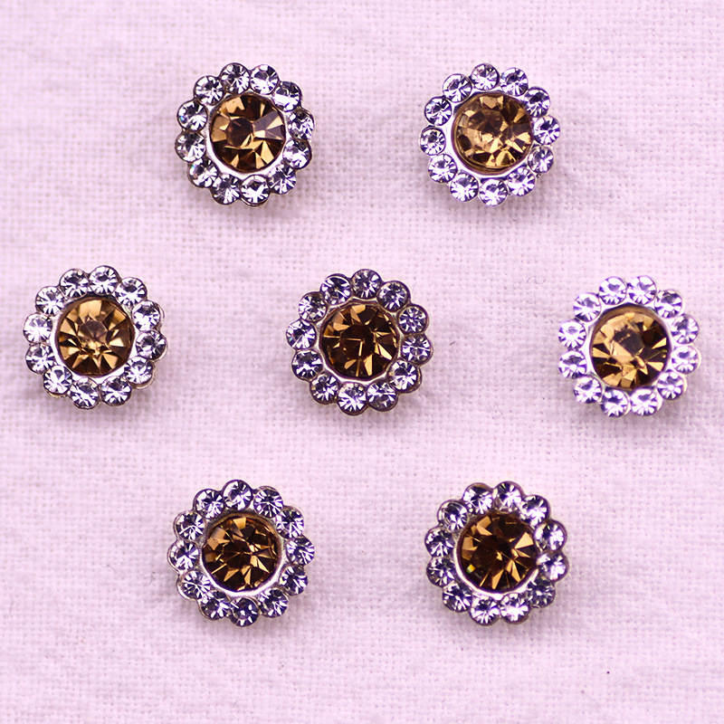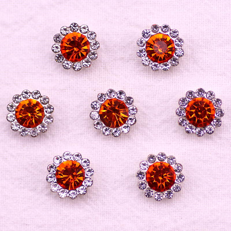 10/12mm圆形双层花盘太阳花爪钻水钻扣蝴蝶结手工DIY舞蹈服装配件