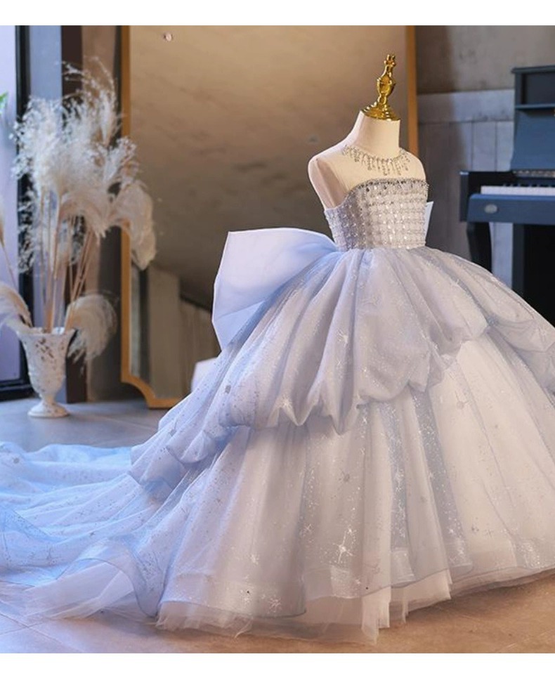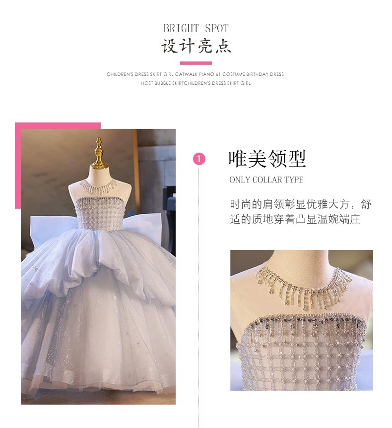 女童礼服高端公主裙儿童走秀主持人花童婚纱大拖尾钢琴演奏演出服