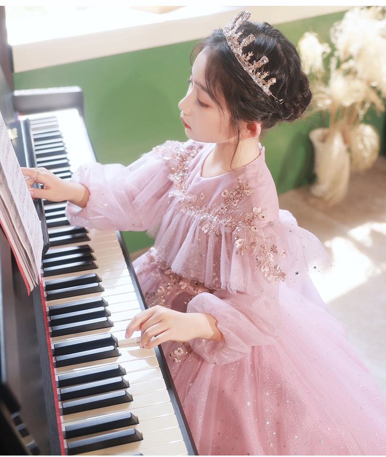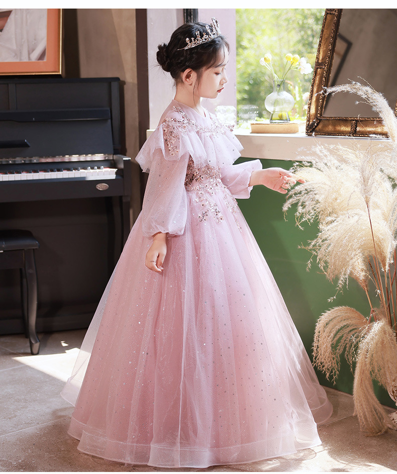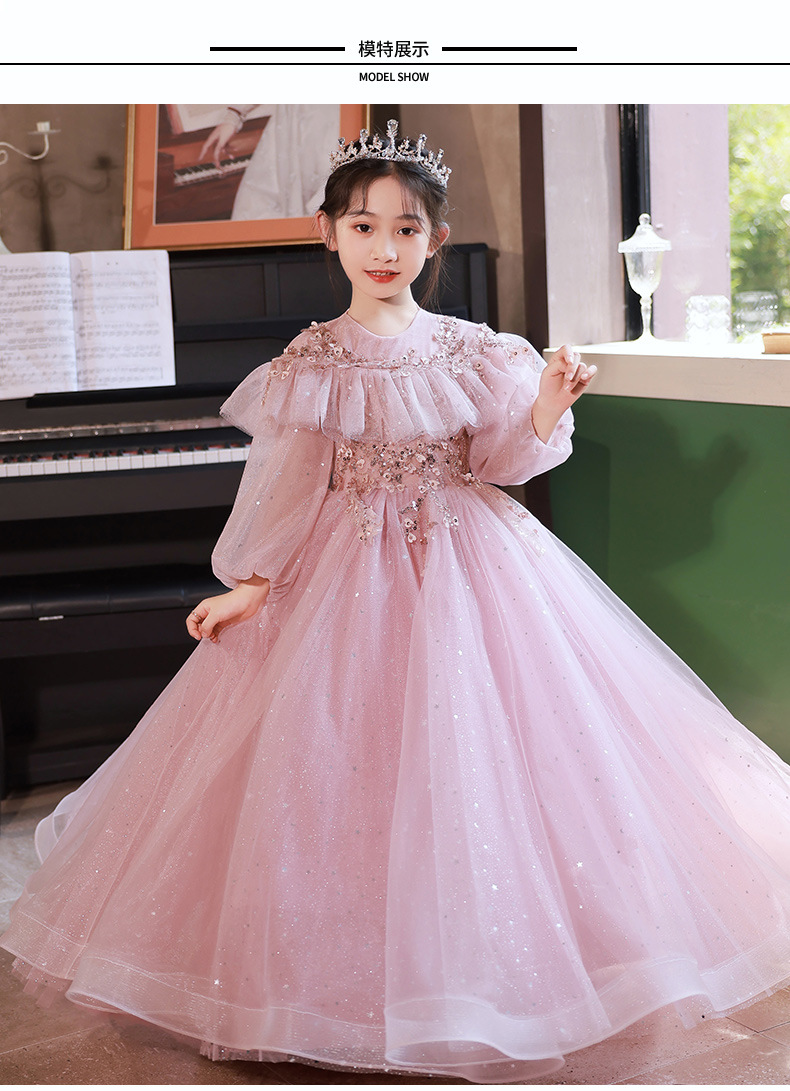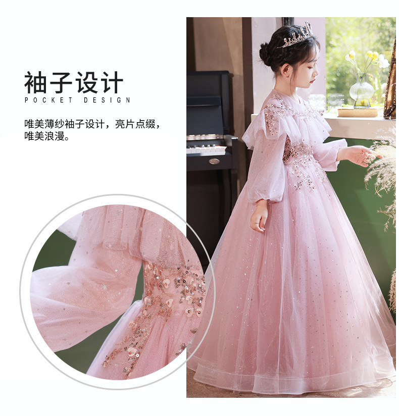 女童礼服公主裙粉色2025新款春夏女孩生日宴花童婚礼主持人演出服