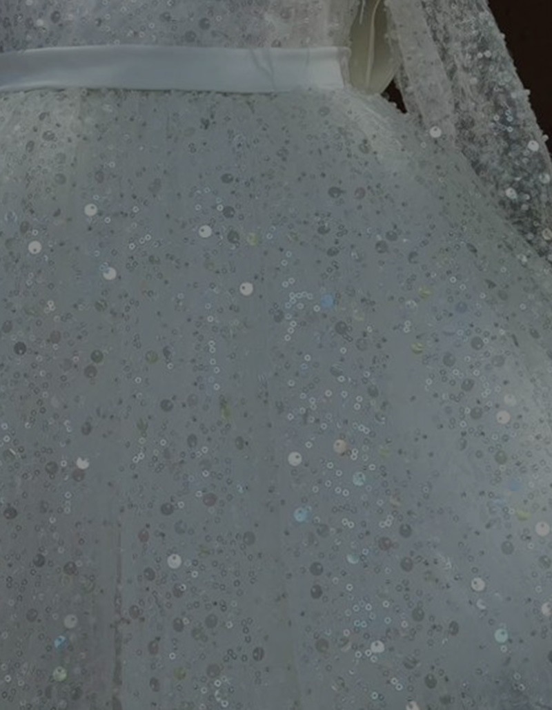 儿童公主裙亚马逊欧美亮片羽毛长袖花童礼服派对生日圣诞节日服装