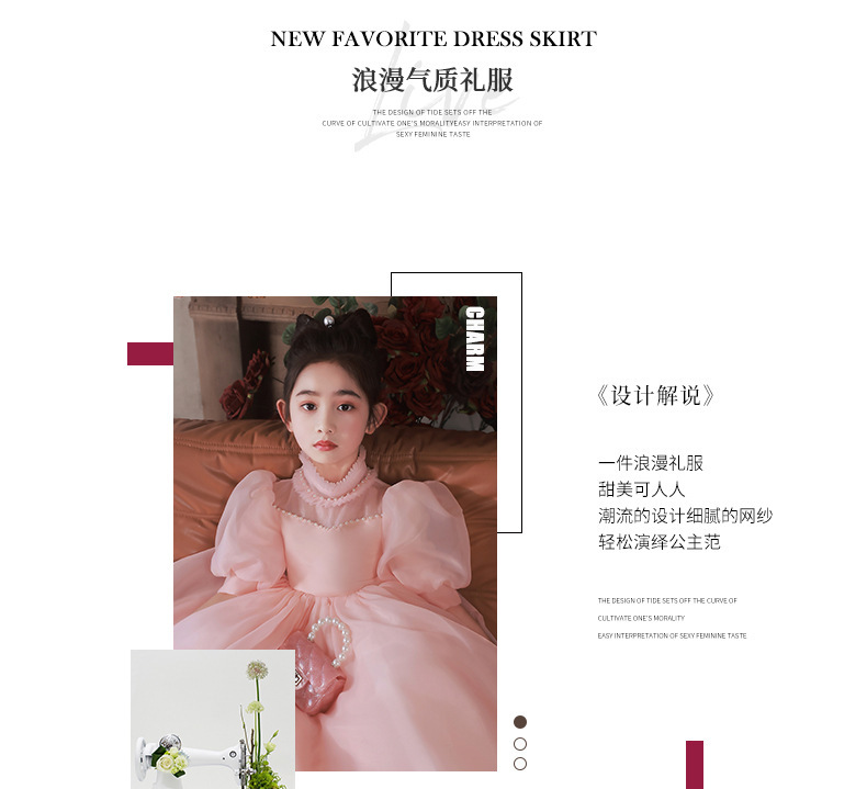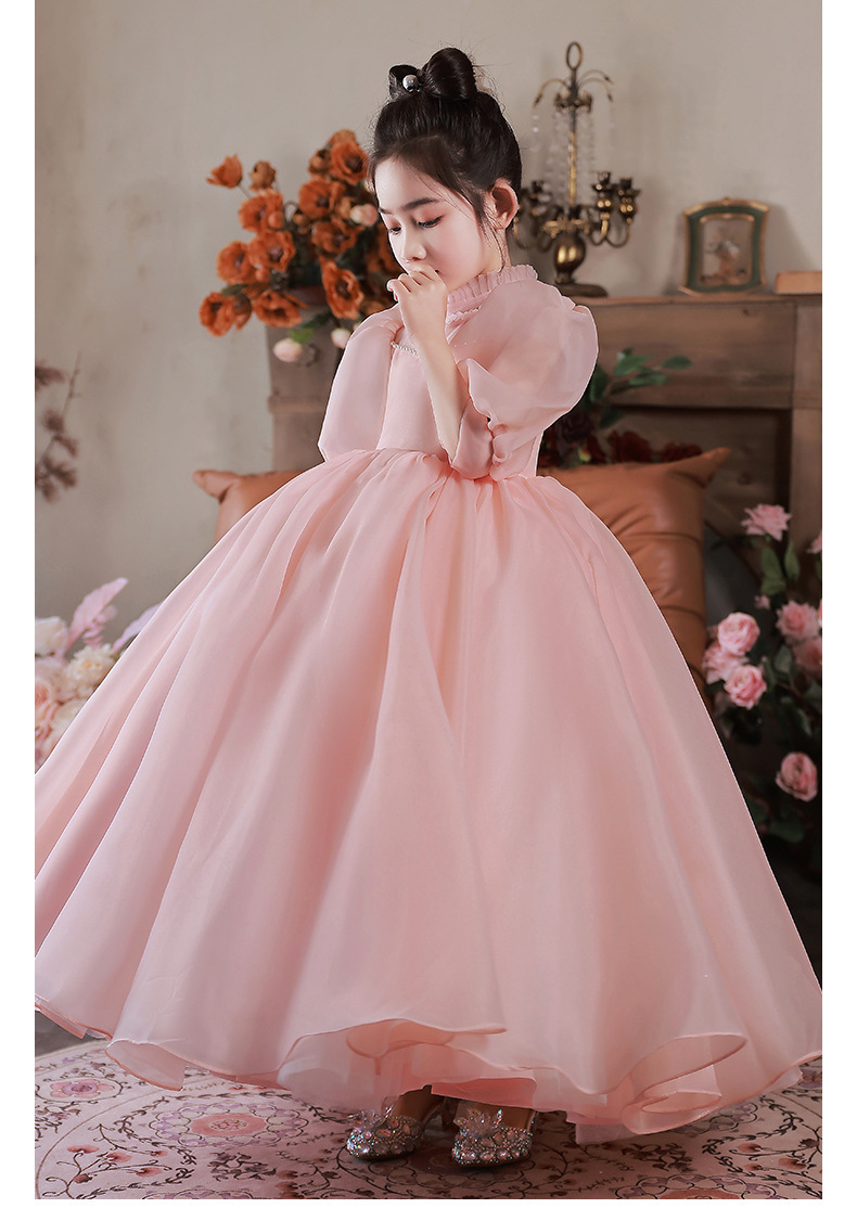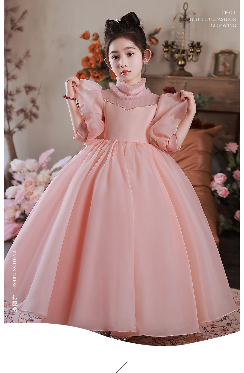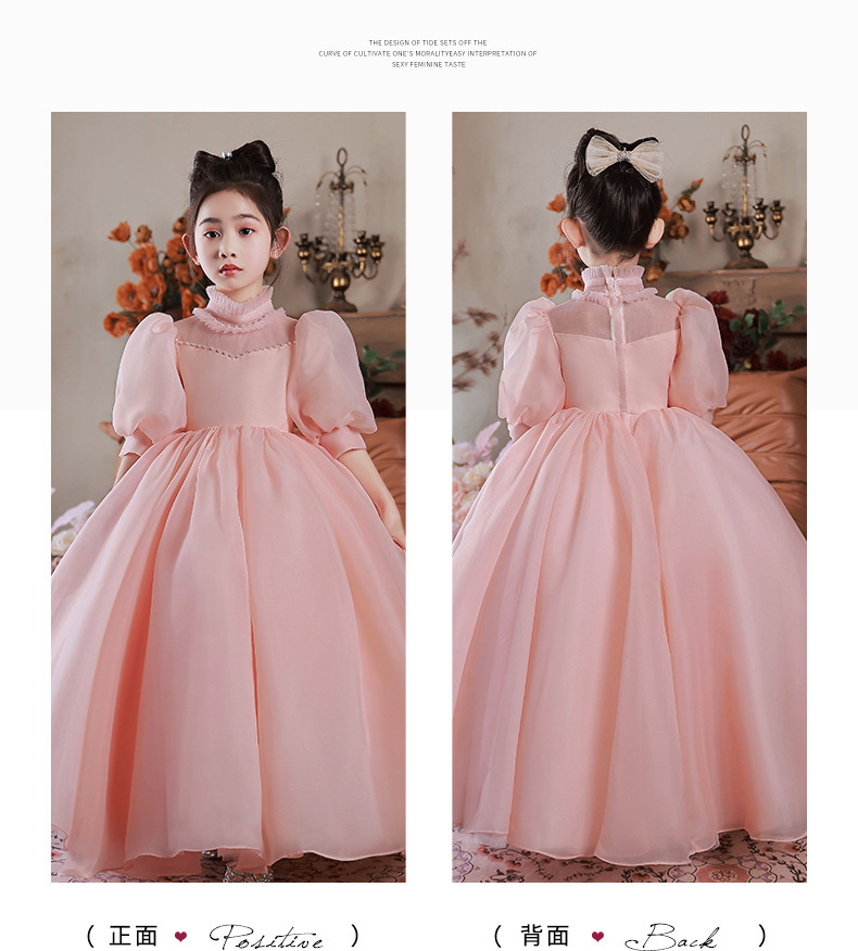 高端女童晚礼服公主裙粉色花童婚礼小女孩钢琴演奏主持人秋季礼服