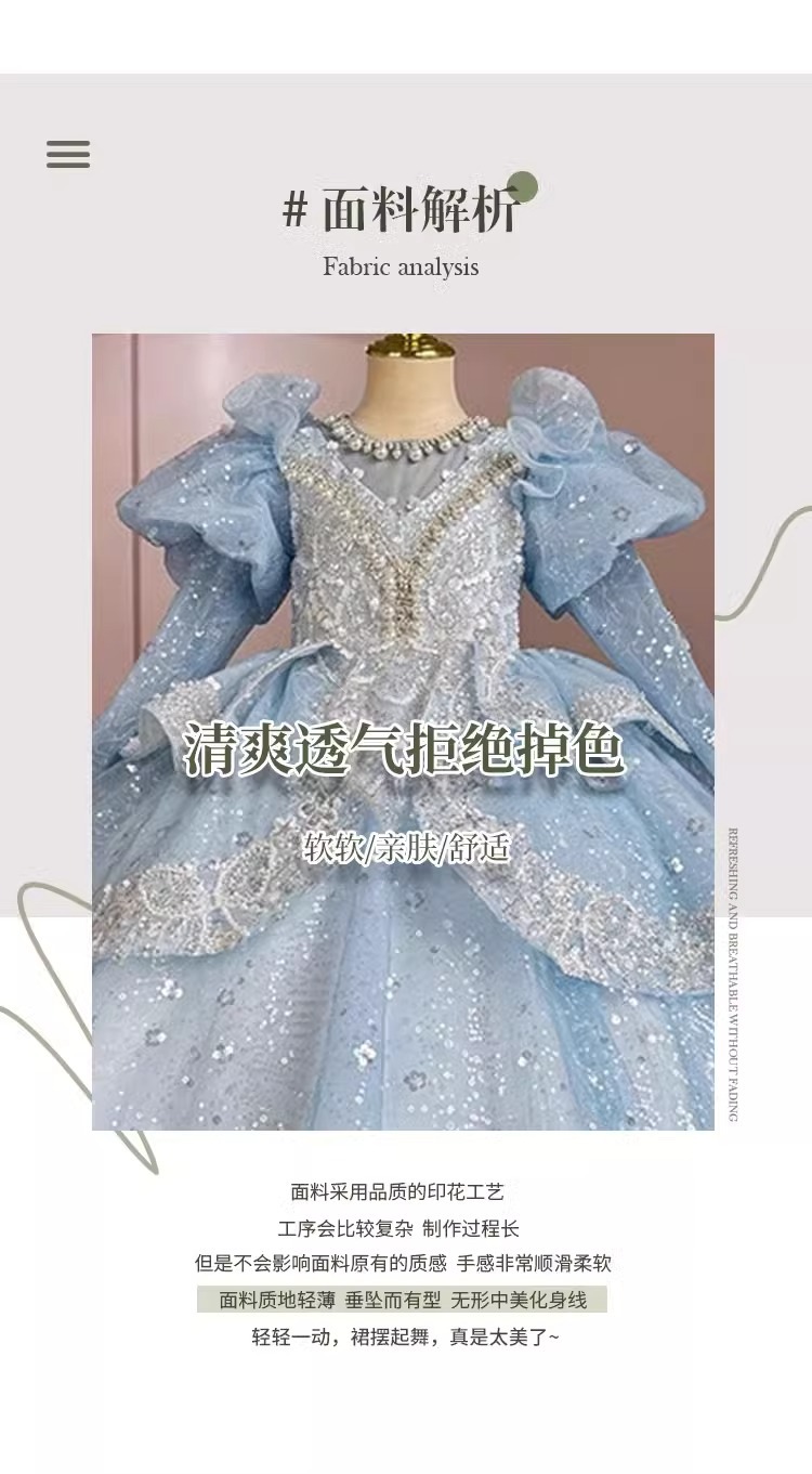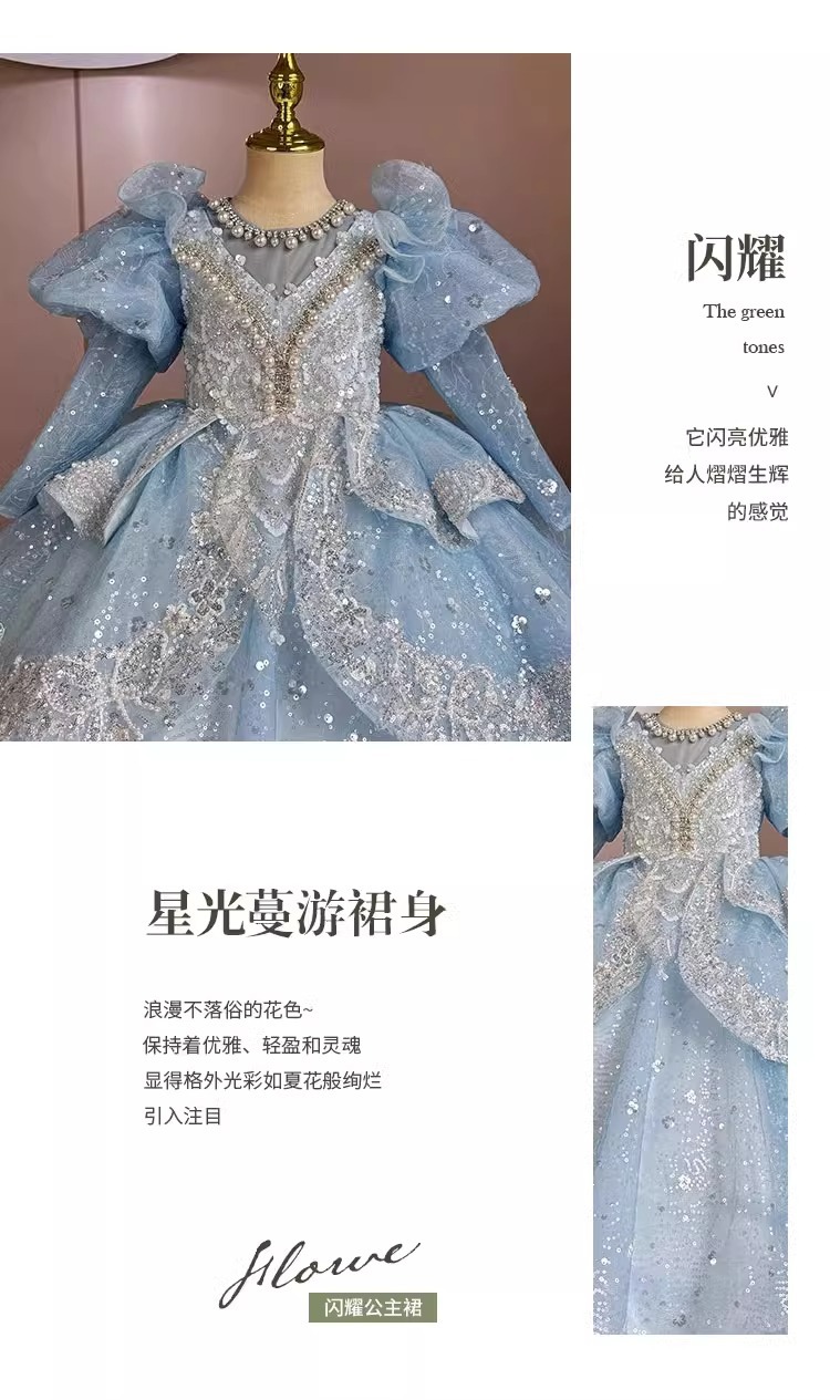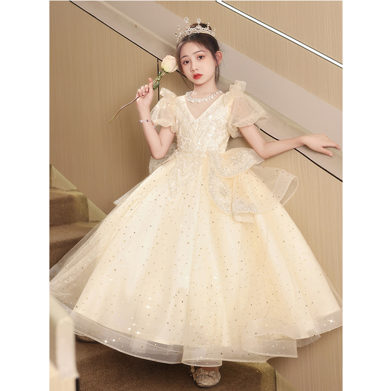 女童礼服轻奢小众高端生日公主裙花童婚礼主持儿童高定钢琴演出服