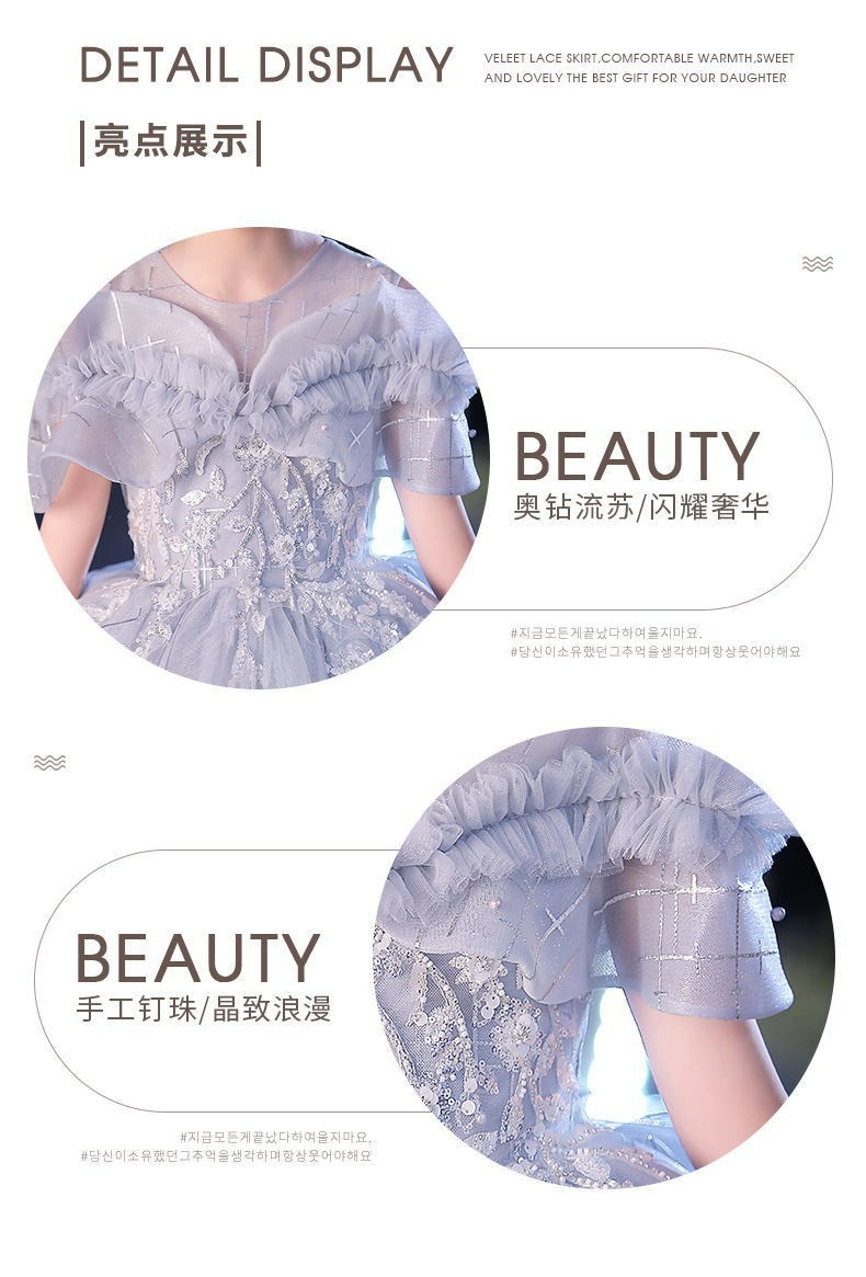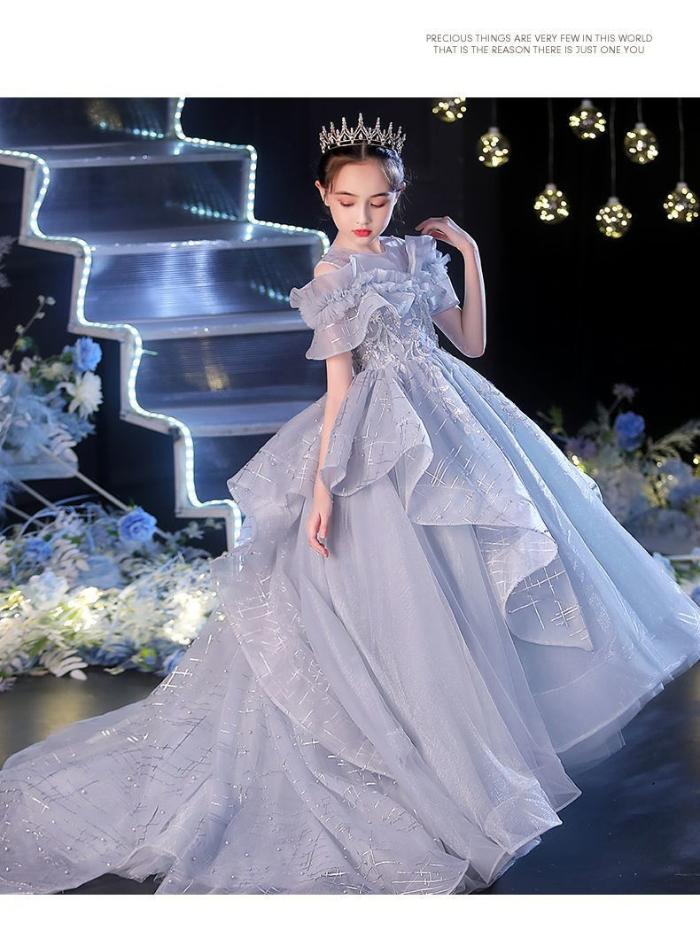 儿童高端礼服拖尾走秀蓬蓬纱女童蓝色小主持人花童钢琴演出服洋气