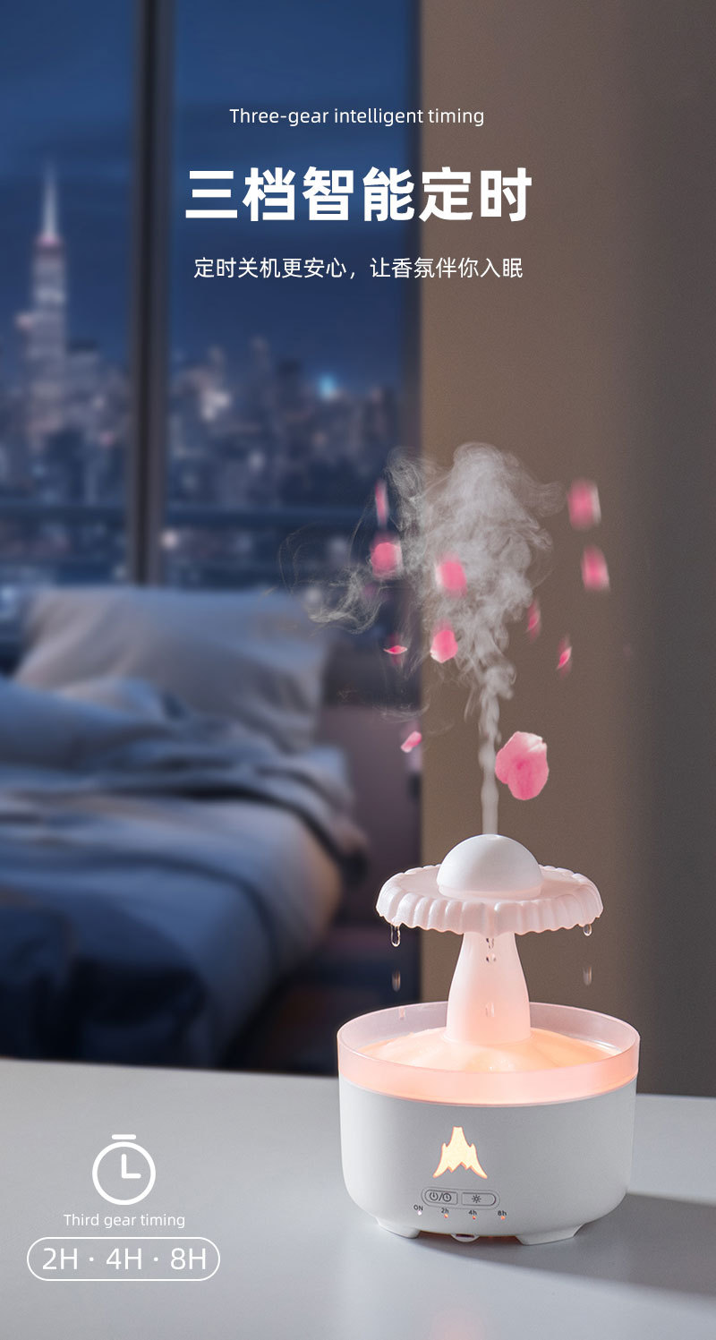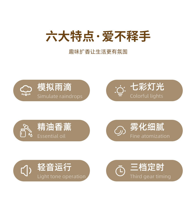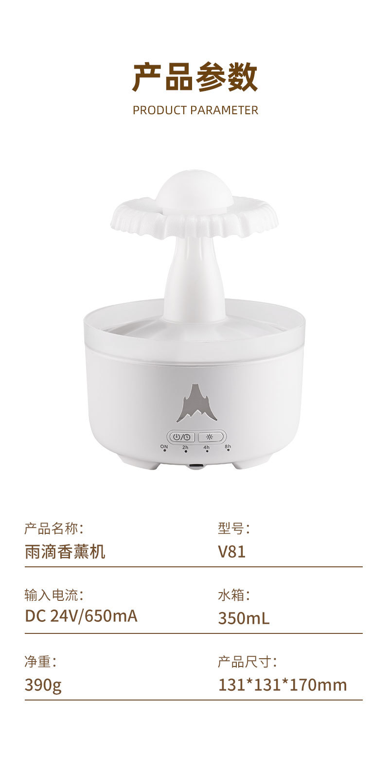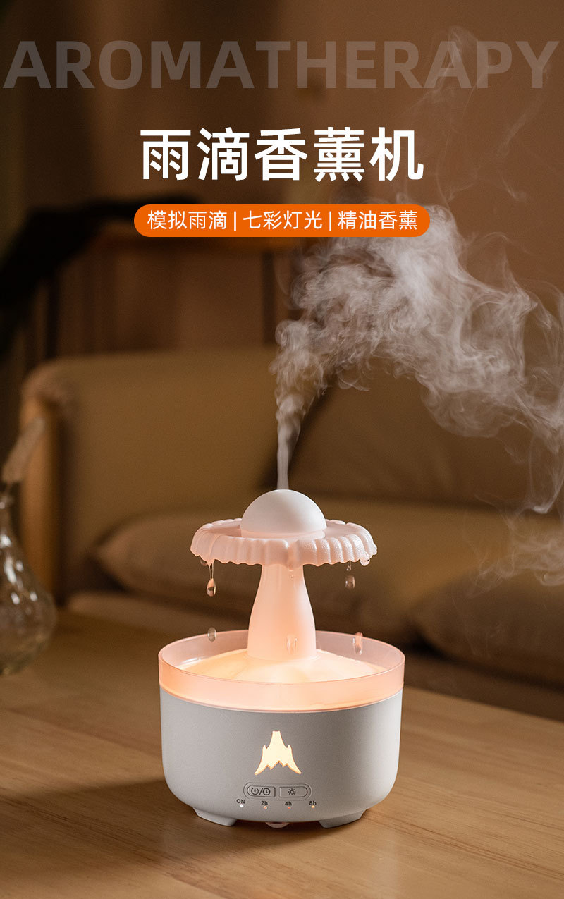跨境新款雨滴七彩夜灯香薰机家用超声波加湿器自动喷雾扩香机卧室