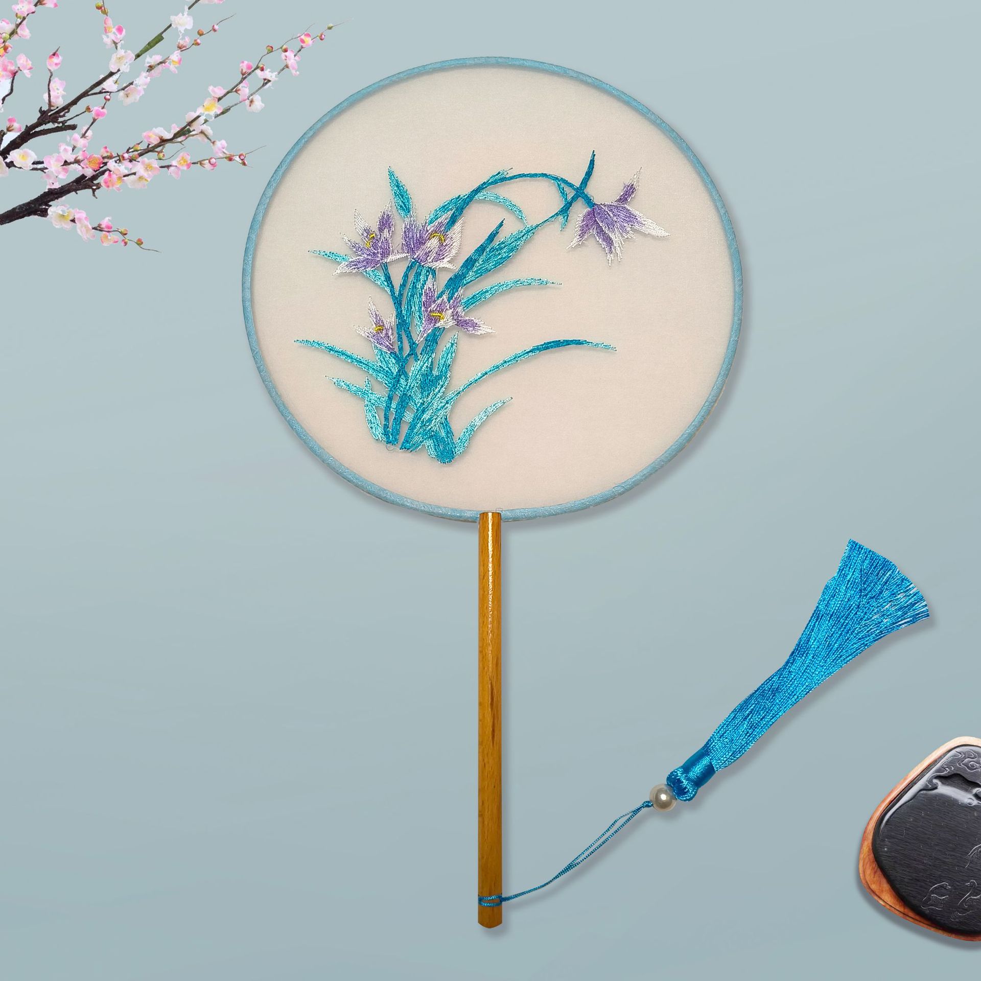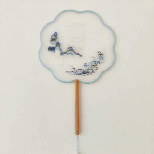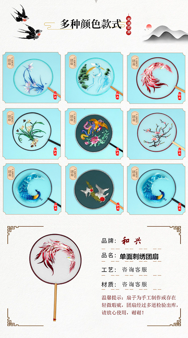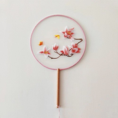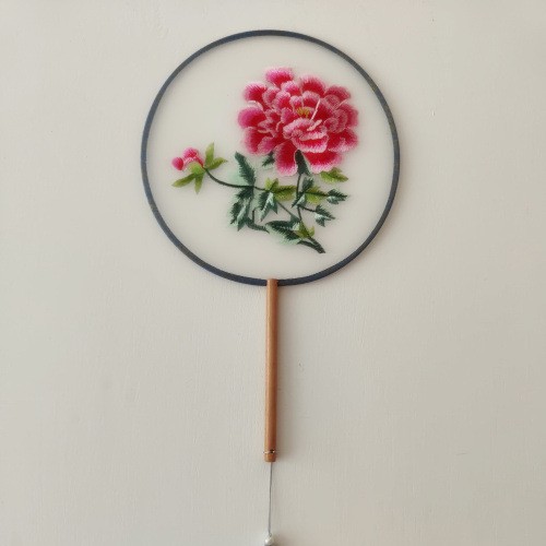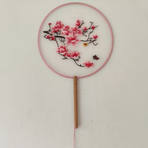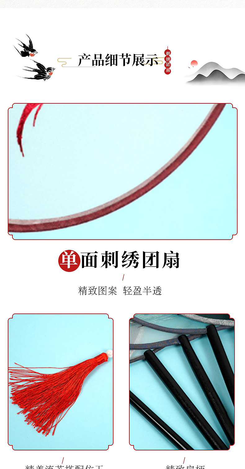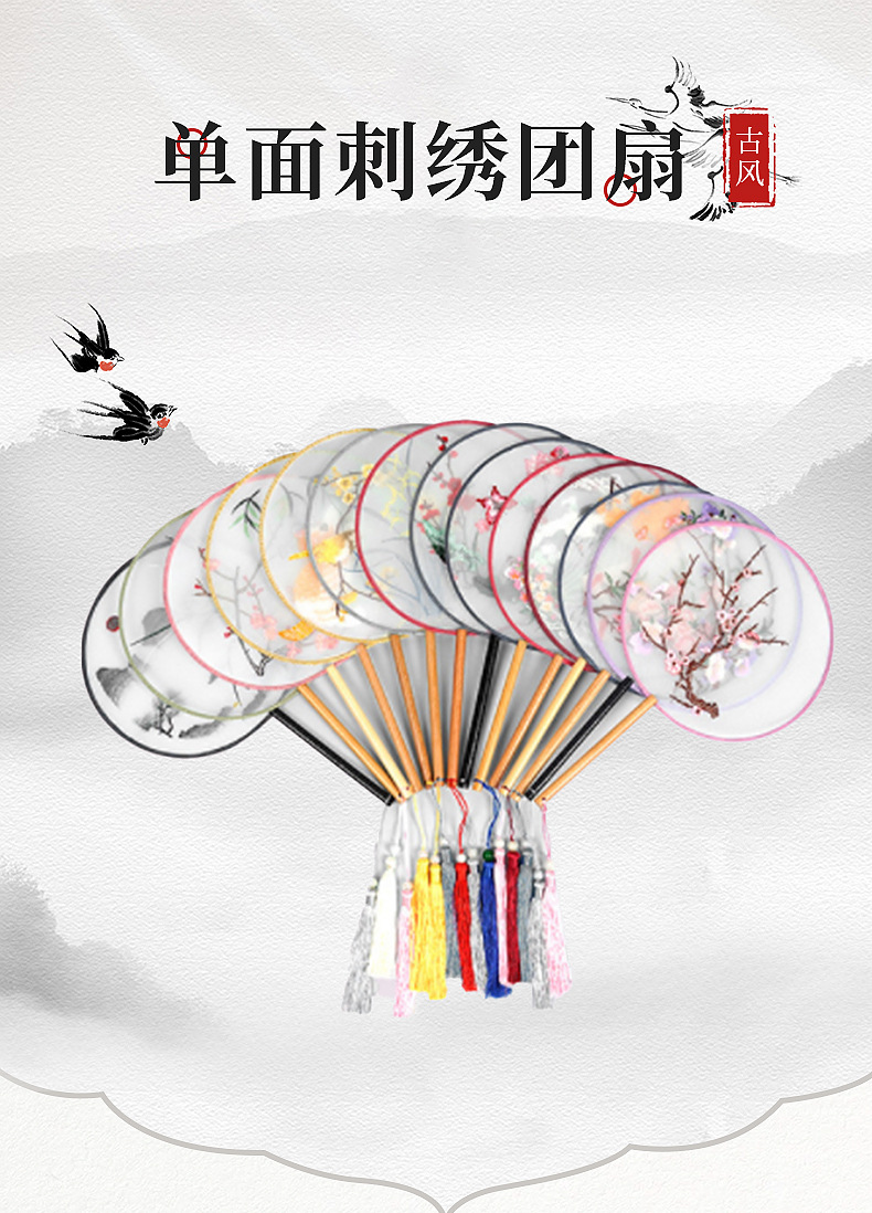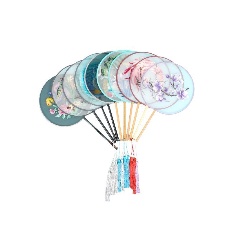 单面刺绣古风团扇 中国风苏绣长柄舞蹈扇子 新娘古装汉服旗袍圆扇
