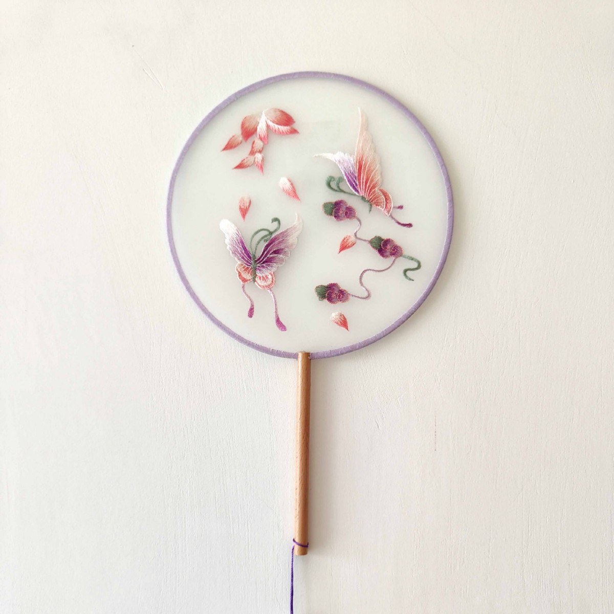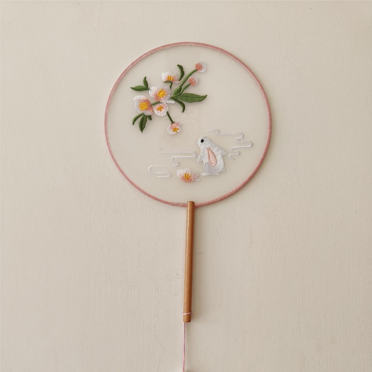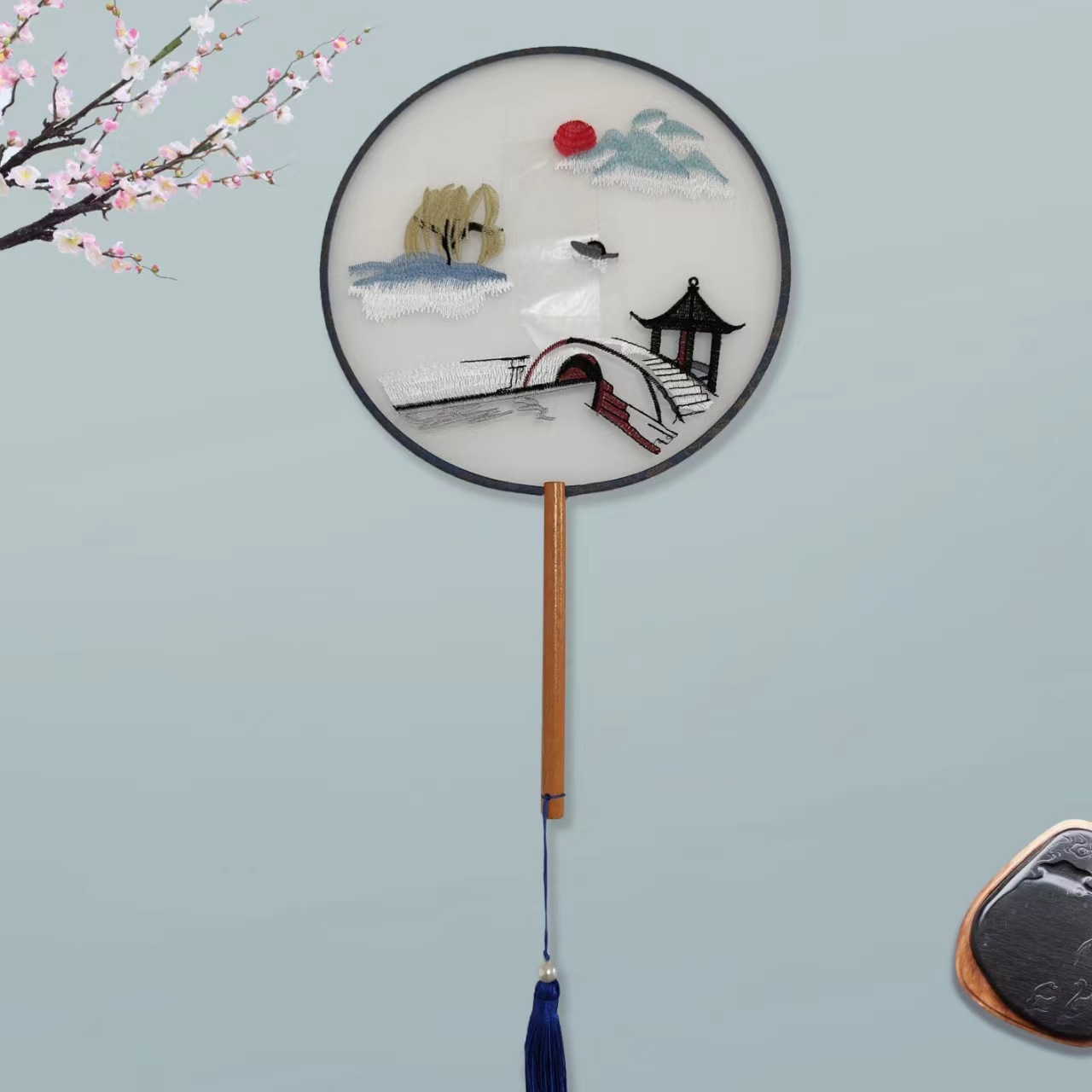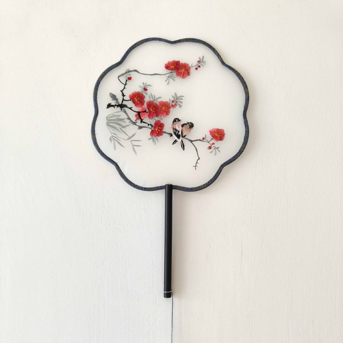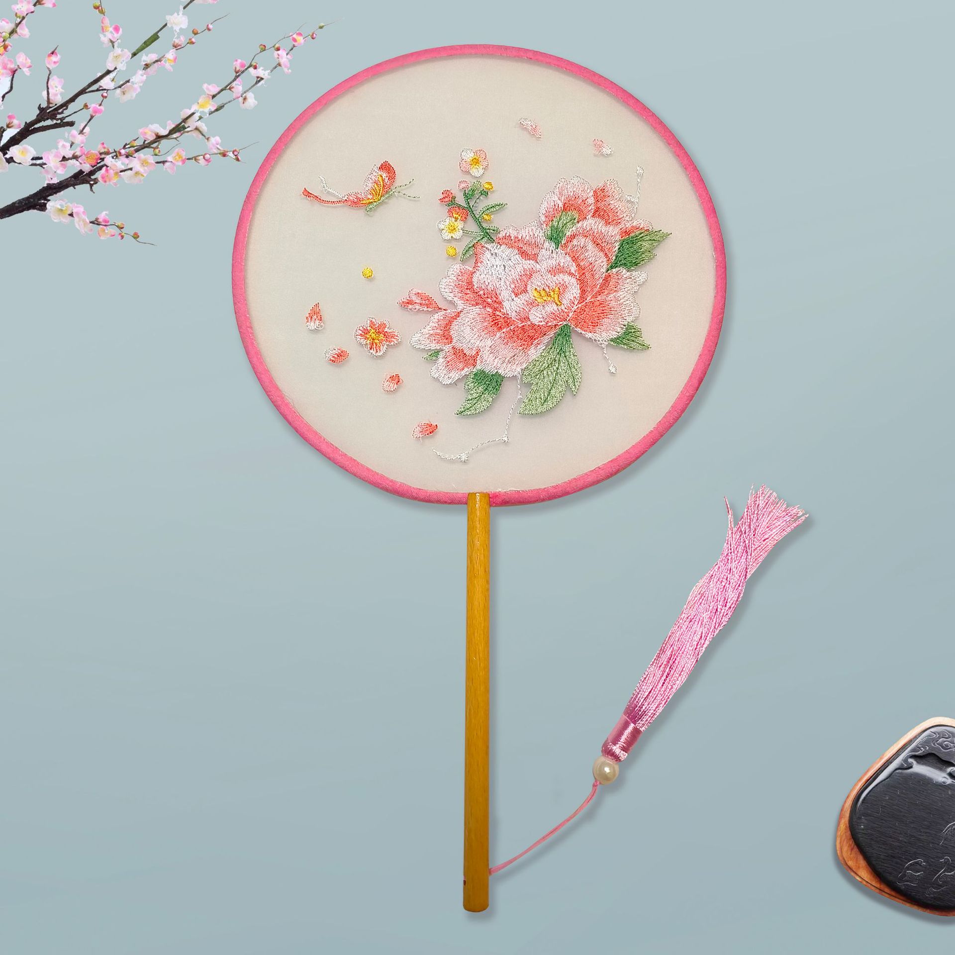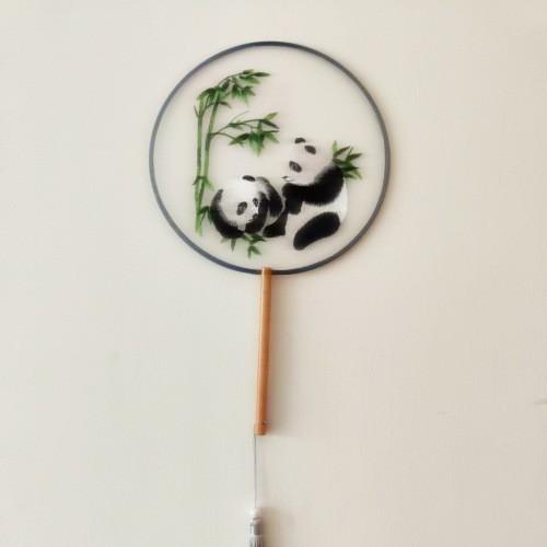 单面刺绣古风团扇 中国风苏绣长柄舞蹈扇子 新娘古装汉服旗袍圆扇