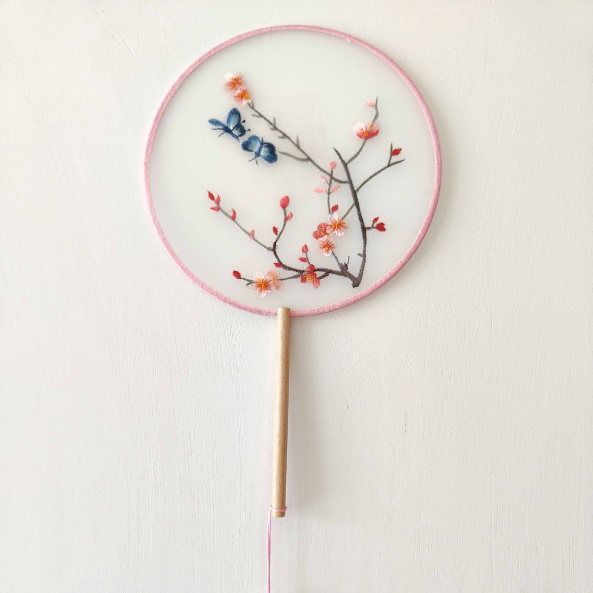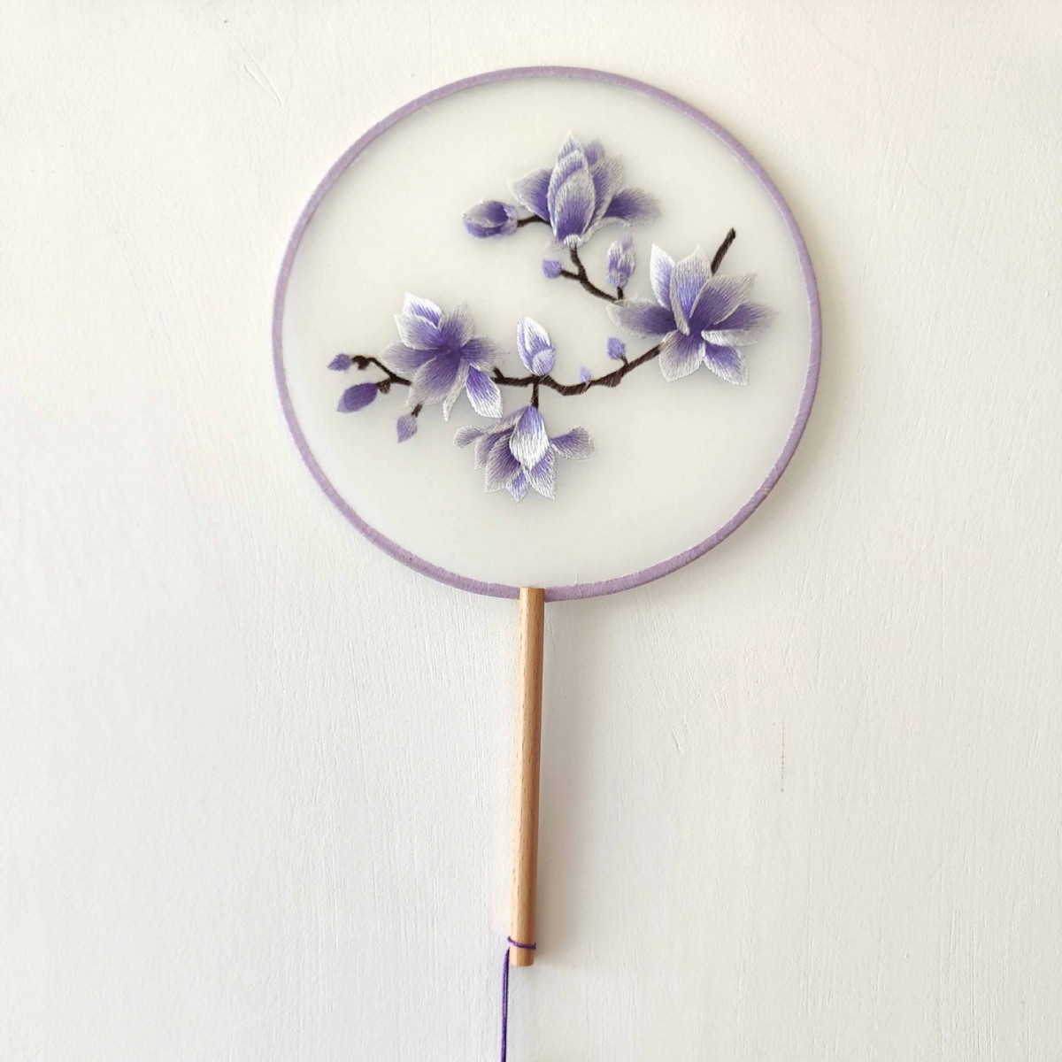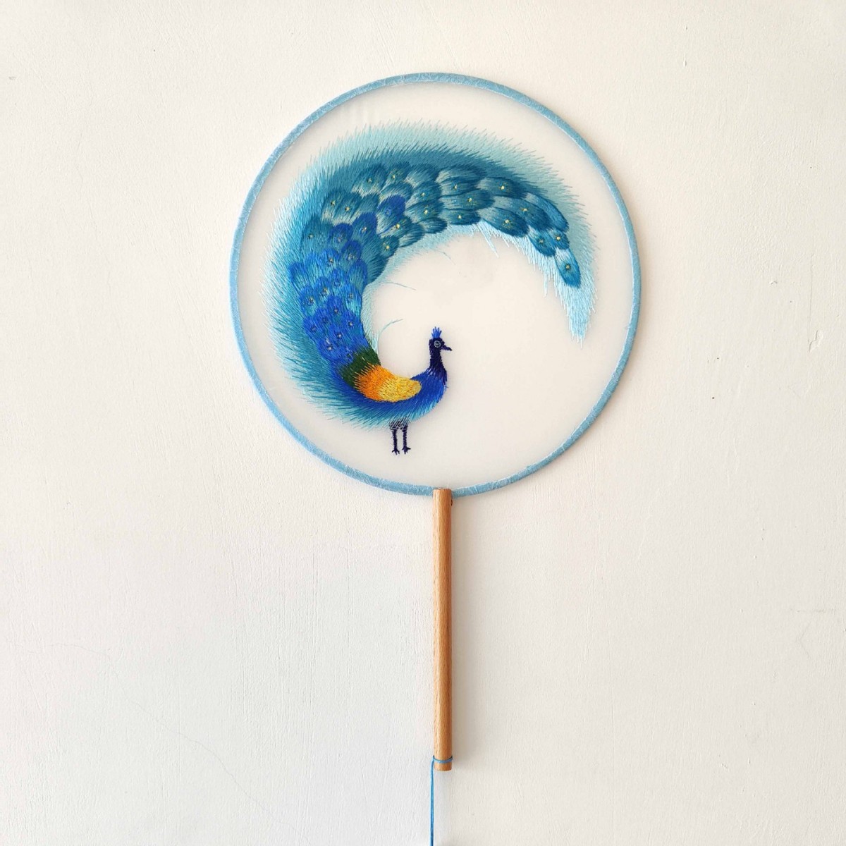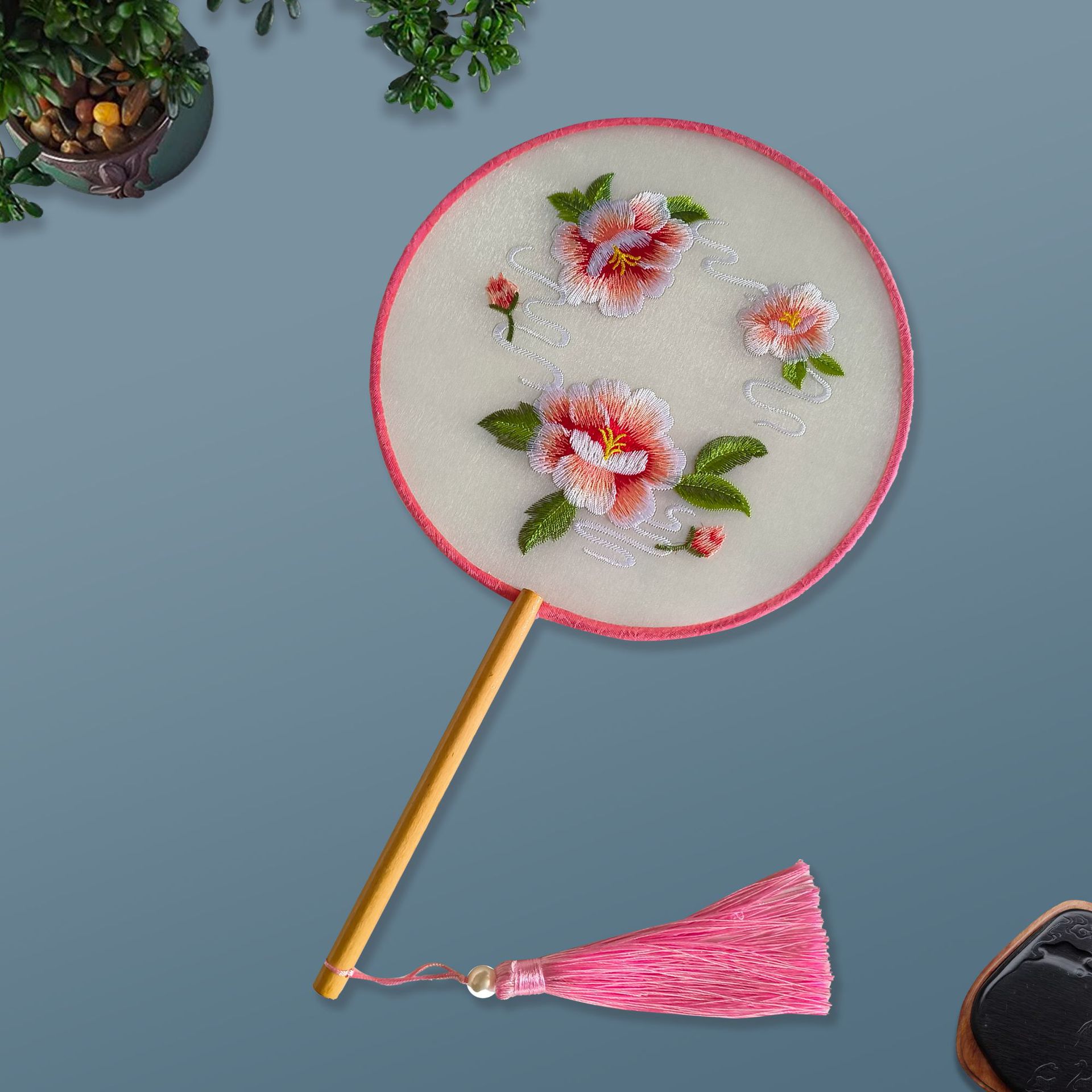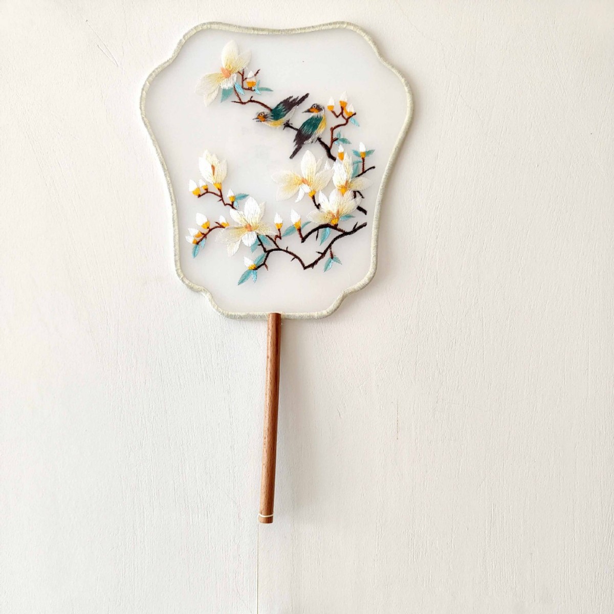 单面刺绣古风团扇 中国风苏绣长柄舞蹈扇子 新娘古装汉服旗袍圆扇