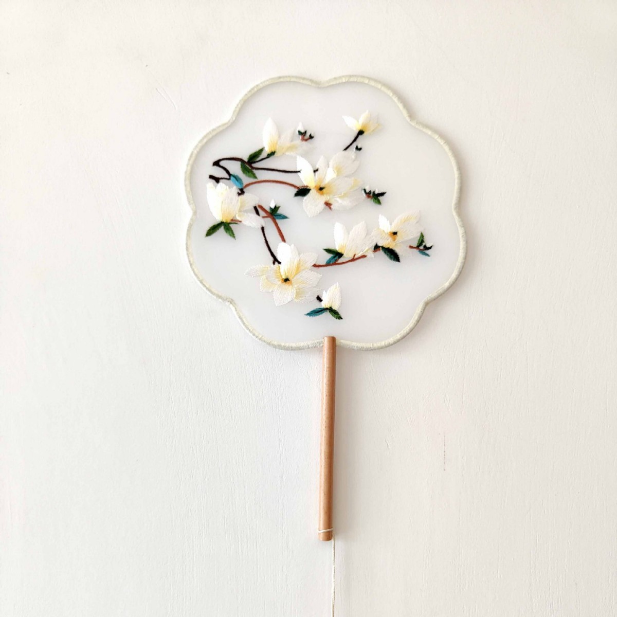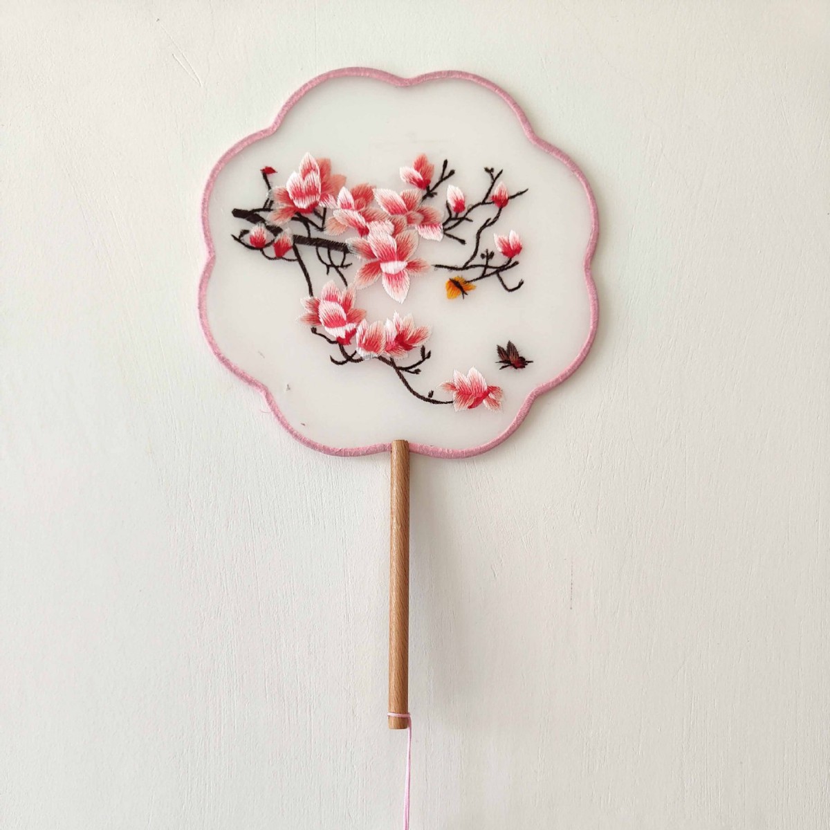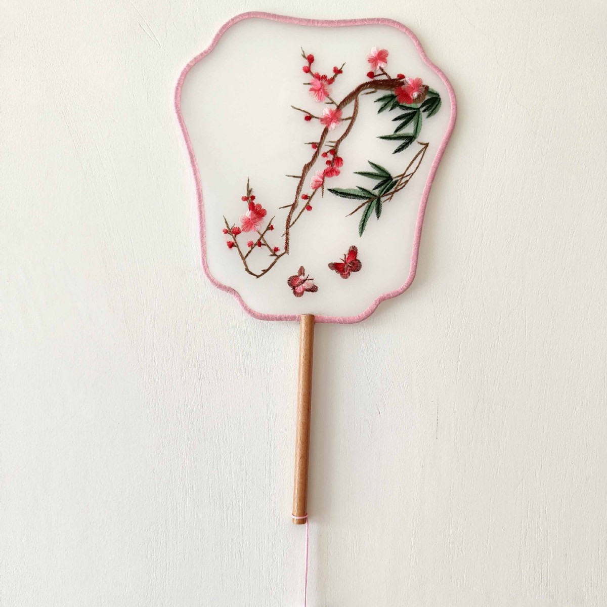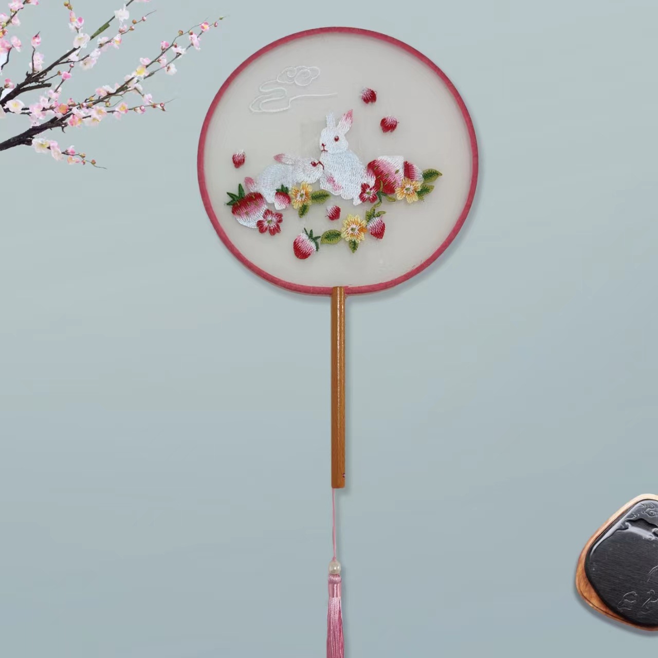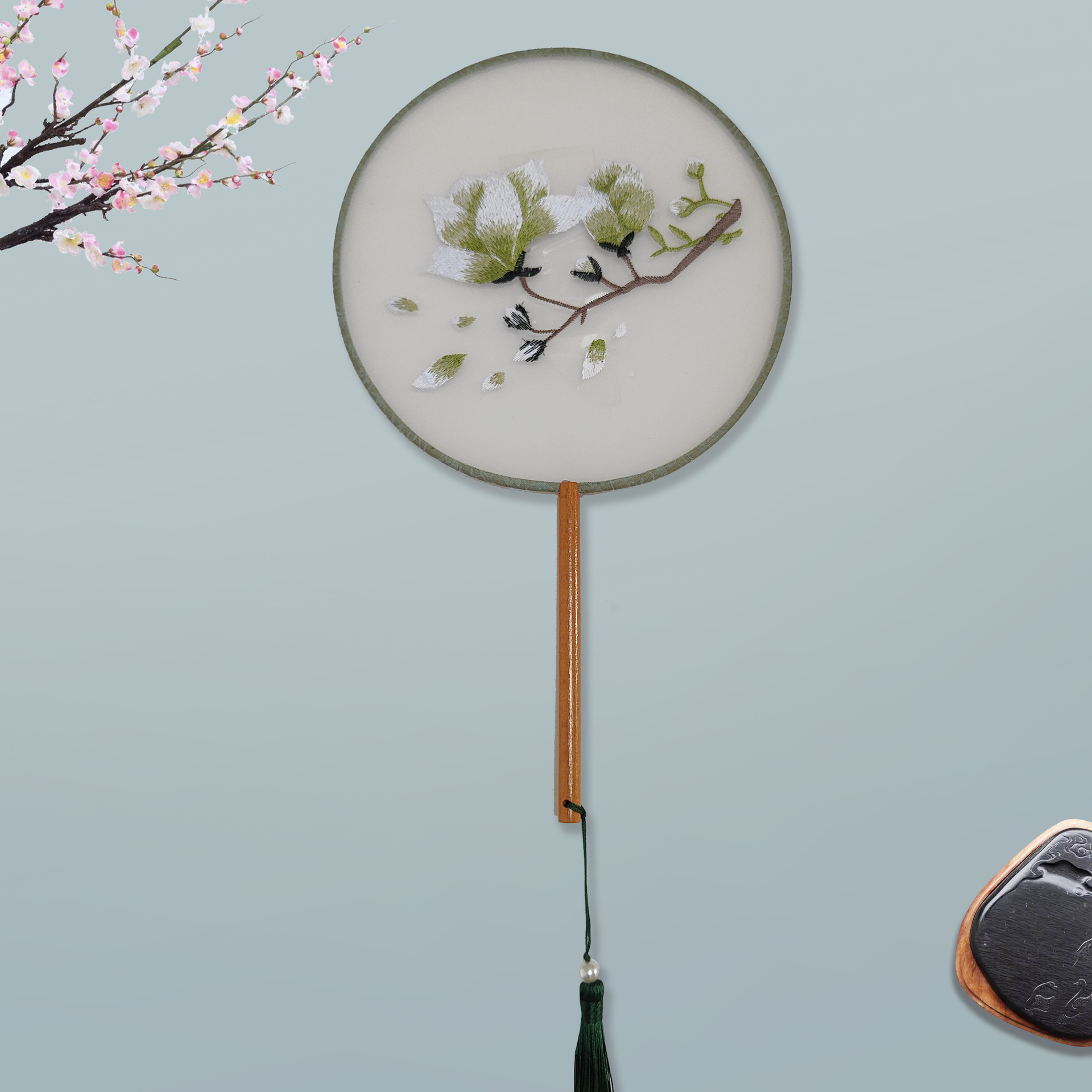 单面刺绣古风团扇 中国风苏绣长柄舞蹈扇子 新娘古装汉服旗袍圆扇
