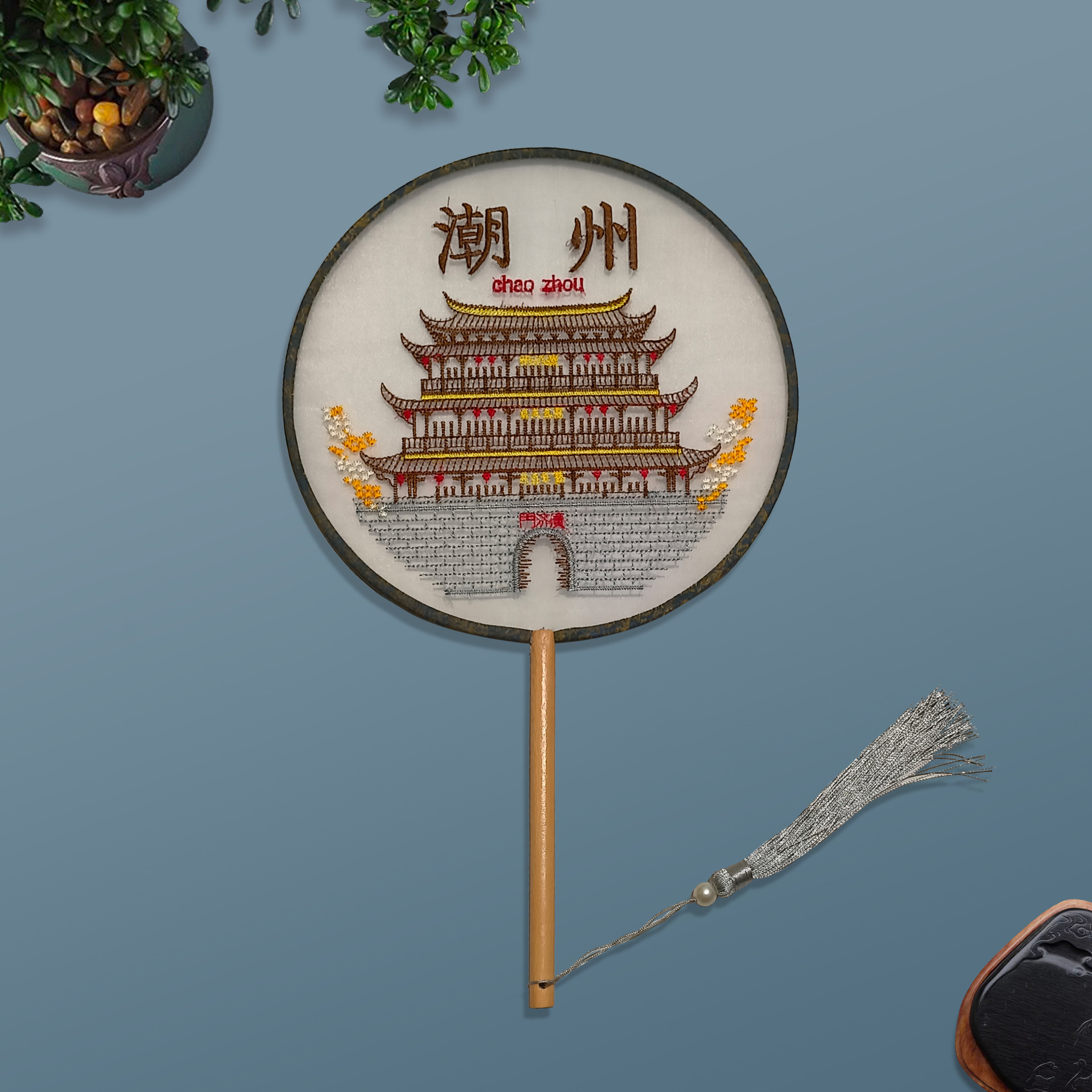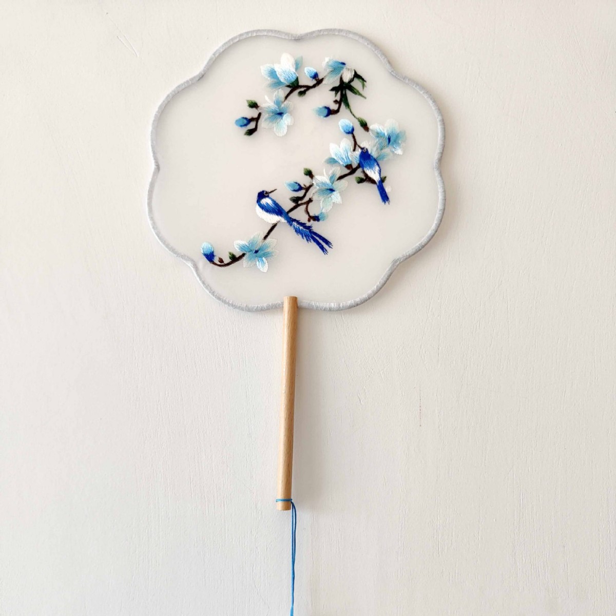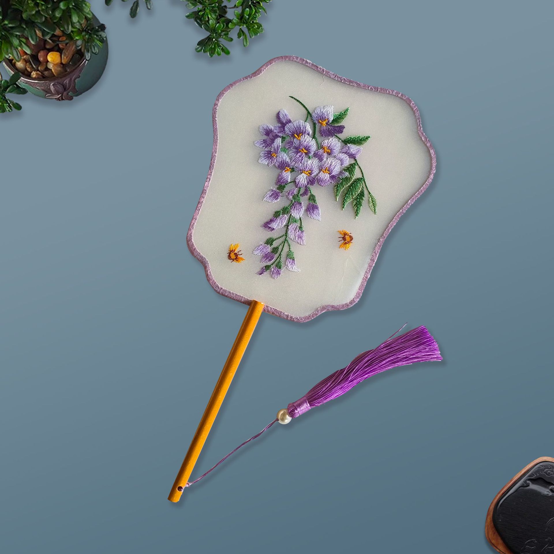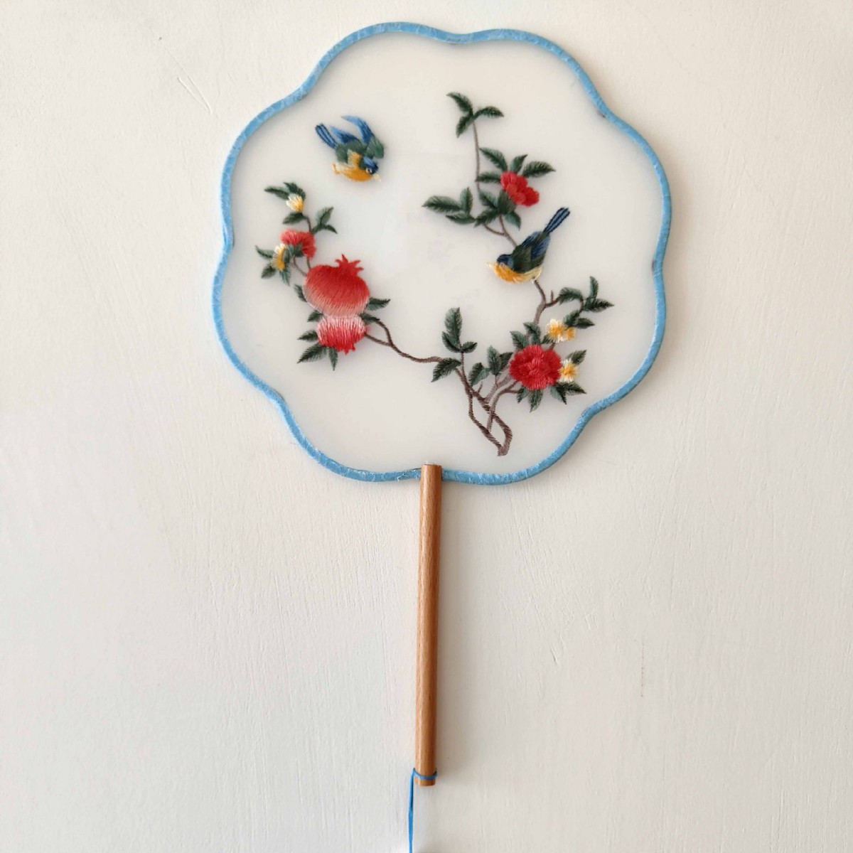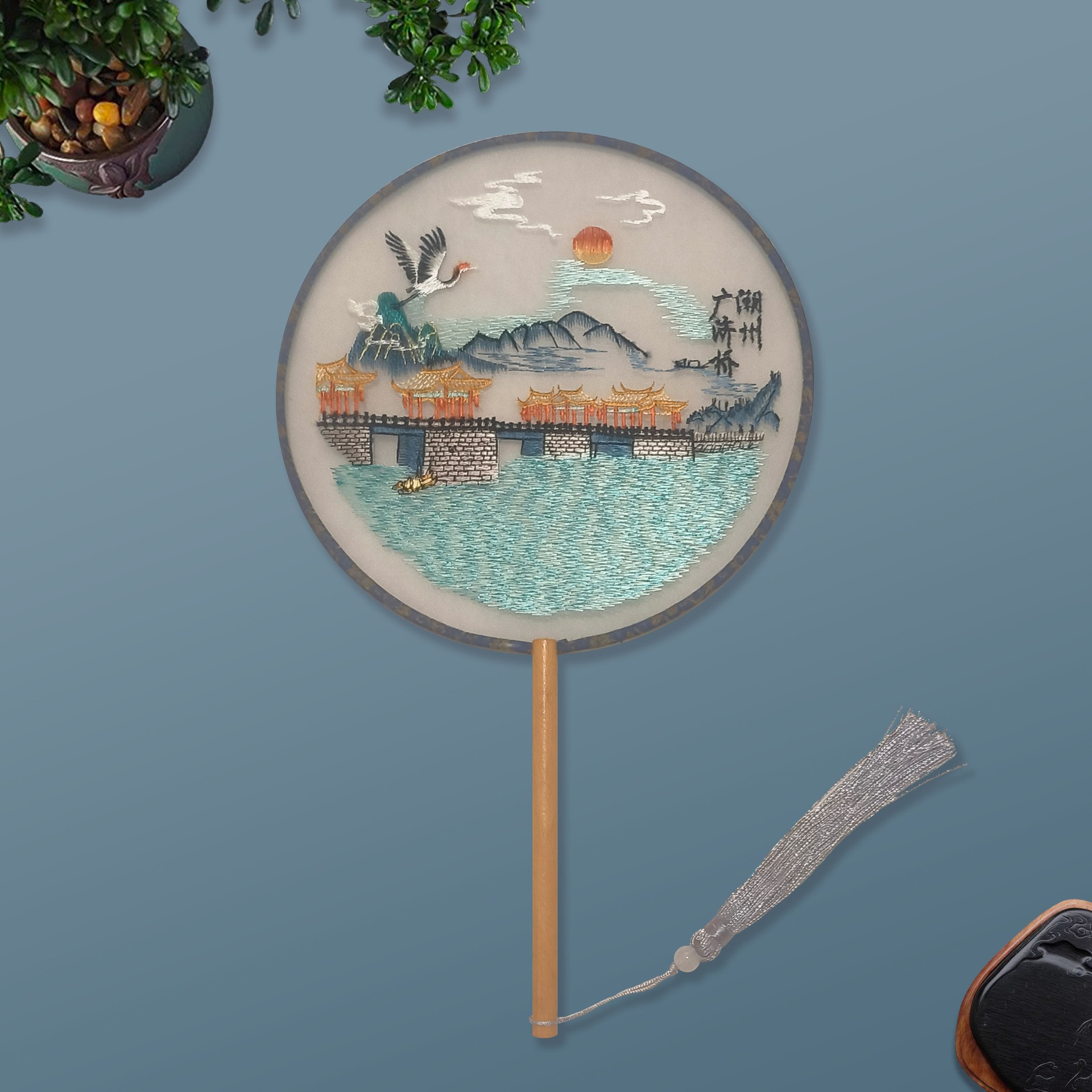 单面刺绣古风团扇 中国风苏绣长柄舞蹈扇子 新娘古装汉服旗袍圆扇