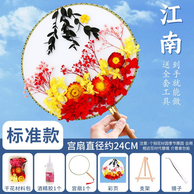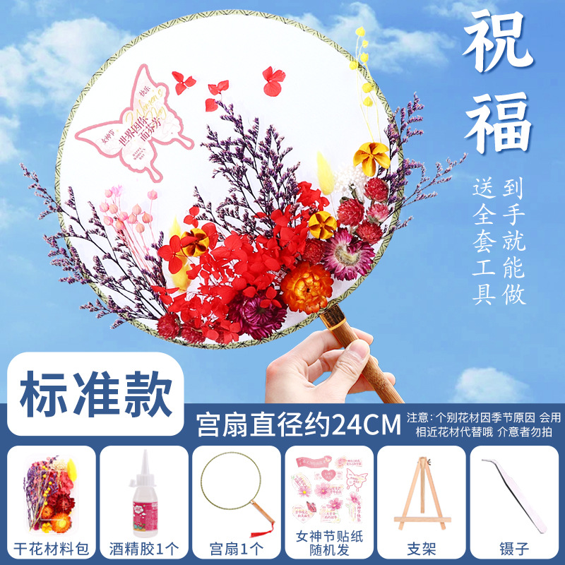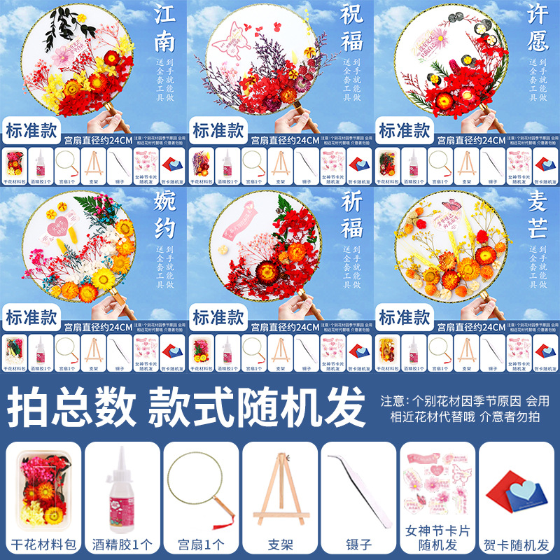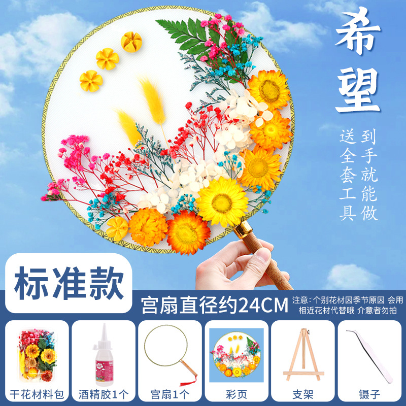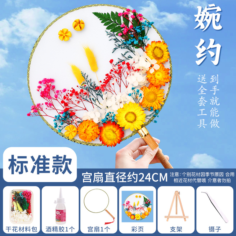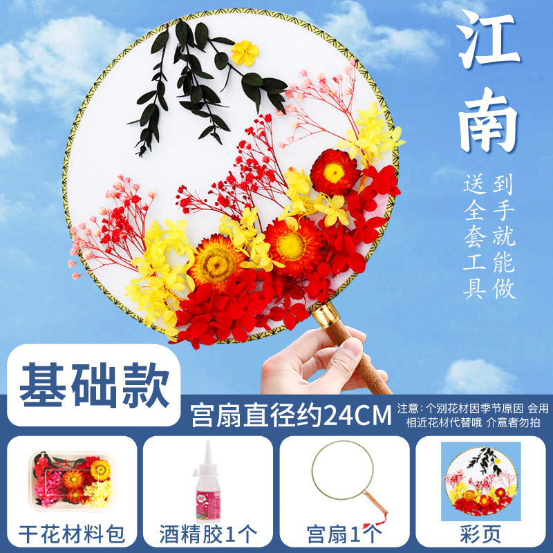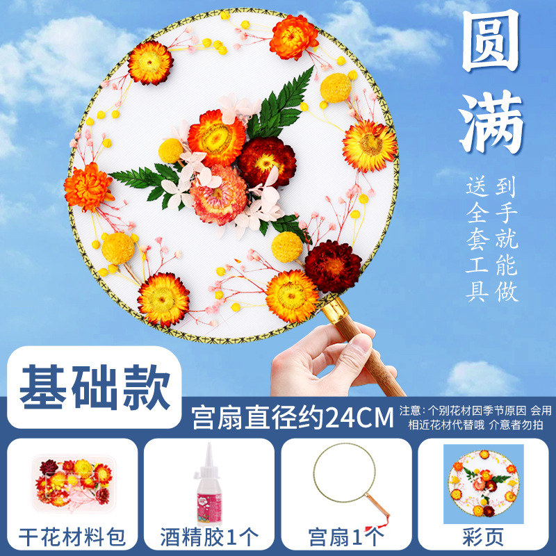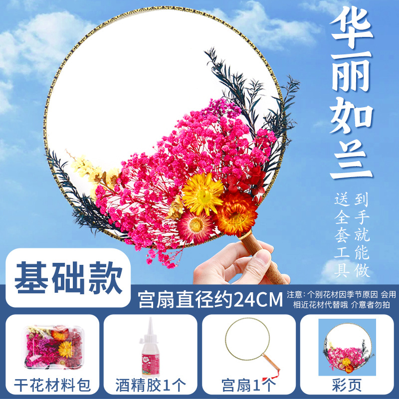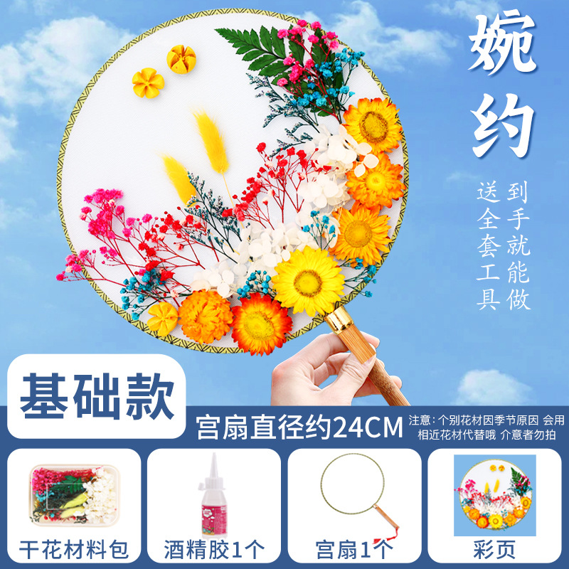 永生花团扇diy干花材料包儿童手工制作团建扇子母亲节送妈妈礼物