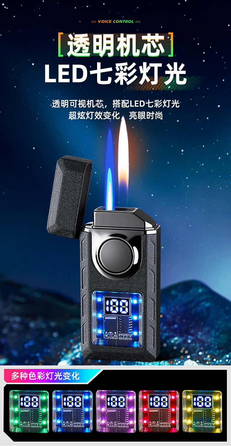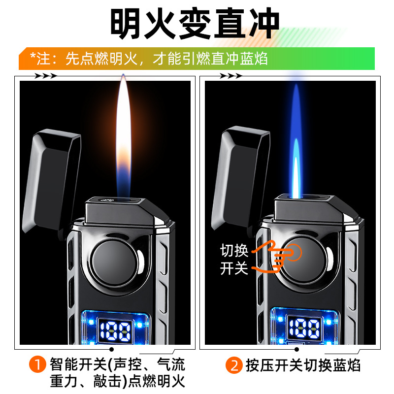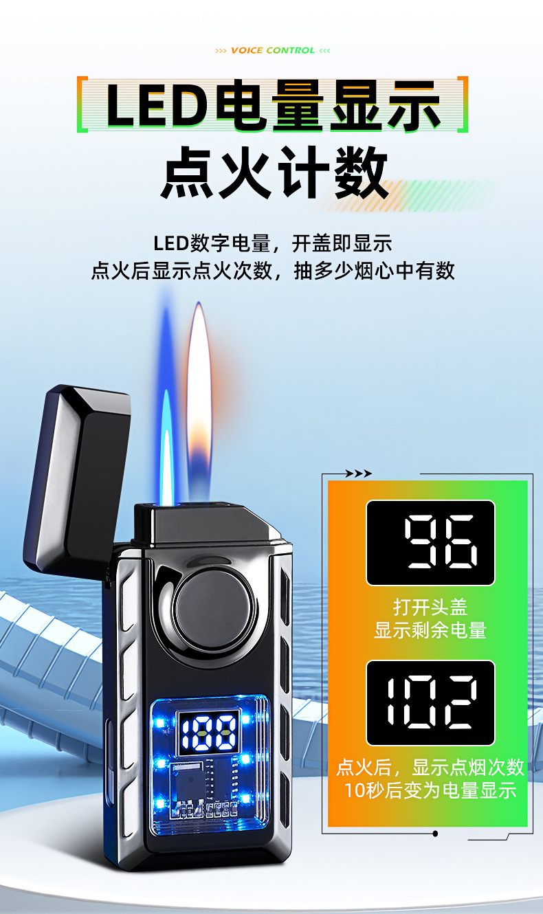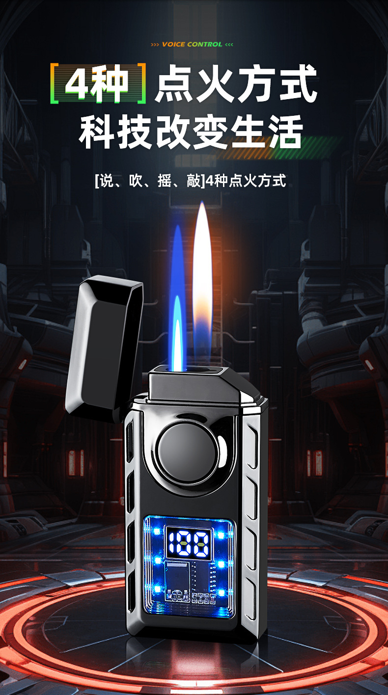 663高颜值气电双火声控打火机电量显示直冲明火声控吹气点火跨境