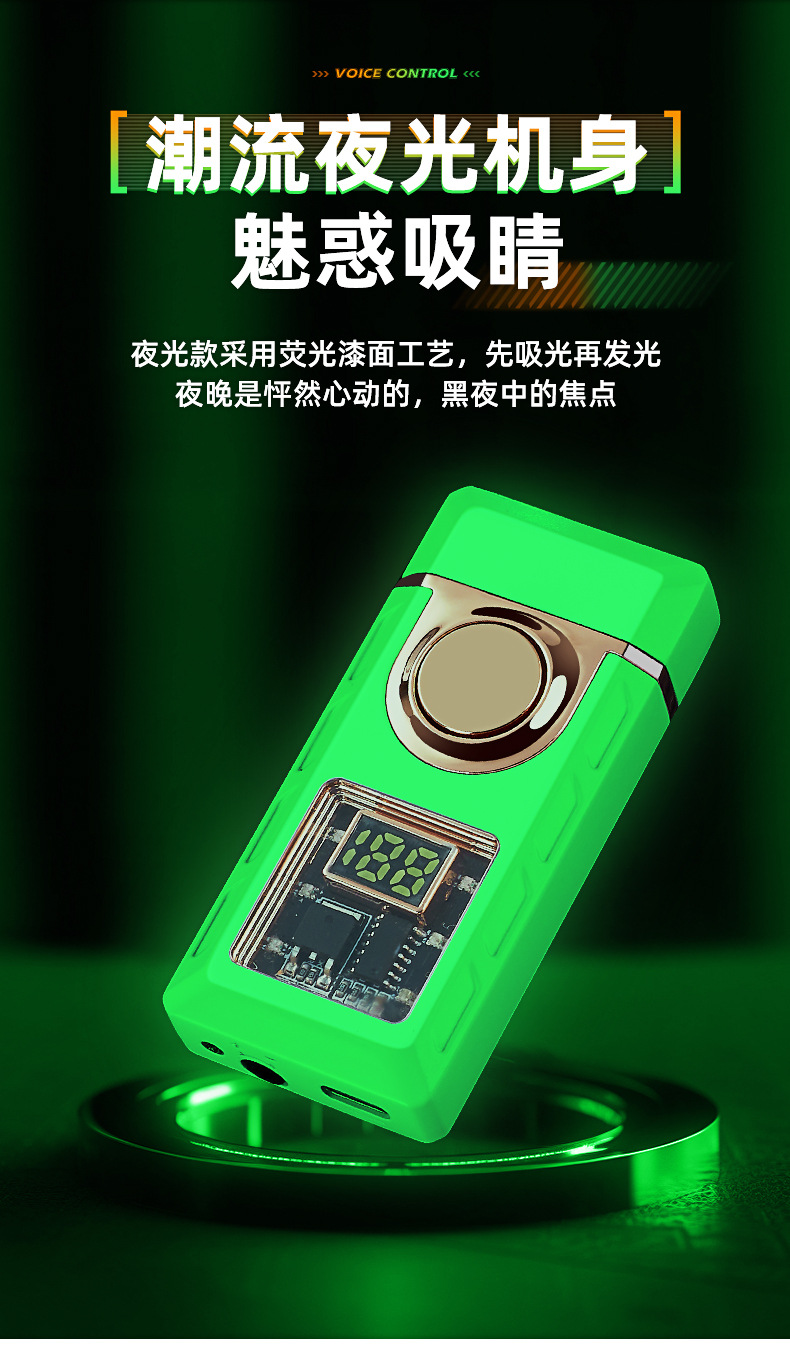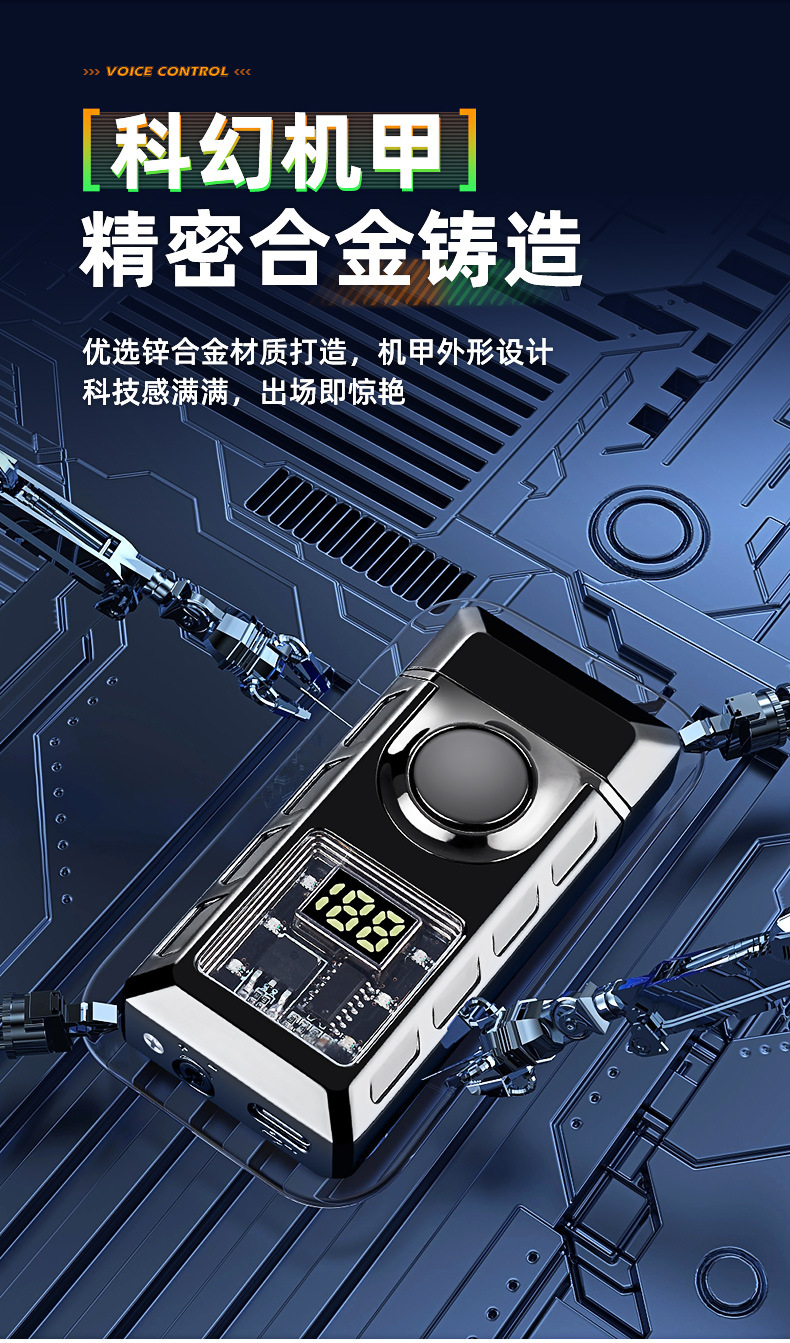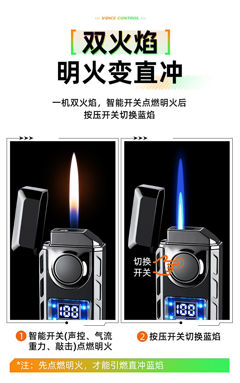 663高颜值气电双火声控打火机电量显示直冲明火声控吹气点火跨境