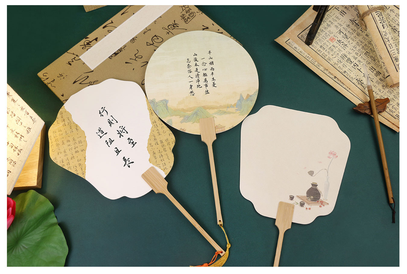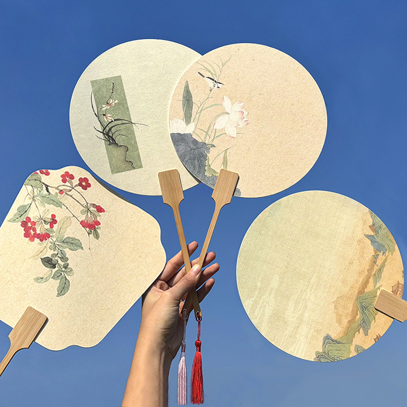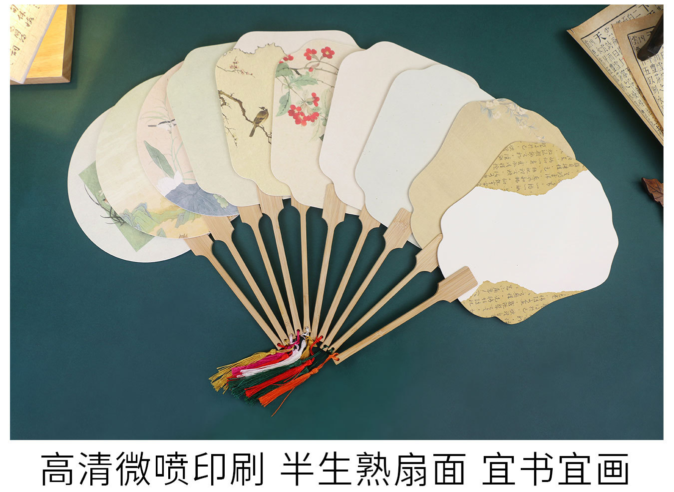 空白文创宣纸团扇加厚扇子半生熟毛笔字diy古风国画手绘书法扇面