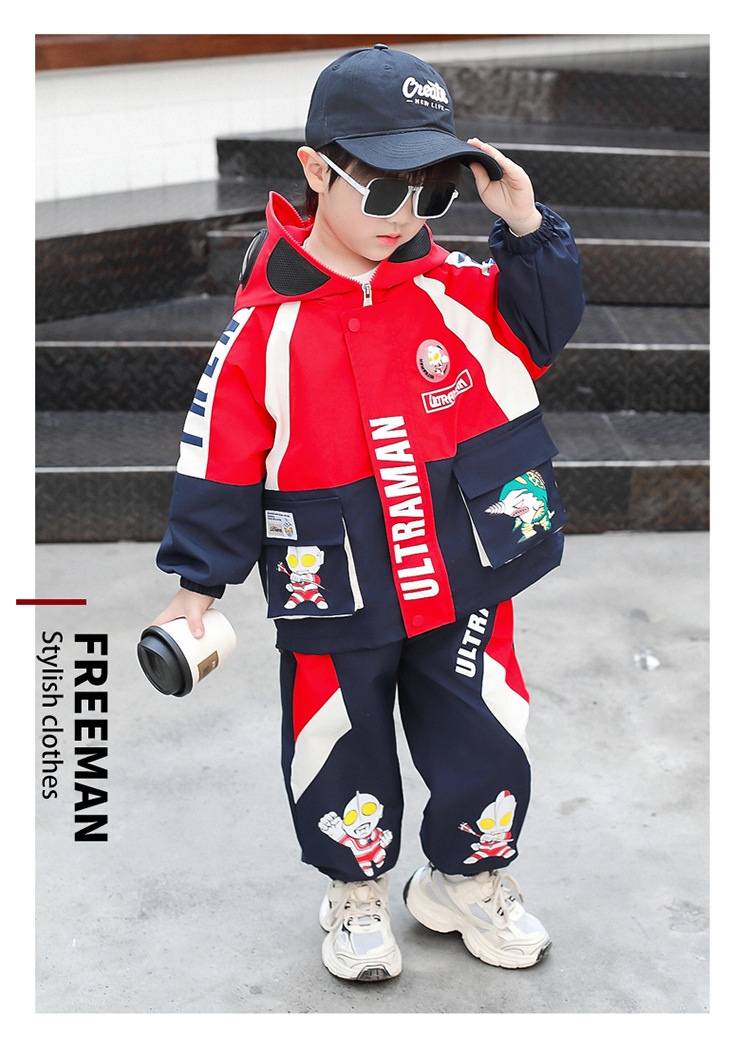 男童奥特曼冲锋衣套装2025新款春秋装儿童洋气潮款运动套宝宝衣服