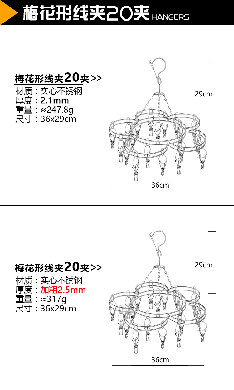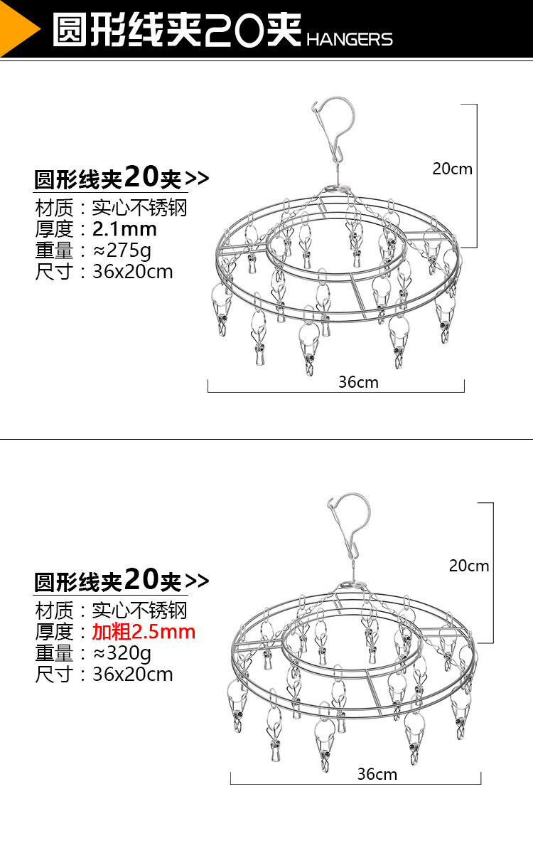 凯旺不锈钢袜架加粗线夹20夹双层实心晒袜架 晾衣架 晒架夹子批发
