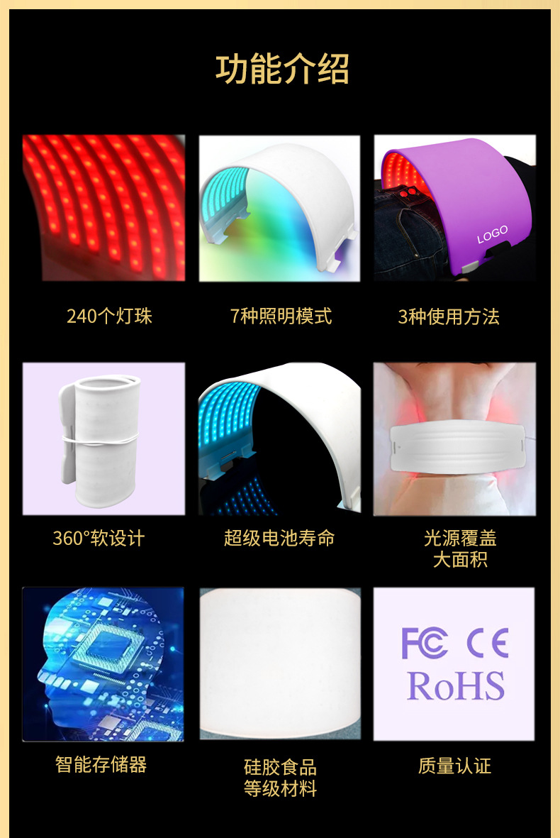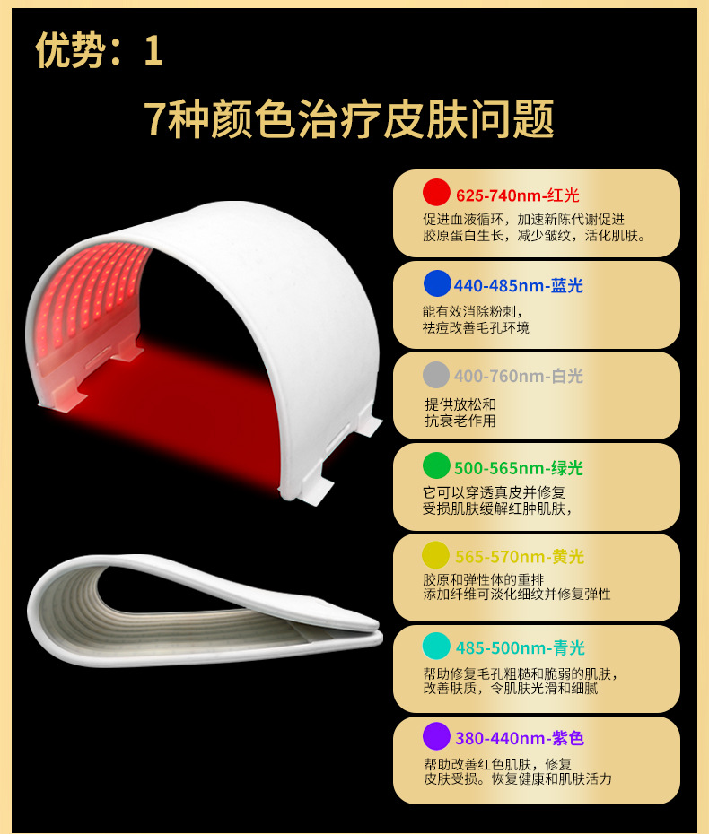 新款7色LED硅胶大排灯 光子嫩肤面膜仪美容面罩PDT光谱仪美容仪器