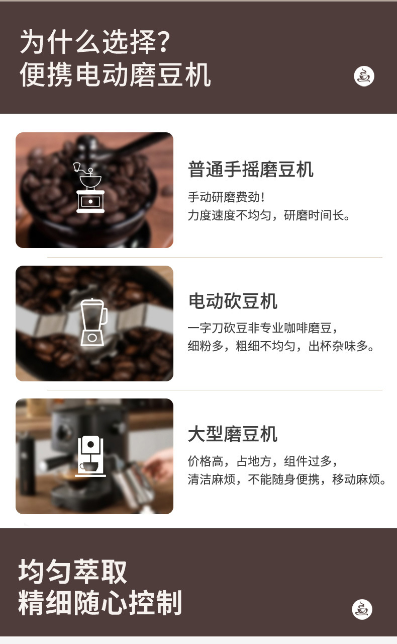 磨豆机咖啡豆研磨机便携小型家用现磨研磨器自动咖啡机电动磨豆机