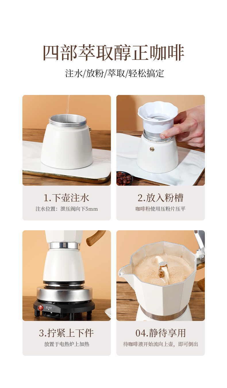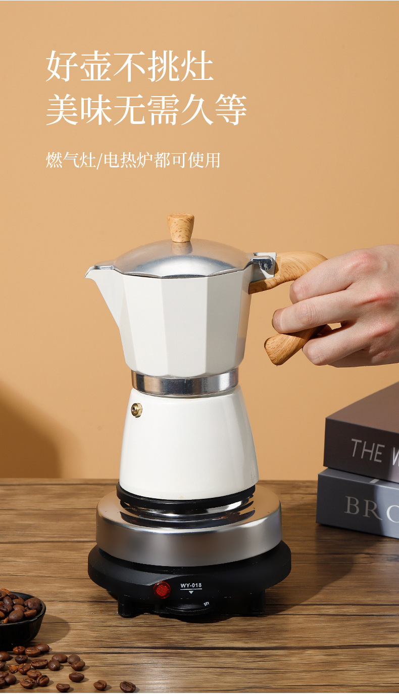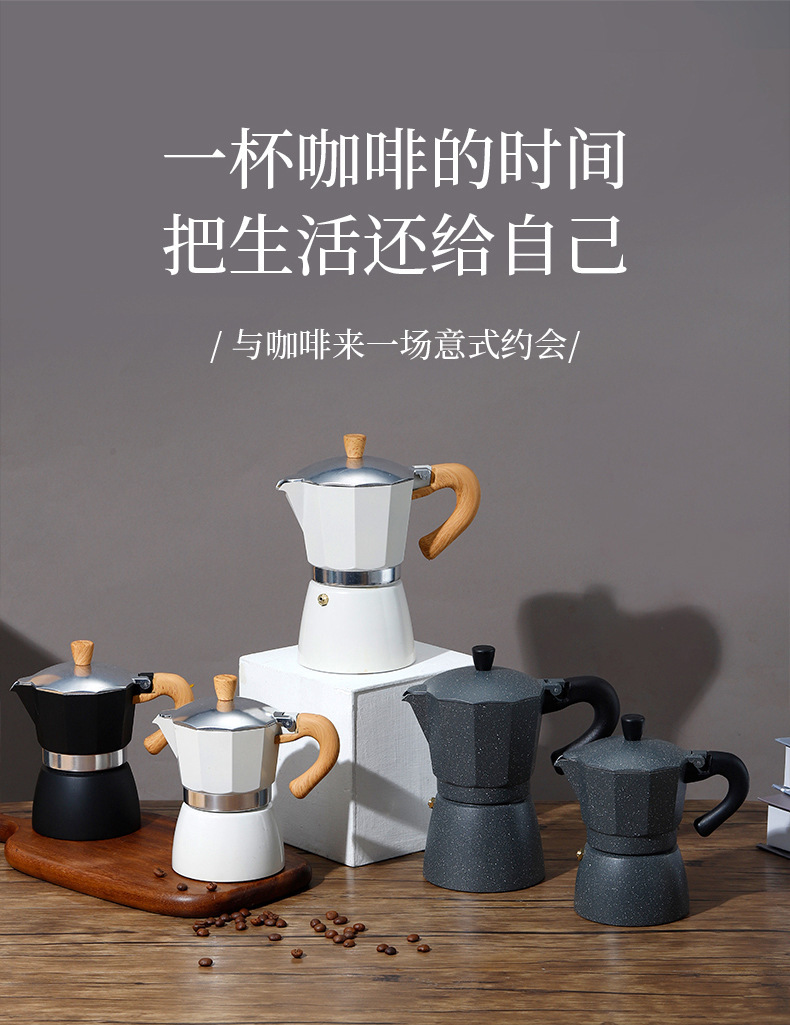跨境现货铝咖啡壶意式铝制摩卡壶 煮咖啡手冲浓缩咖啡器具