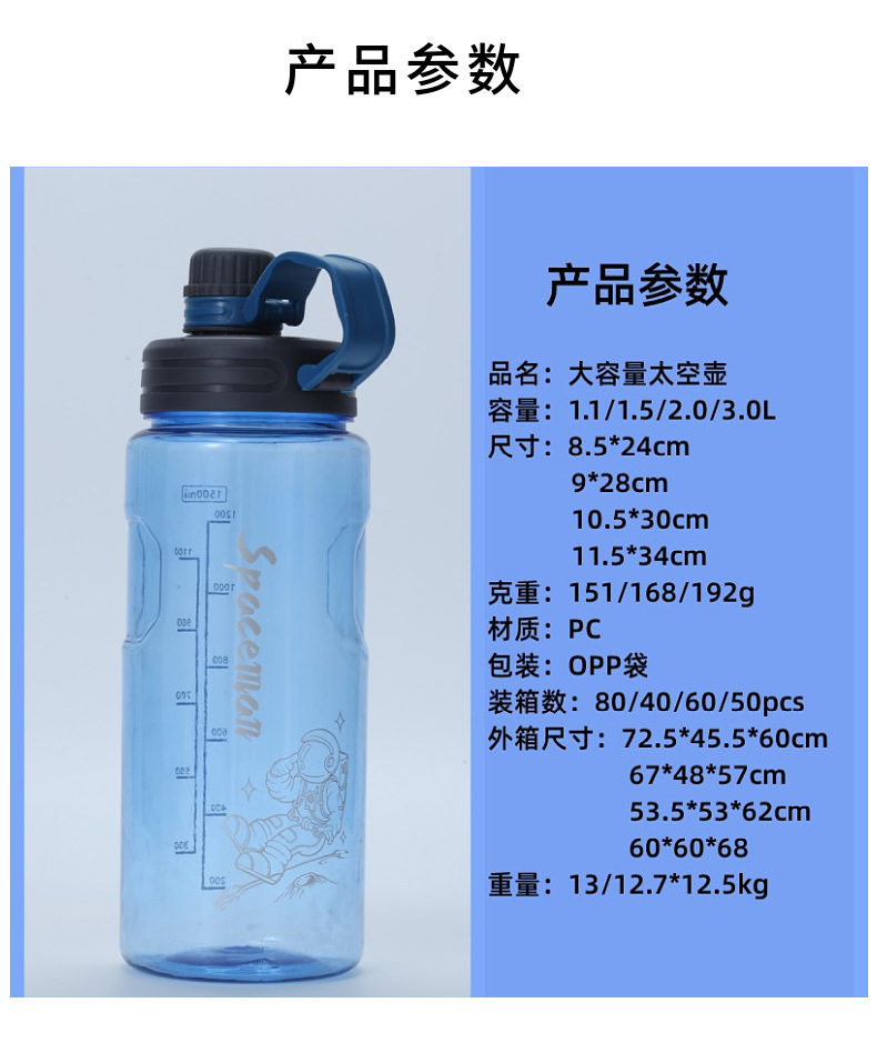 运动水壶出口敦敦桶太空水杯塑料耐高温骑行水壶加厚防爆大容量