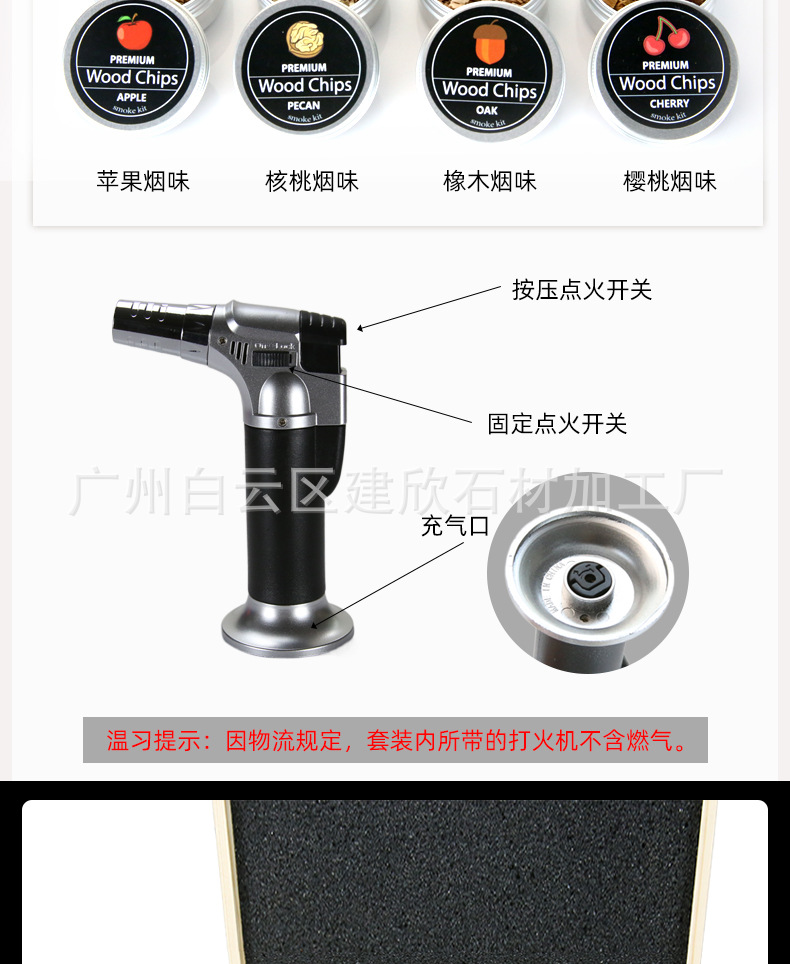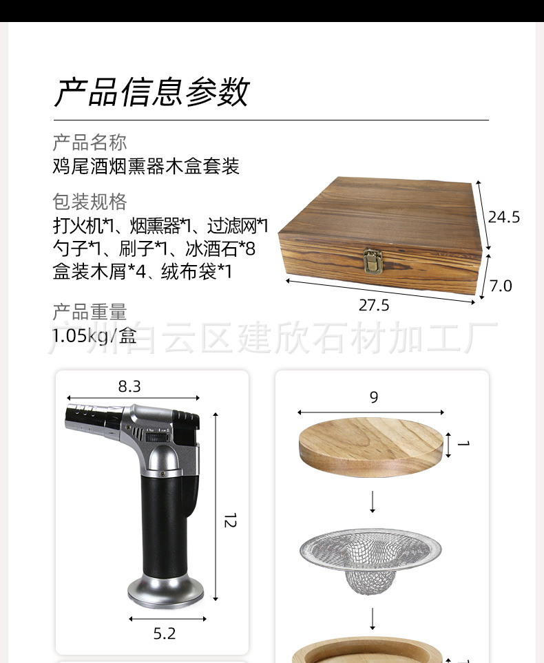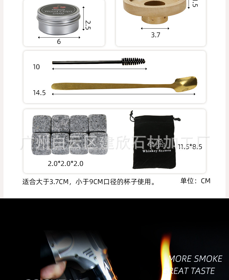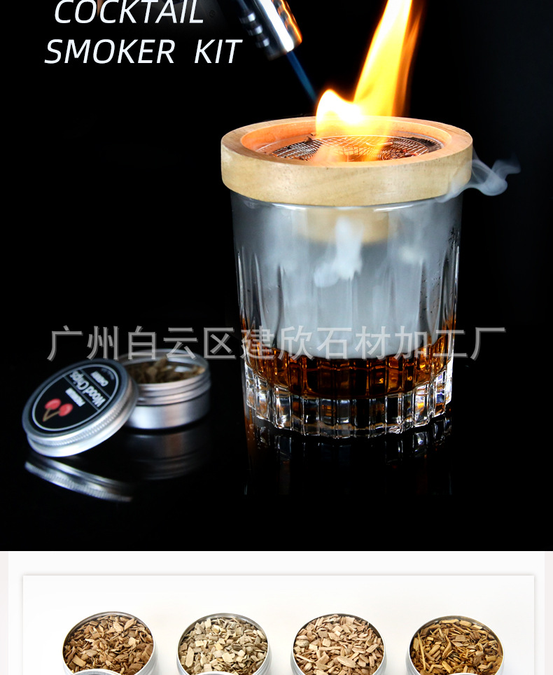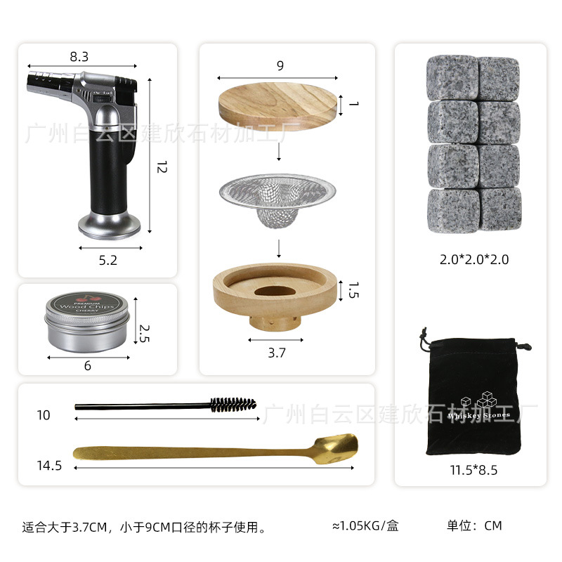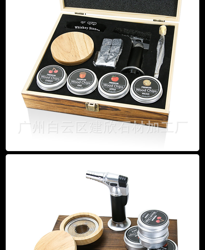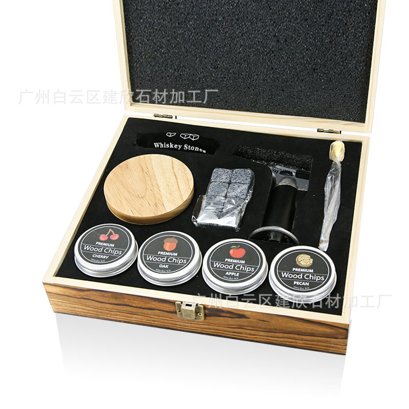 亚马逊热卖烟熏器木盒套装不同烟味木屑冰石威士忌鸡尾酒礼盒批发