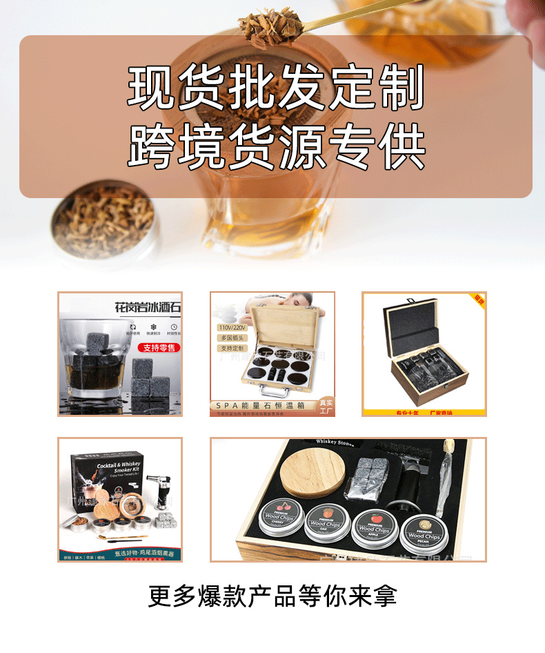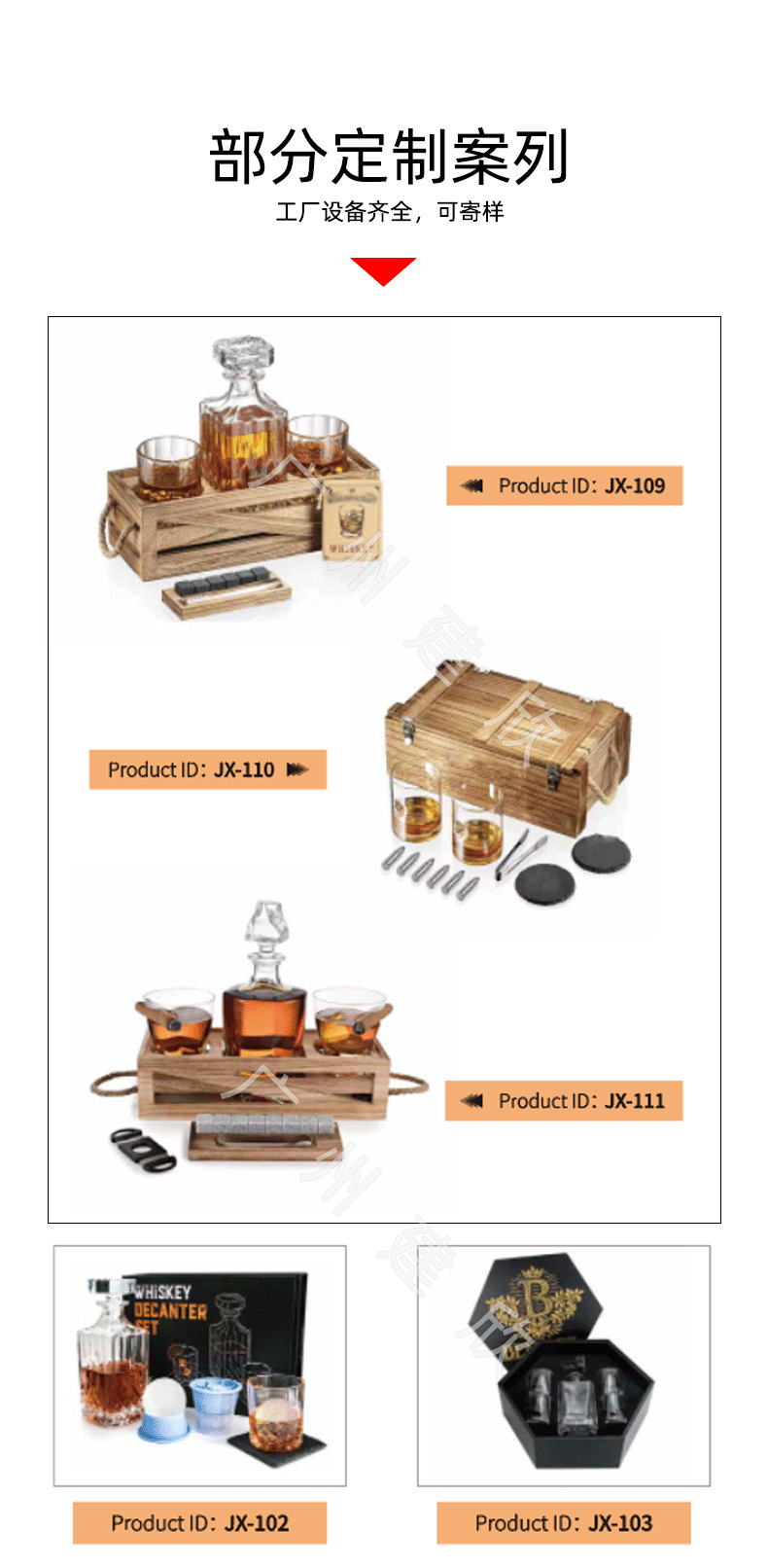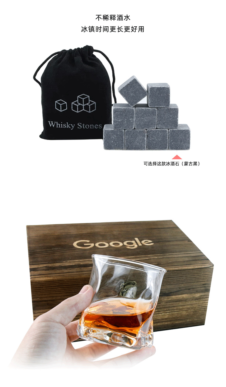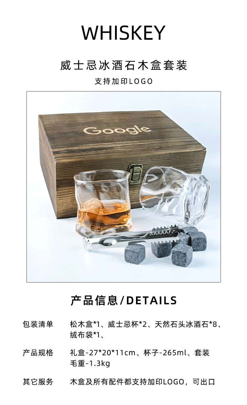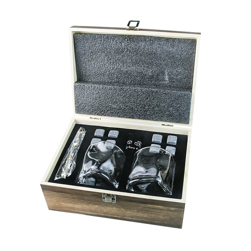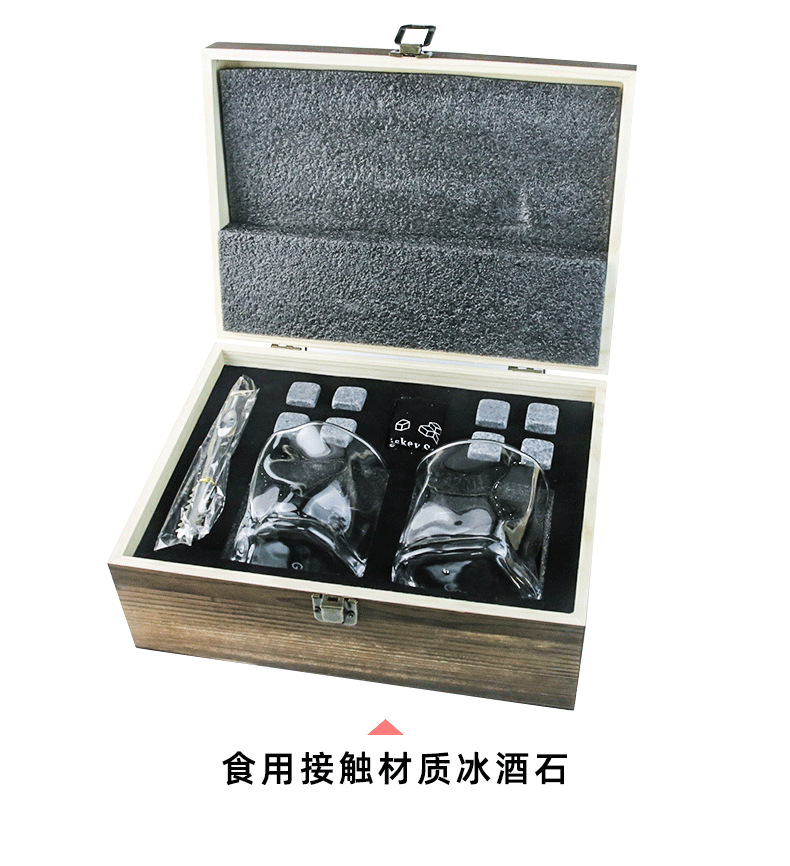 定制豪华复古威士忌冰酒石木盒套装威士忌杯酒具套装工厂批发