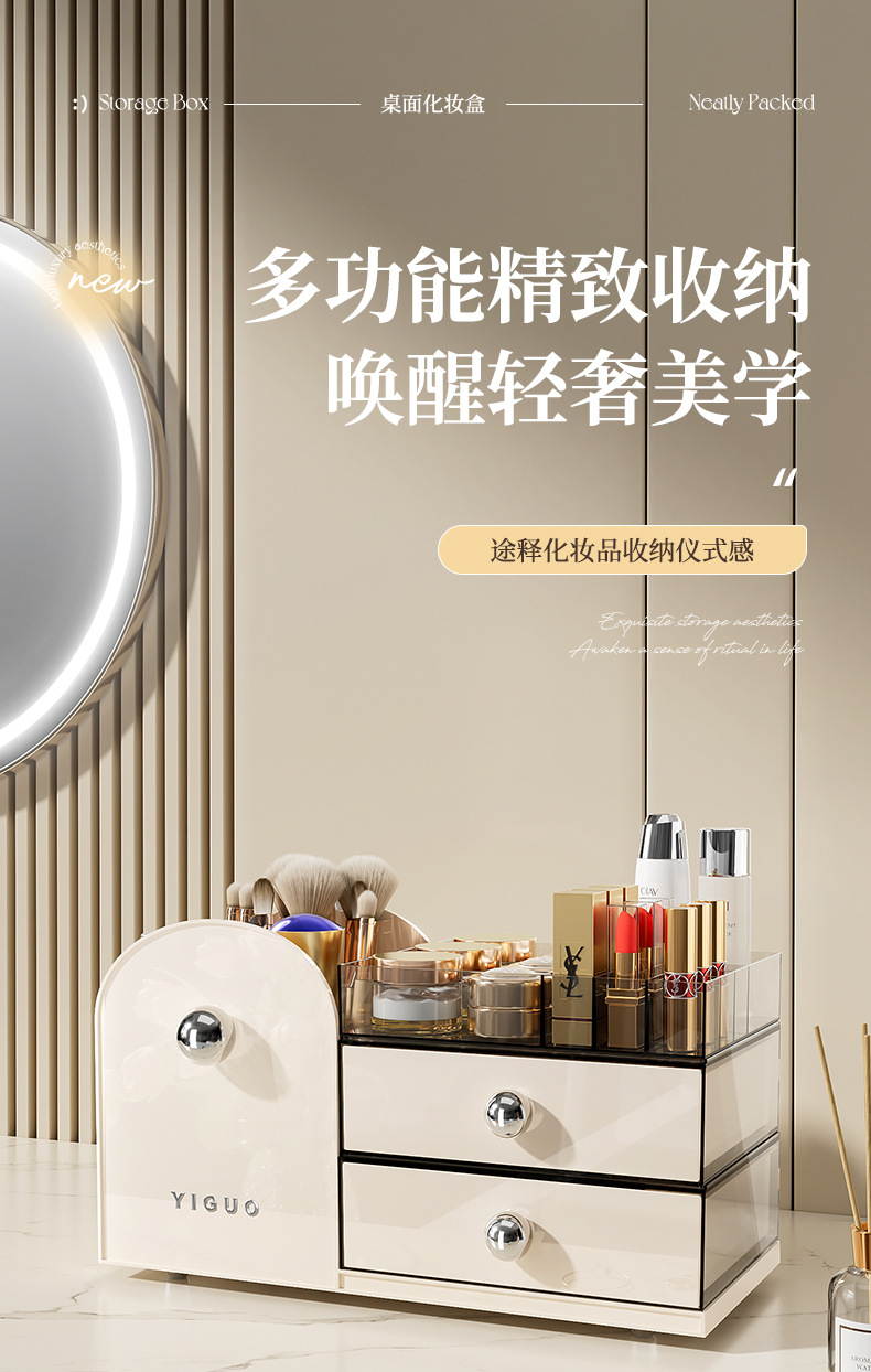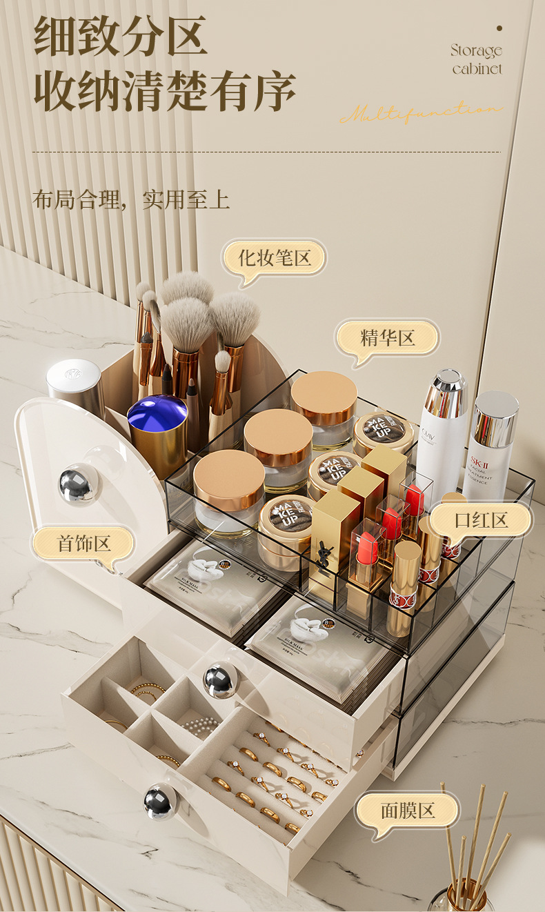 化妆品收纳盒桌面高档精致2024新款护肤品整理盒梳妆台香水置物架