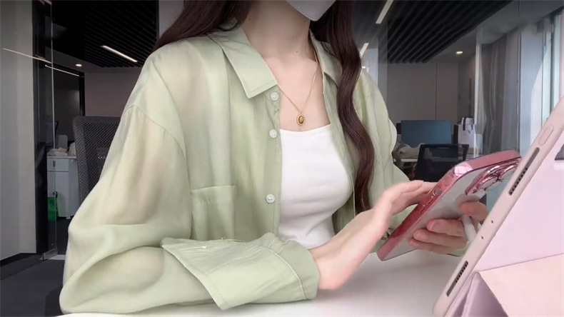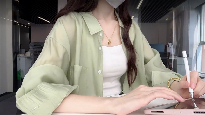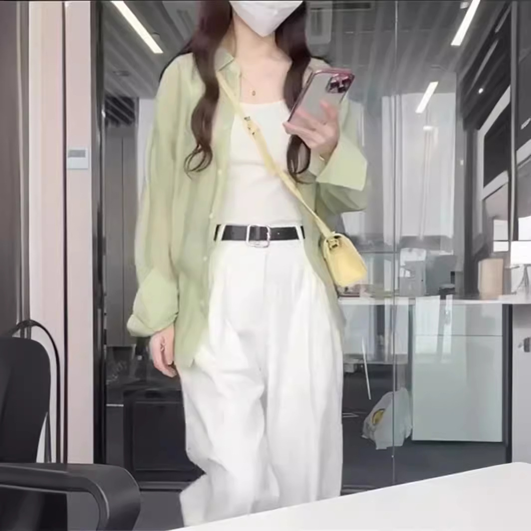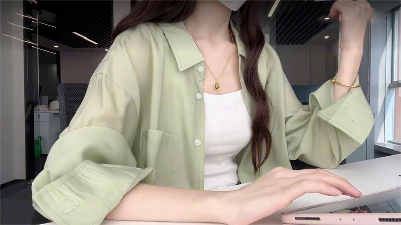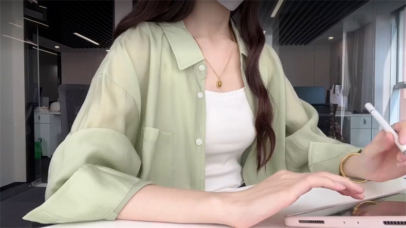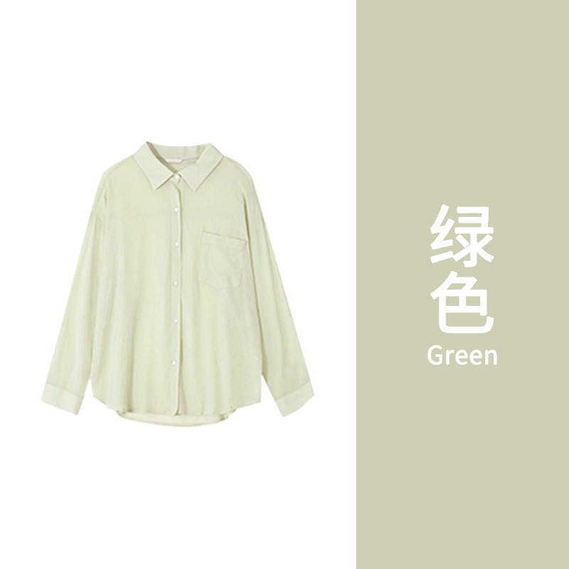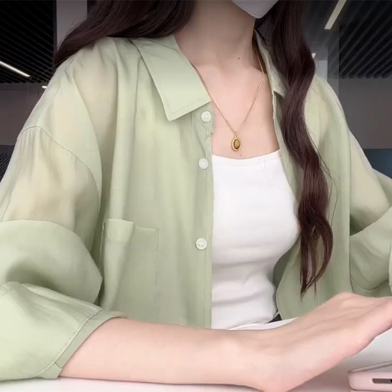 薄荷绿夏季防晒衬衫女2024新款薄款长袖高级慵懒风宽松外套防晒衣