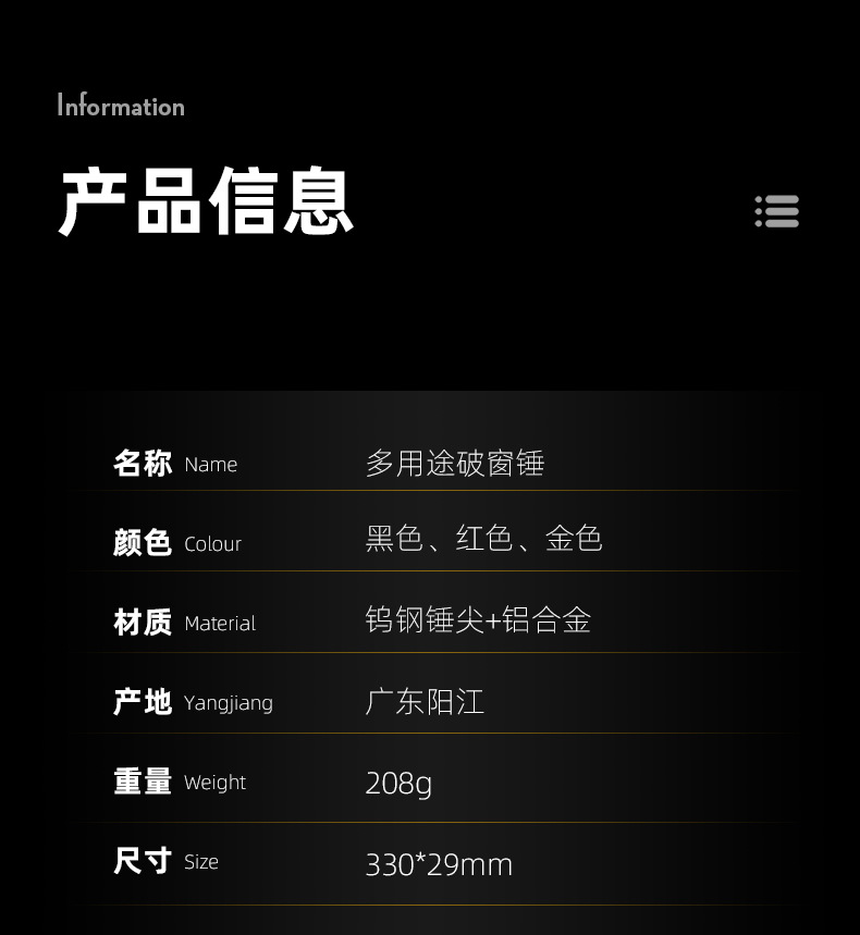批发汽车多用途安全锤钨钢锤尖车载逃生破窗神器便携应急小型锤