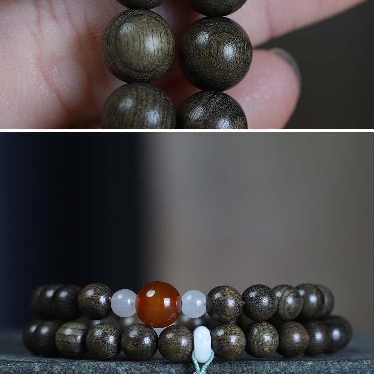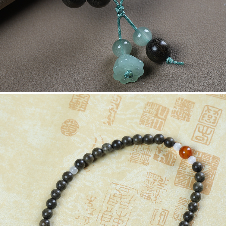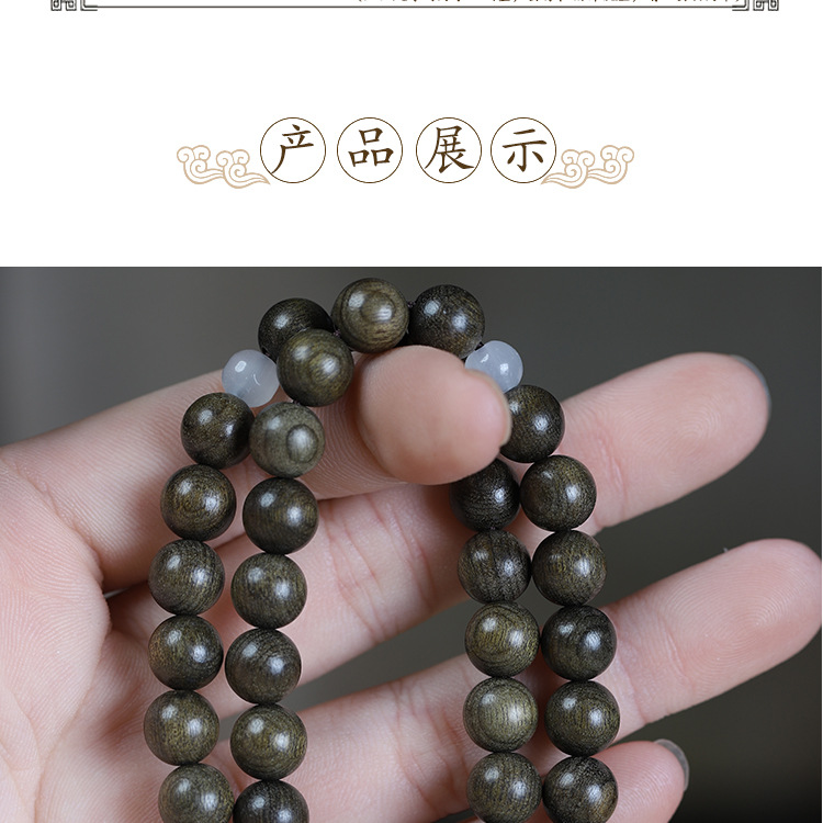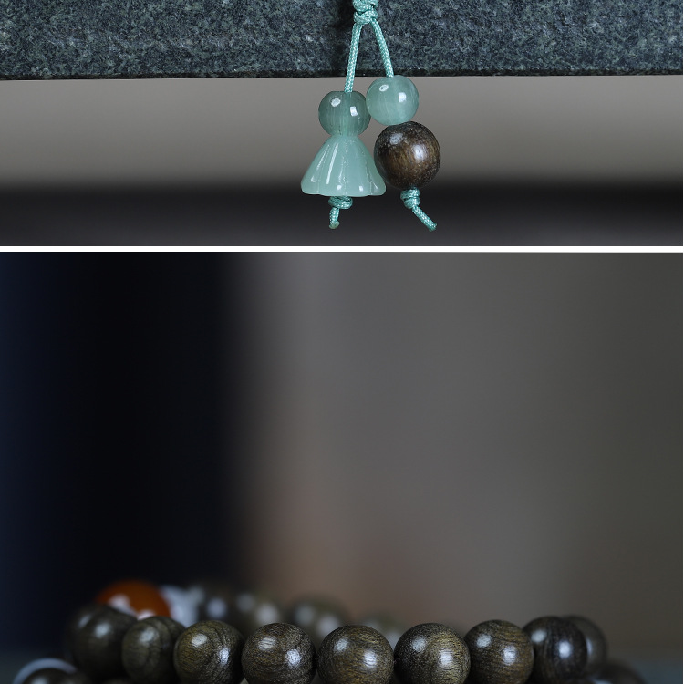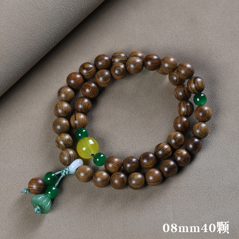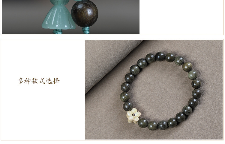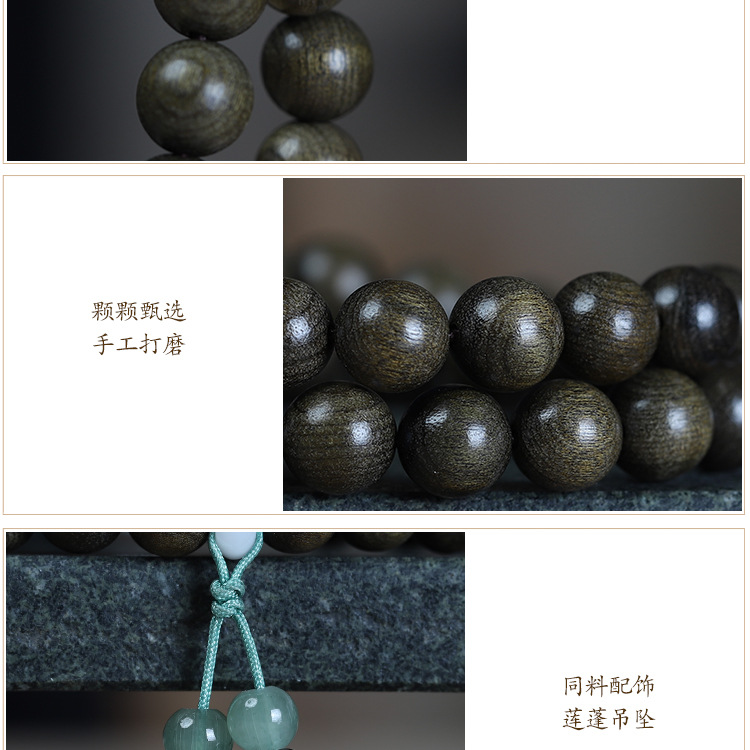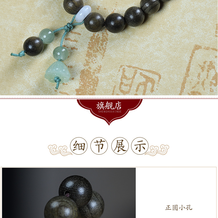 檀香阴沉木男女国风手串双圈款情侣手链配莲花吊坠文玩佛珠木质