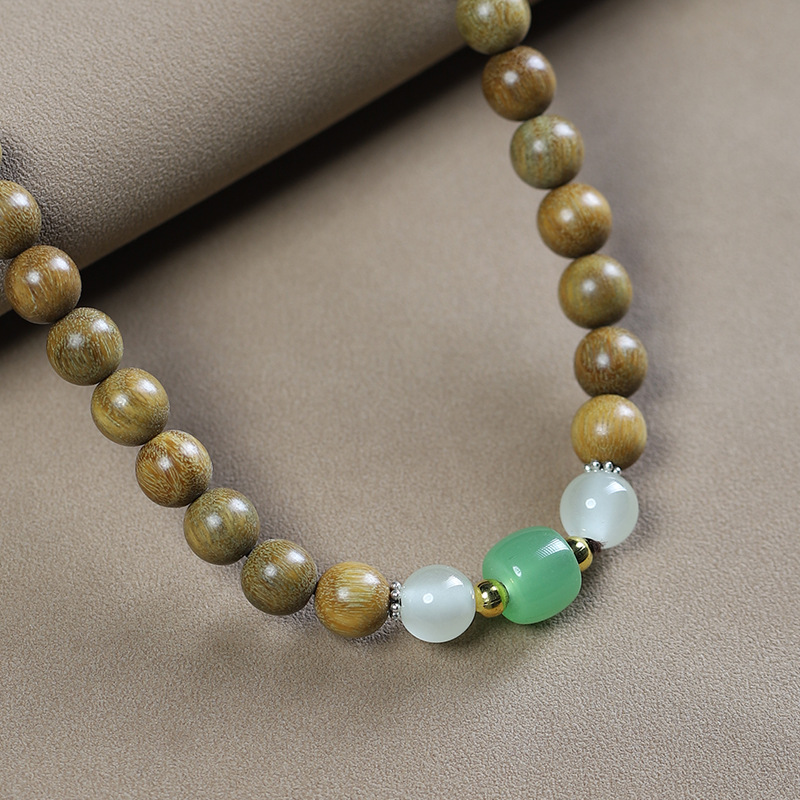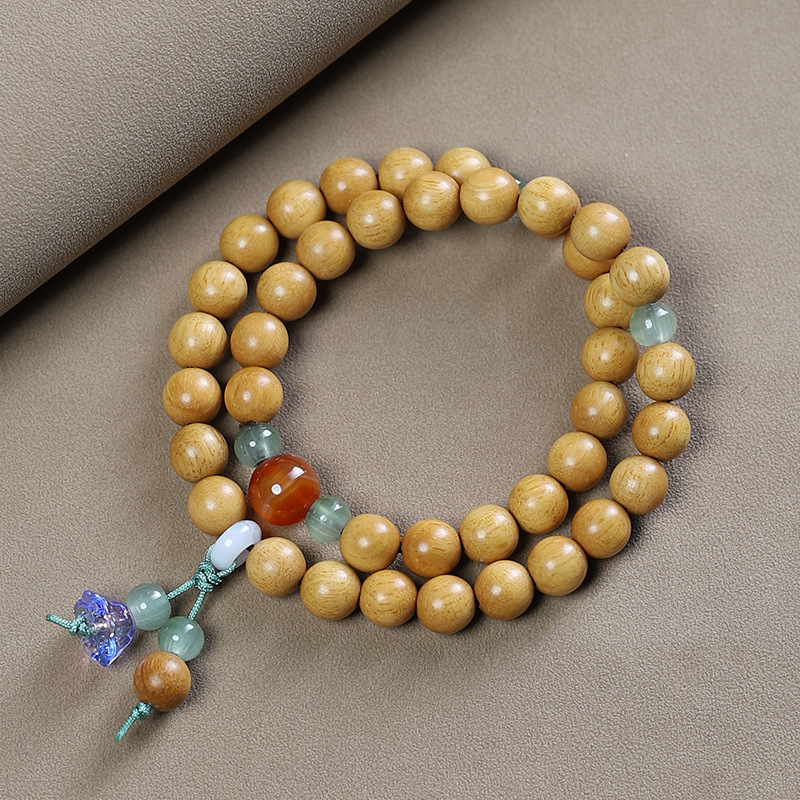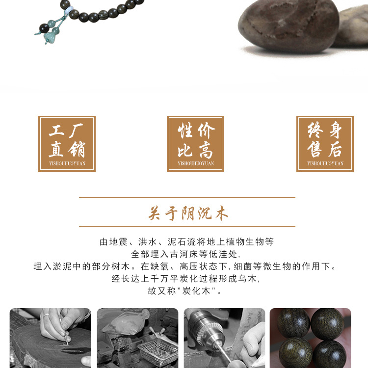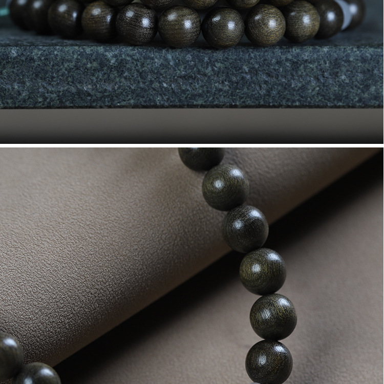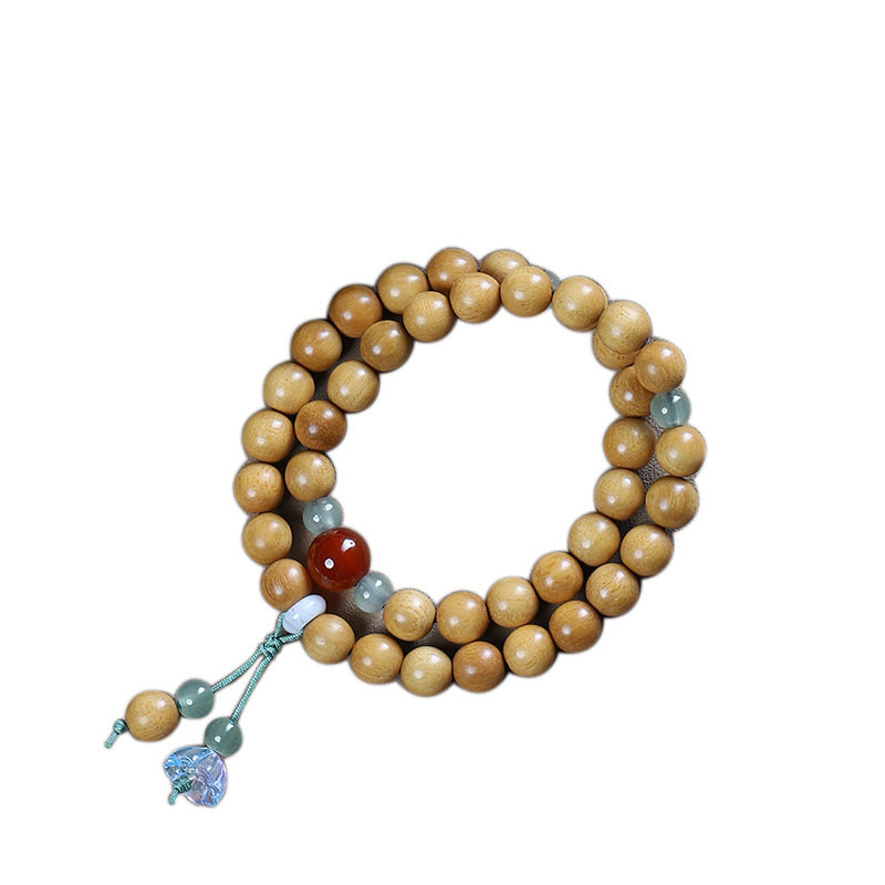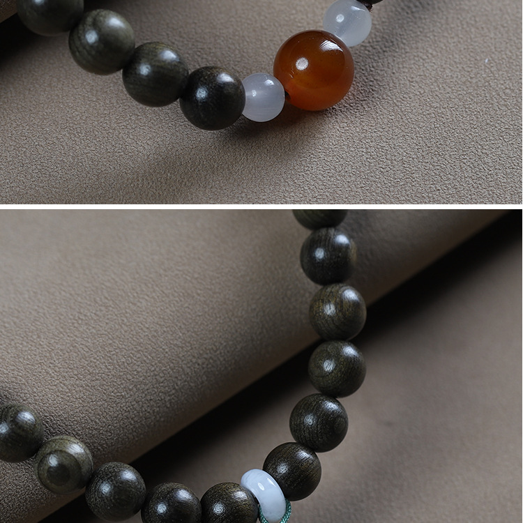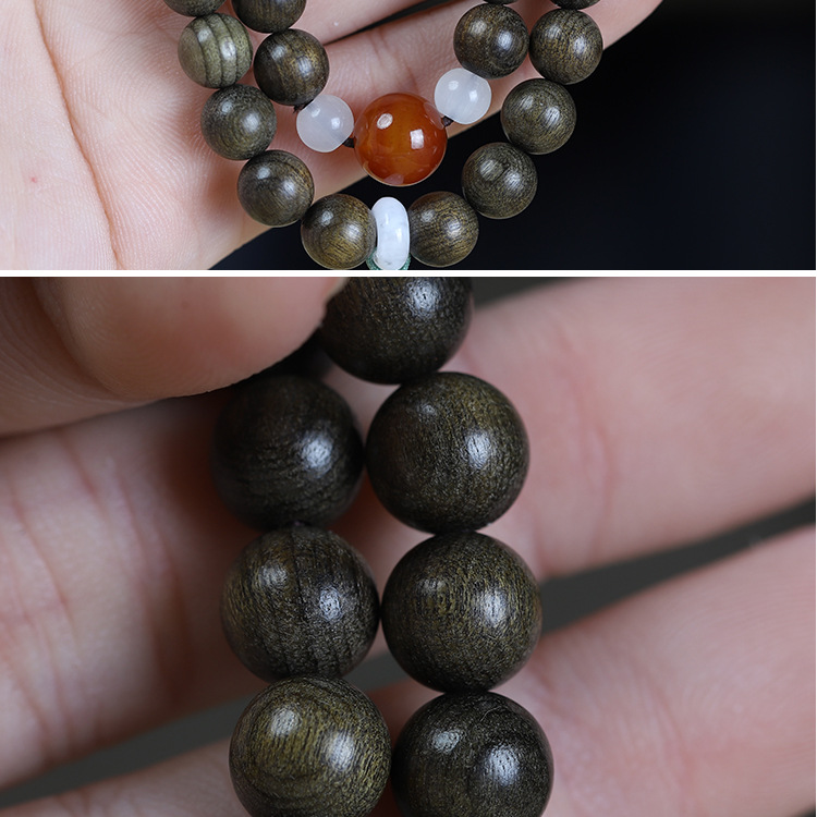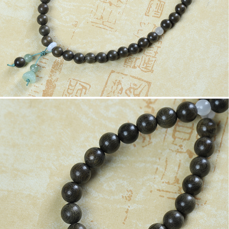 檀香阴沉木男女国风手串双圈款情侣手链配莲花吊坠文玩佛珠木质