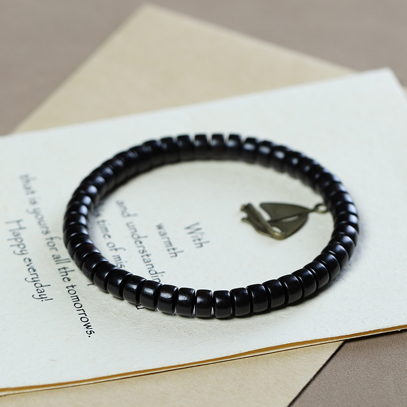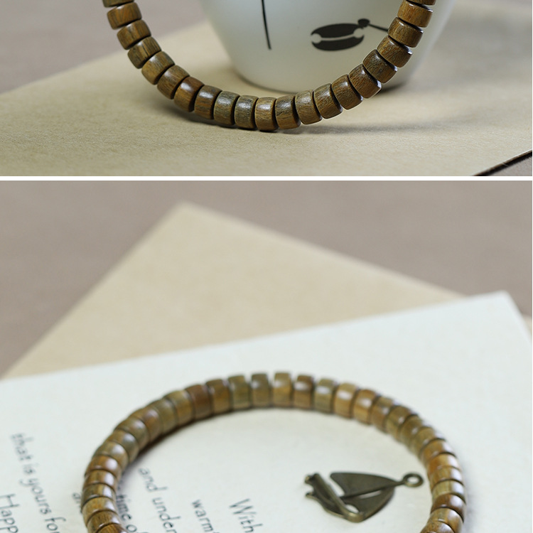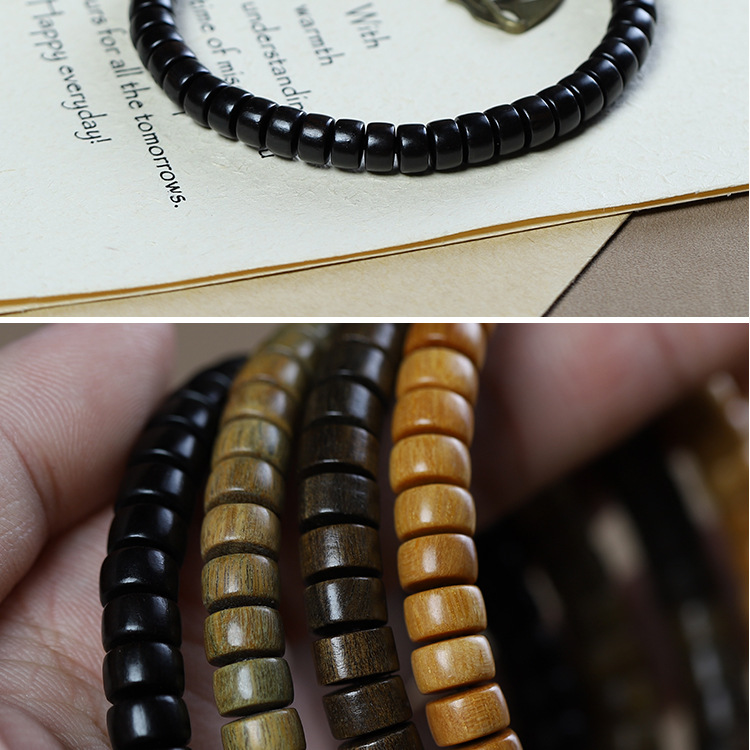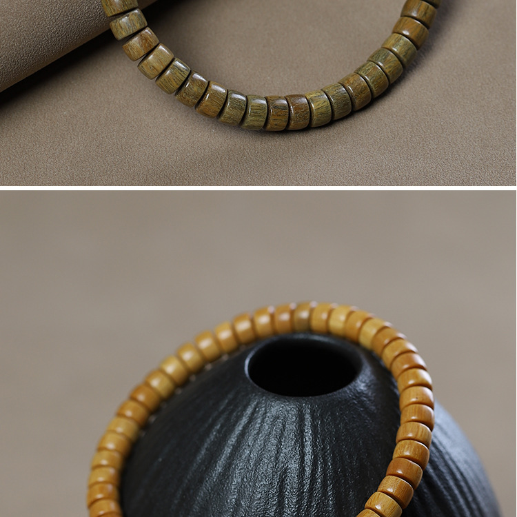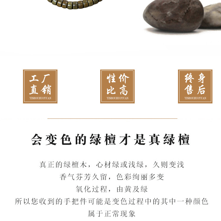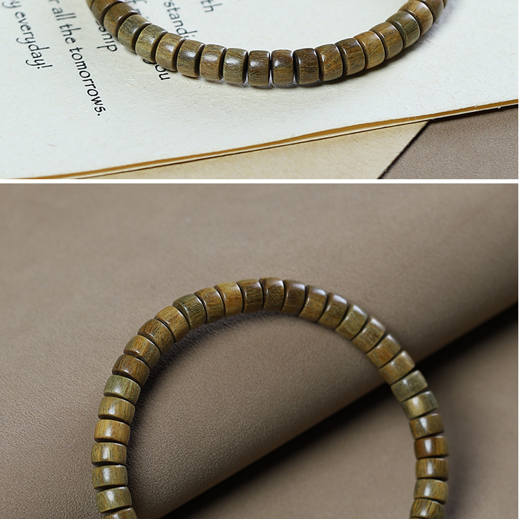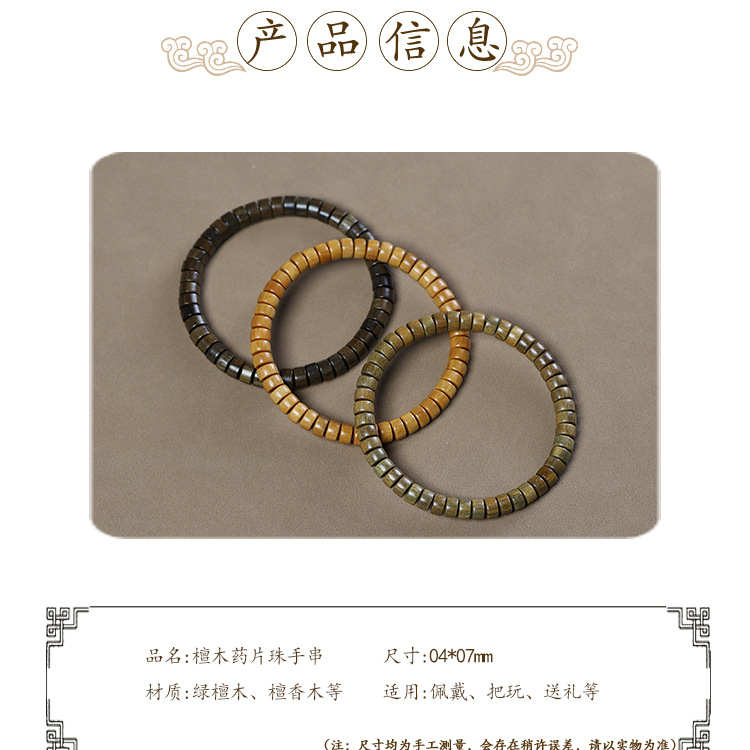 檀木药片珠手串木质简约男女复古手链绿檀木紫光檀单圈佛珠文玩
