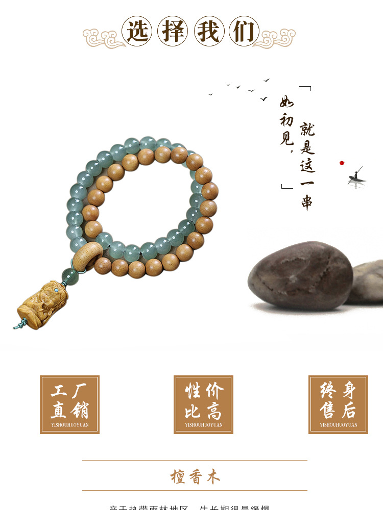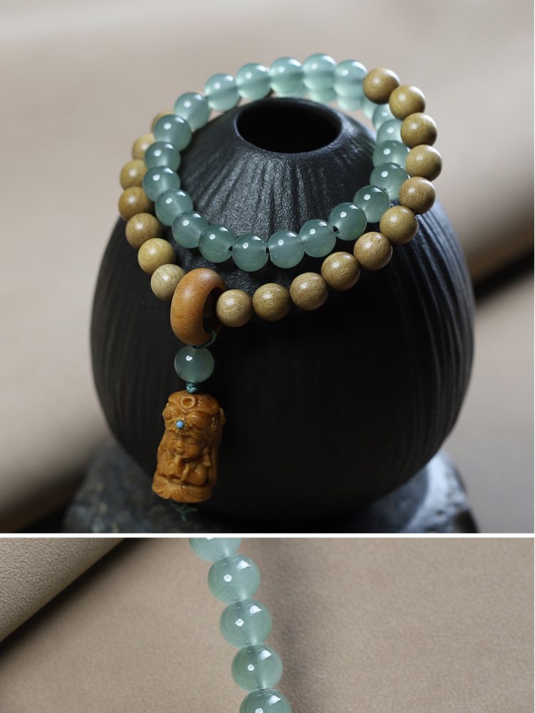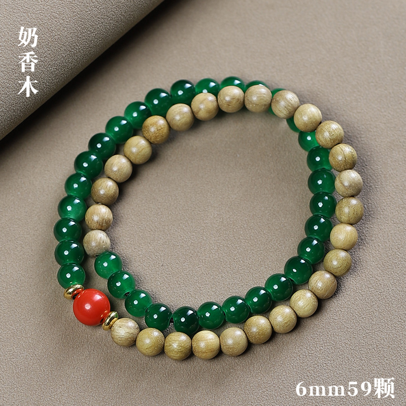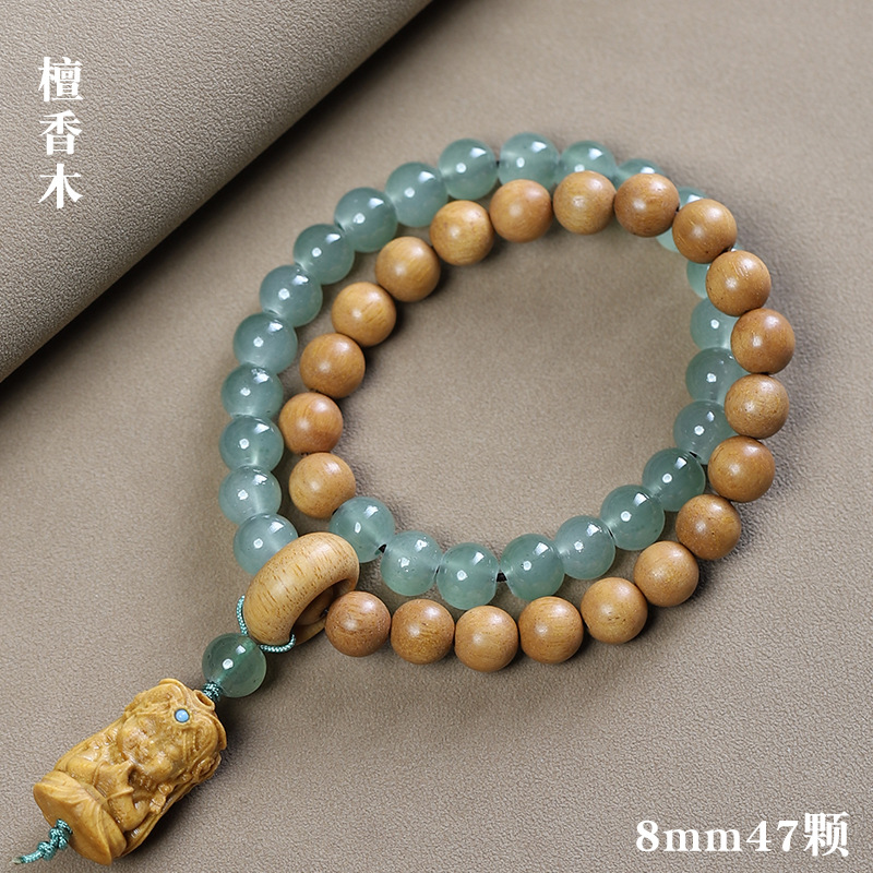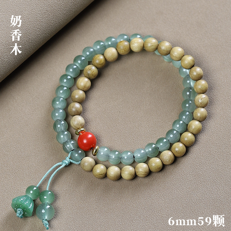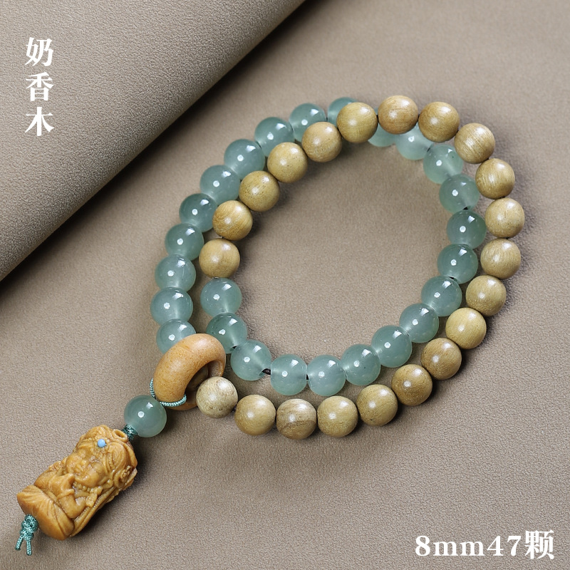 檀香奶香木拼接东陵玉双圈手串复古情侣手链雕刻度母吊坠文玩佛珠