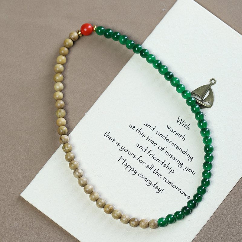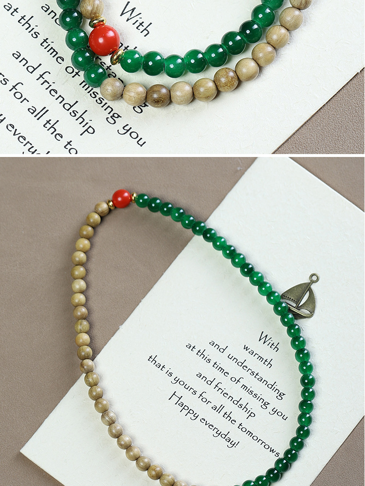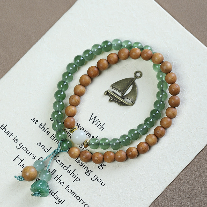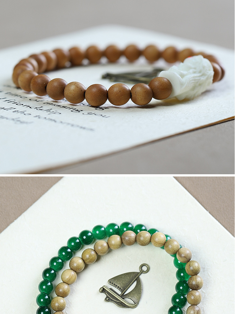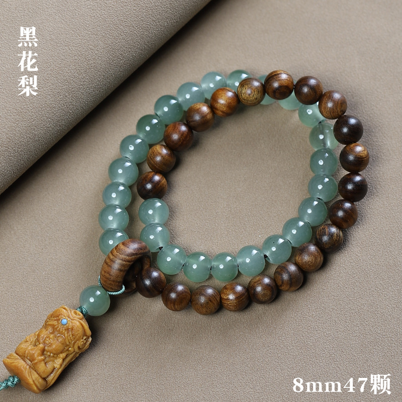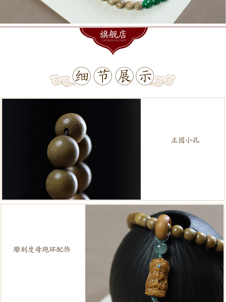 檀香奶香木拼接东陵玉双圈手串复古情侣手链雕刻度母吊坠文玩佛珠