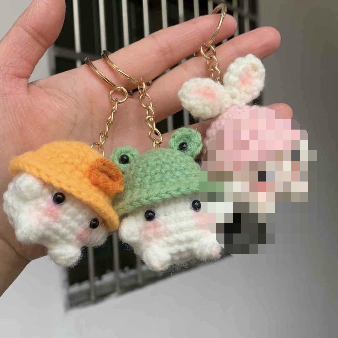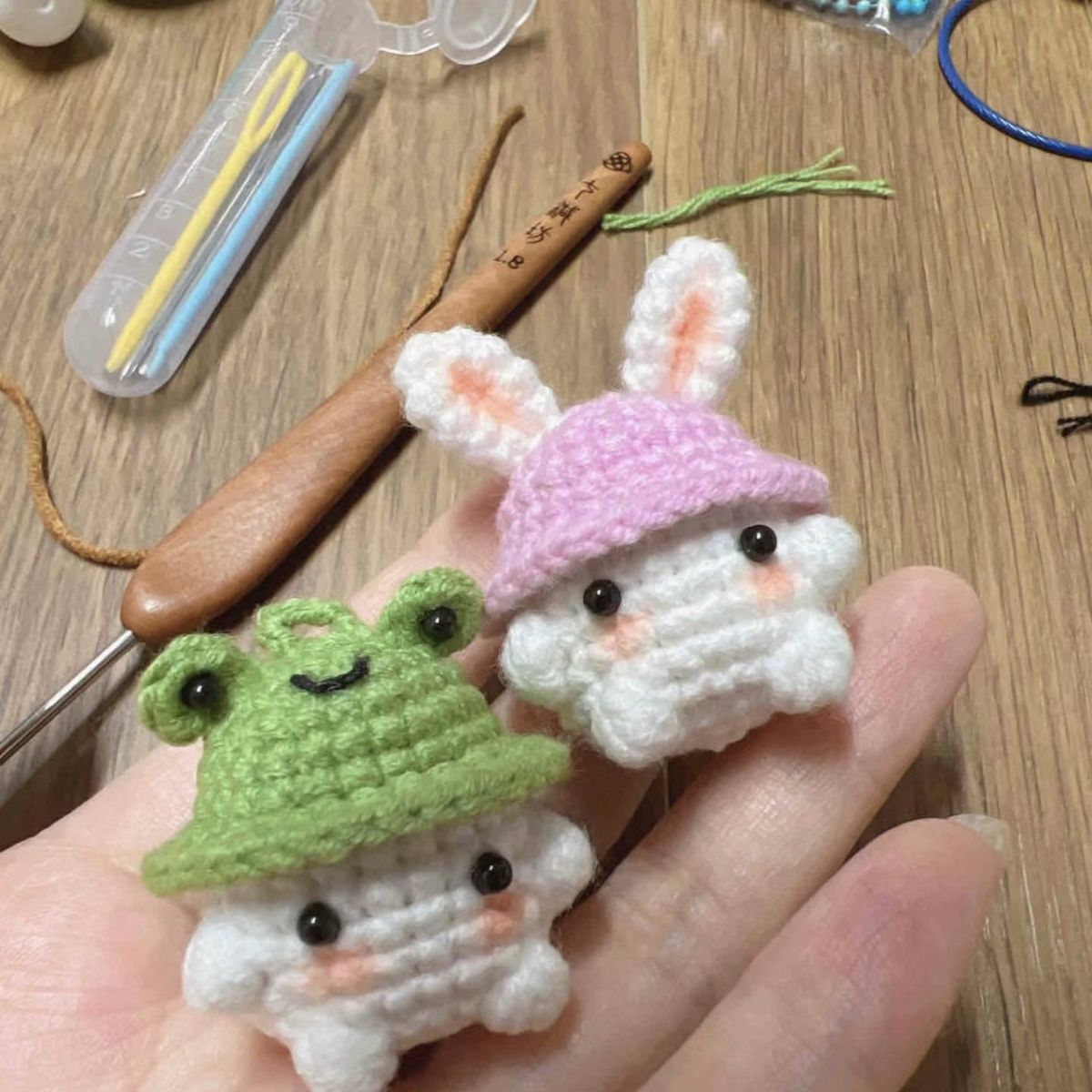 手工钩织玩偶编织毛线包钩针diy可爱挂件钥匙扣蘑菇头青蛙兔子