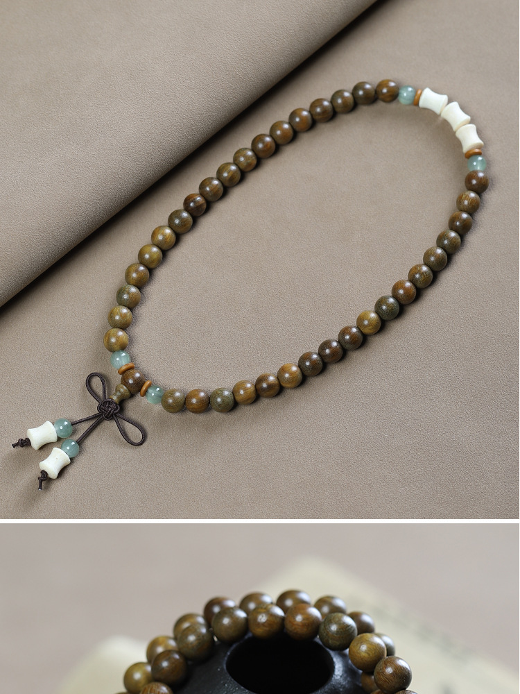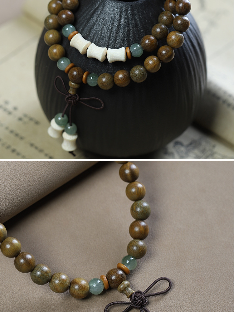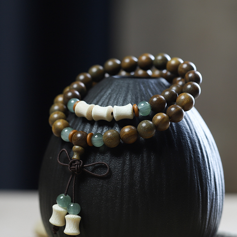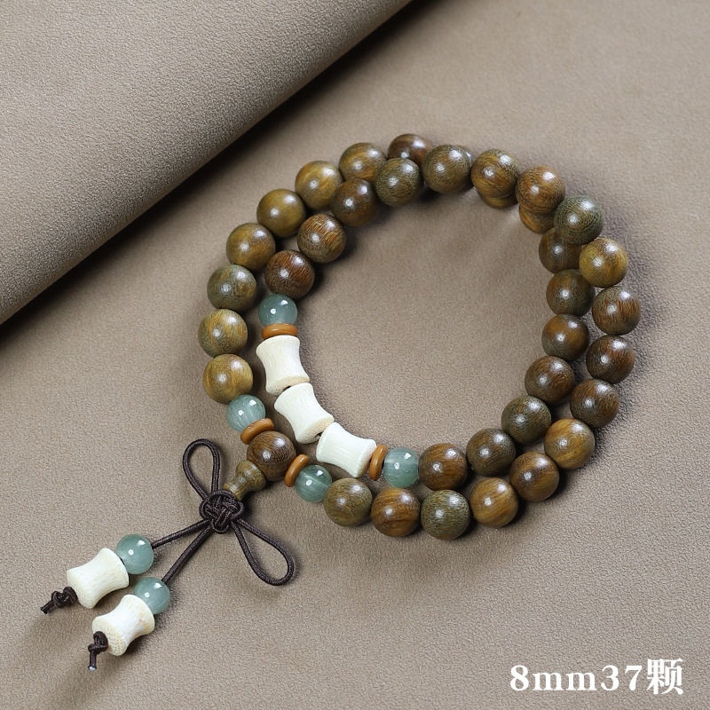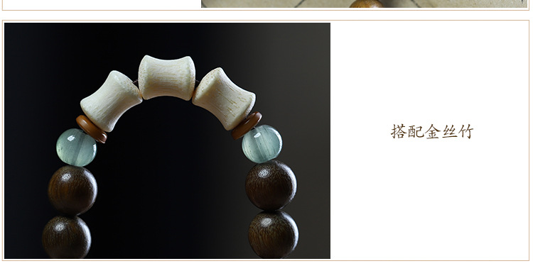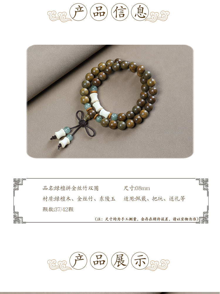 新中式绿檀木手串东陵玉金丝竹多圈文玩手持女紫光檀盘玩佛珠手链
