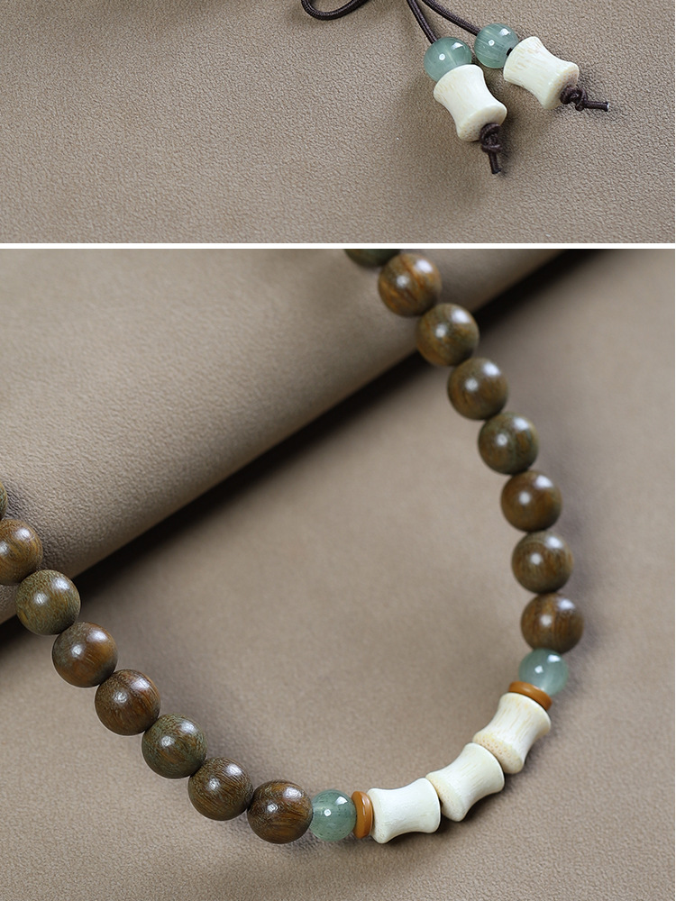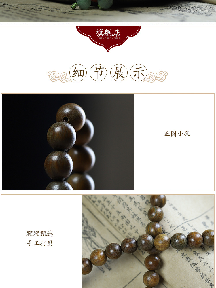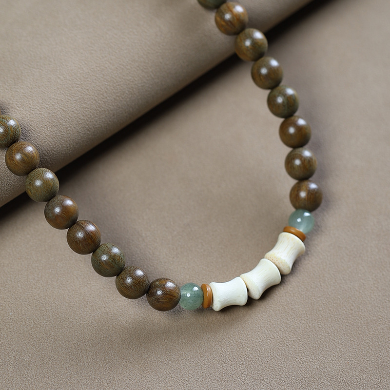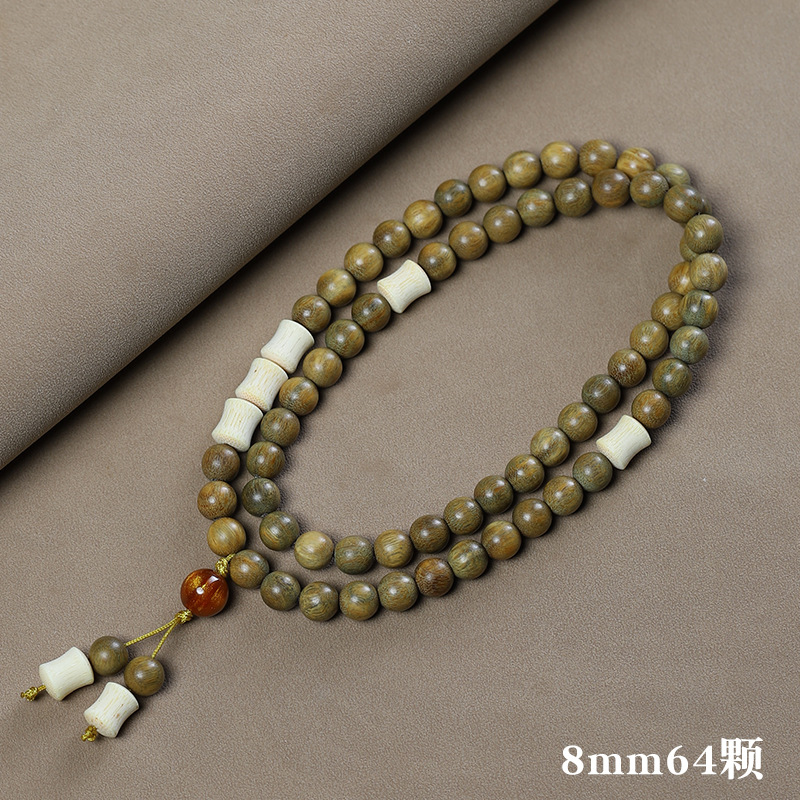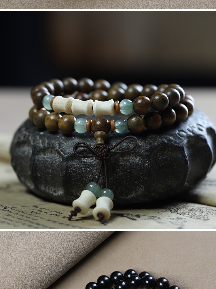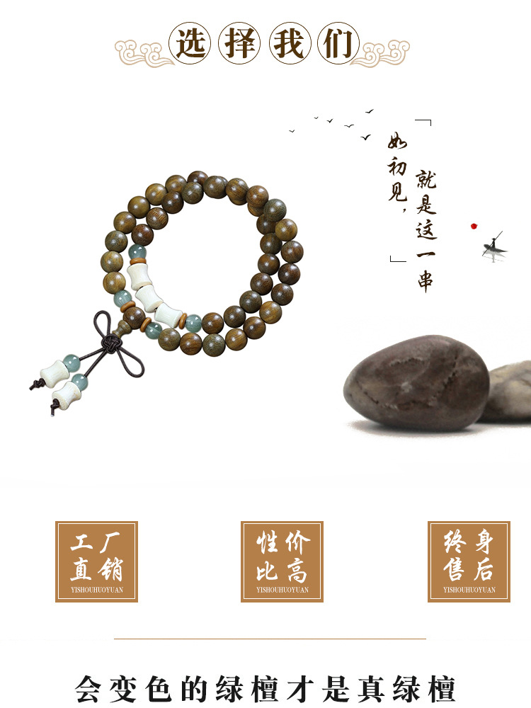 新中式绿檀木手串东陵玉金丝竹多圈文玩手持女紫光檀盘玩佛珠手链