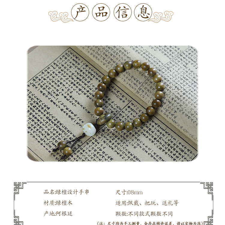 绿檀木佛珠手串情侣阿根廷檀香木男女款文玩念珠单圈配饰手串