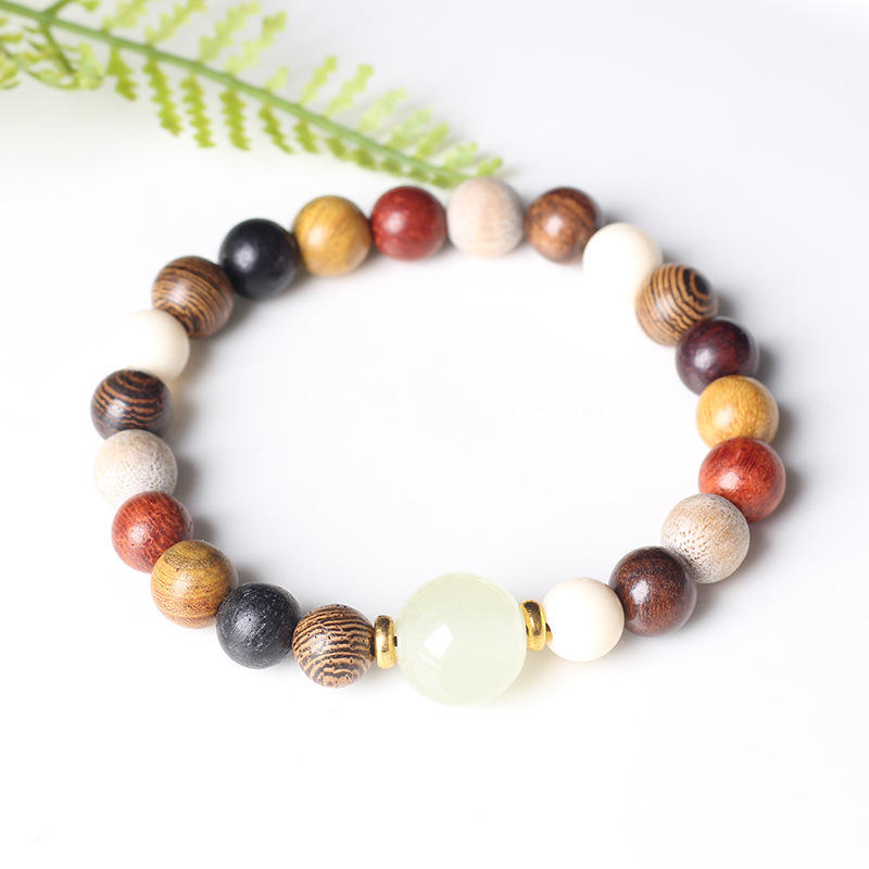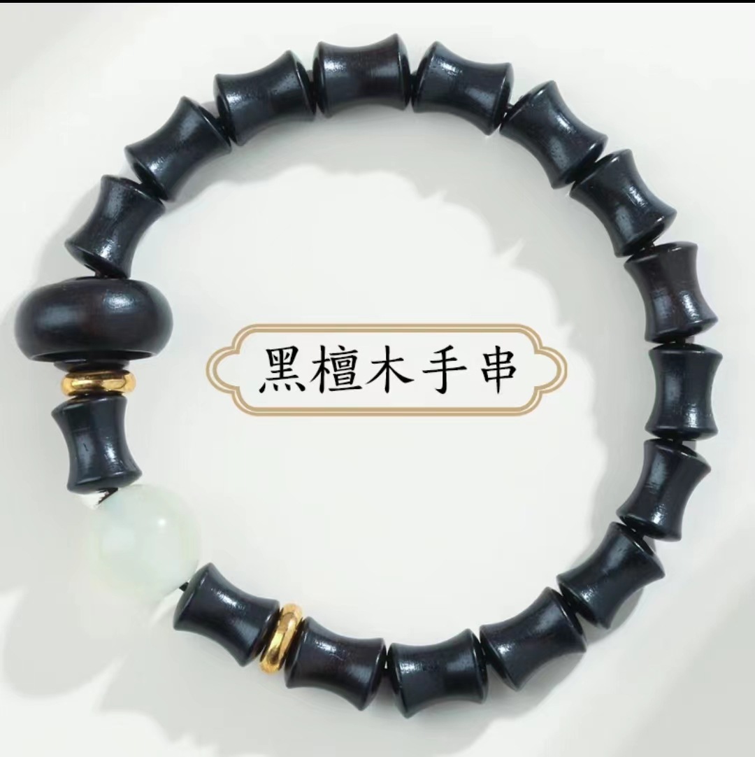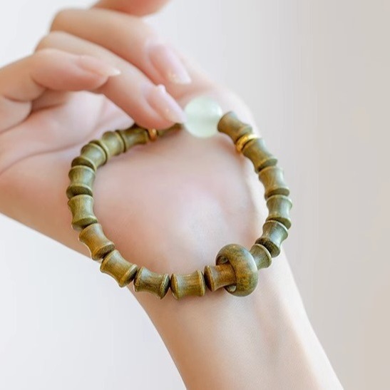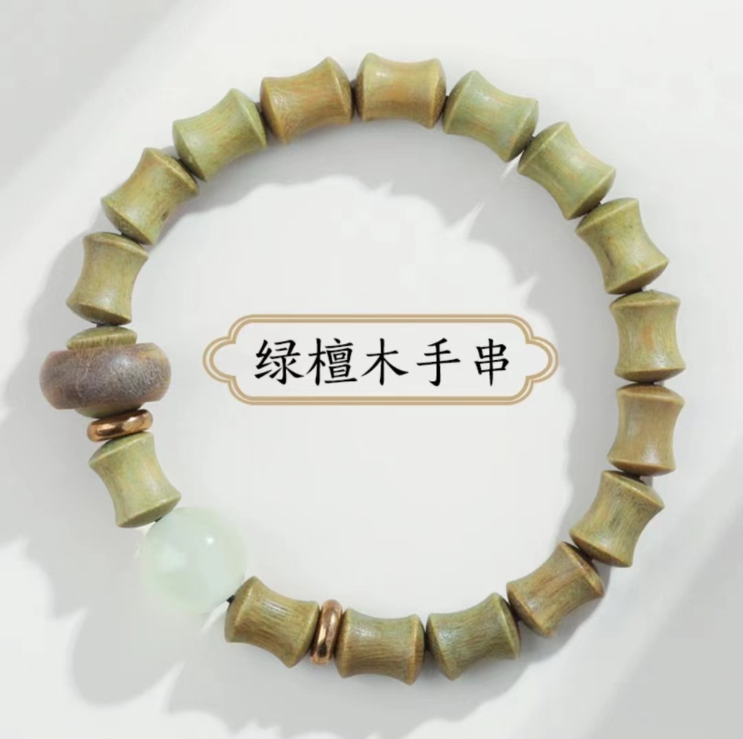 天然绿檀木手串佛珠竹节夜光跑环檀香手链学生盘玩福利品引流批发