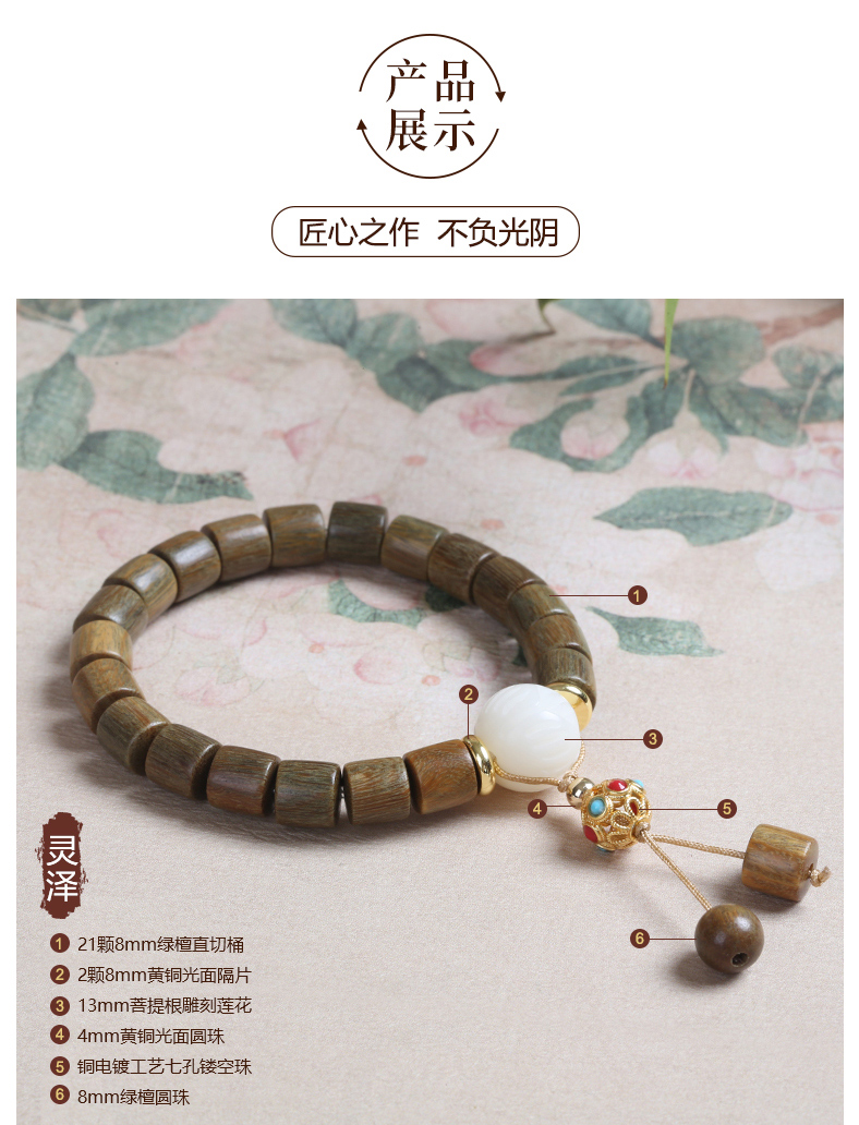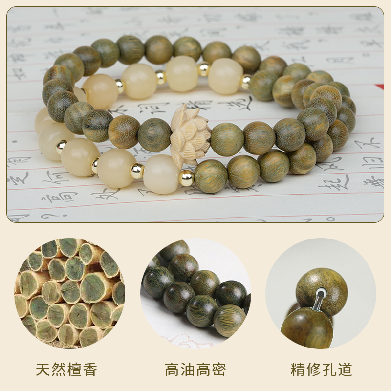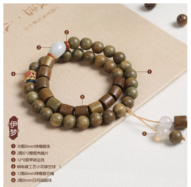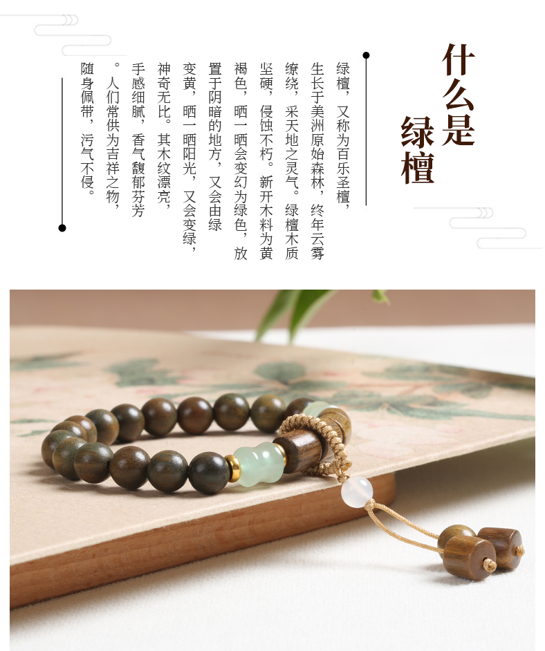 绿檀木复古佛珠手串女菩提根猫爪手链情侣檀香手串天然中国风佛珠