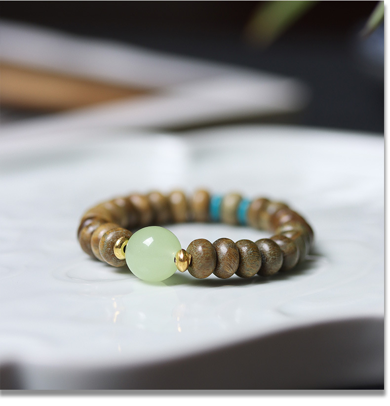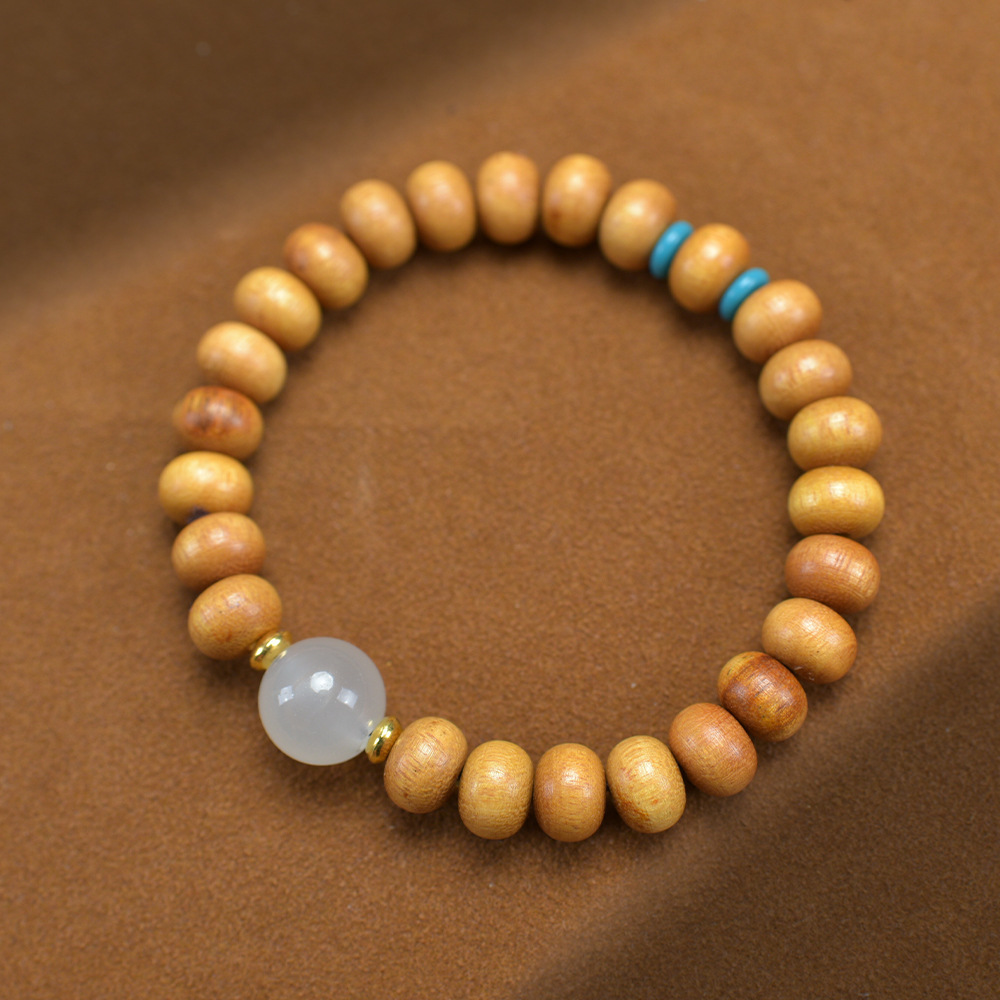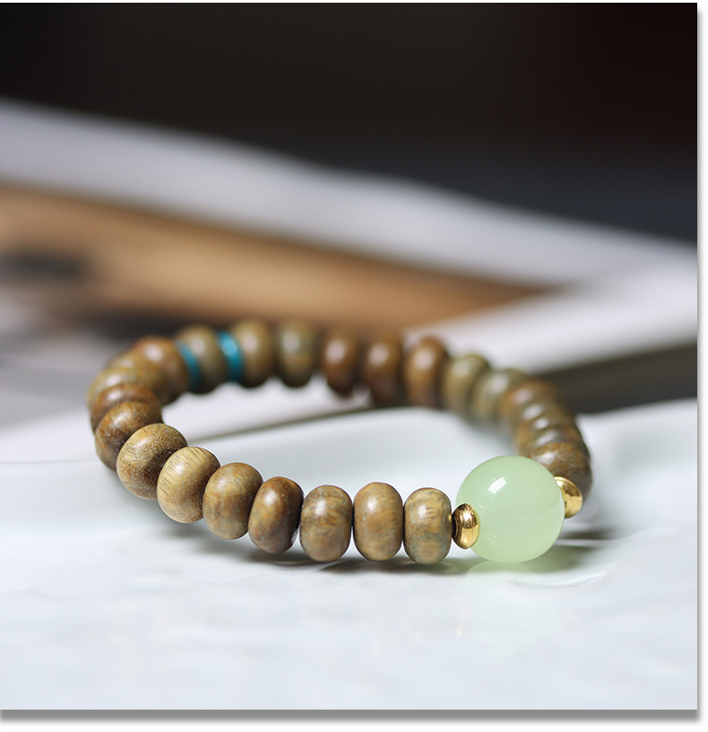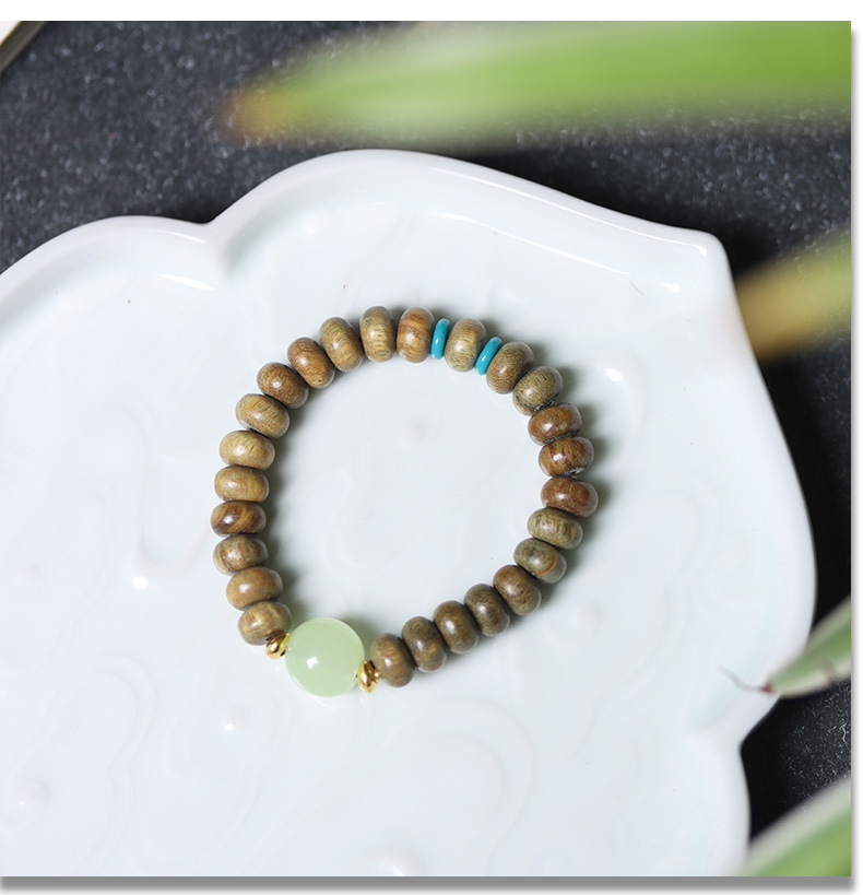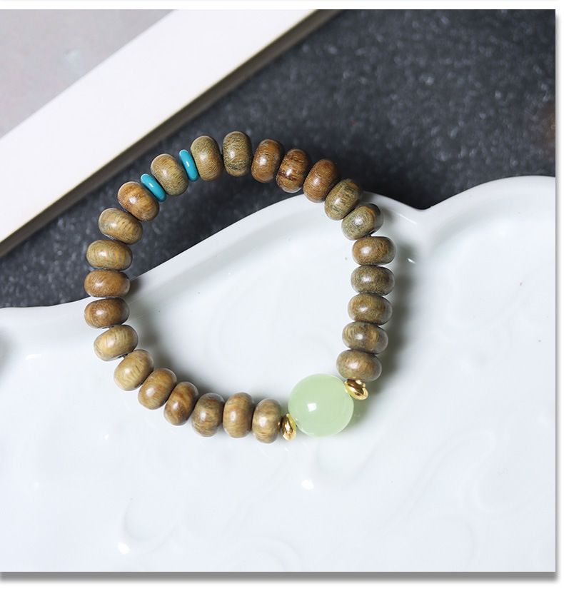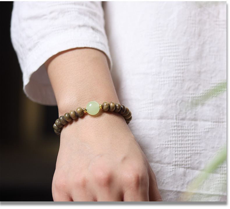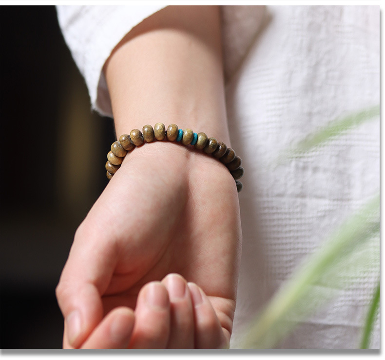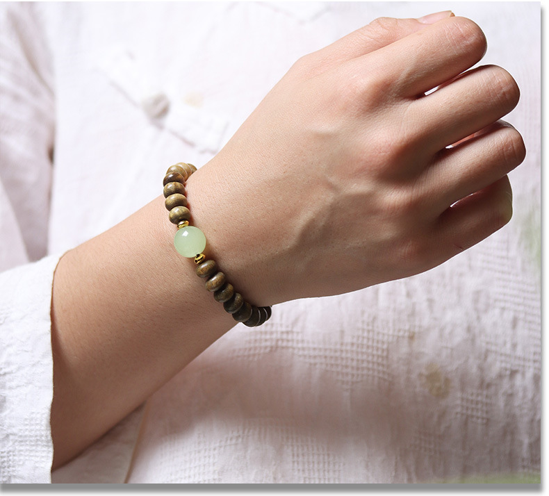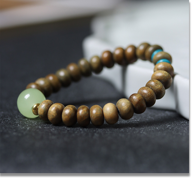 热卖款绿檀算盘珠手串diy配饰品夜月光石玉檀香木男女士手链佛珠