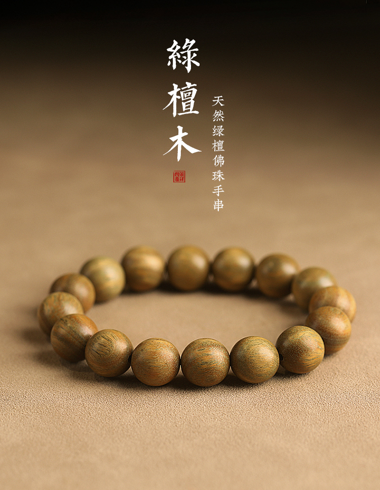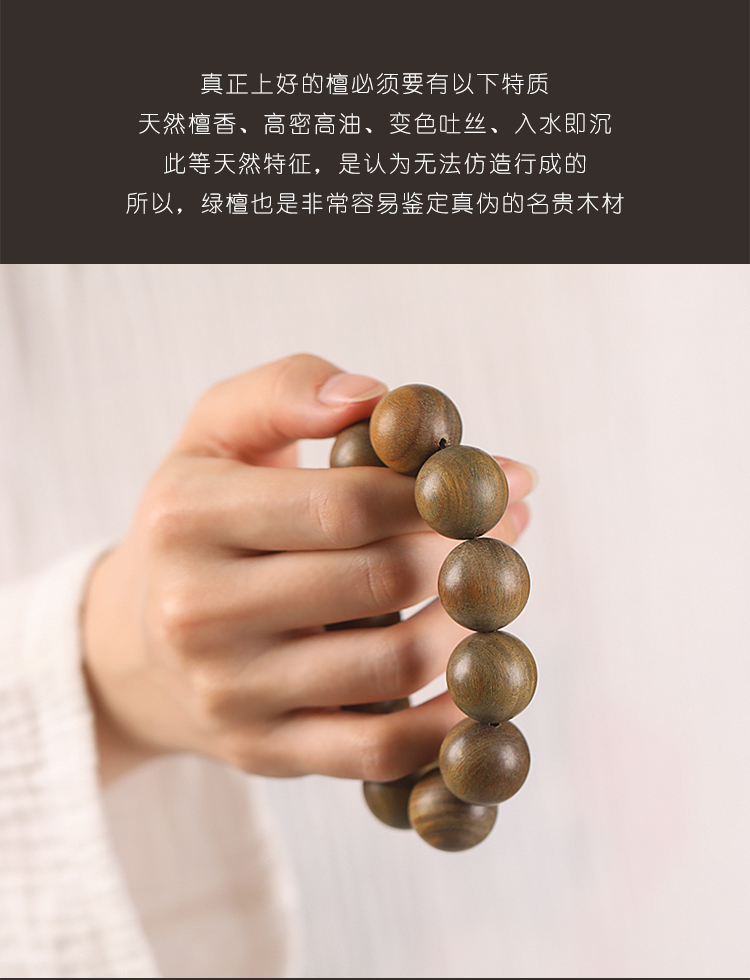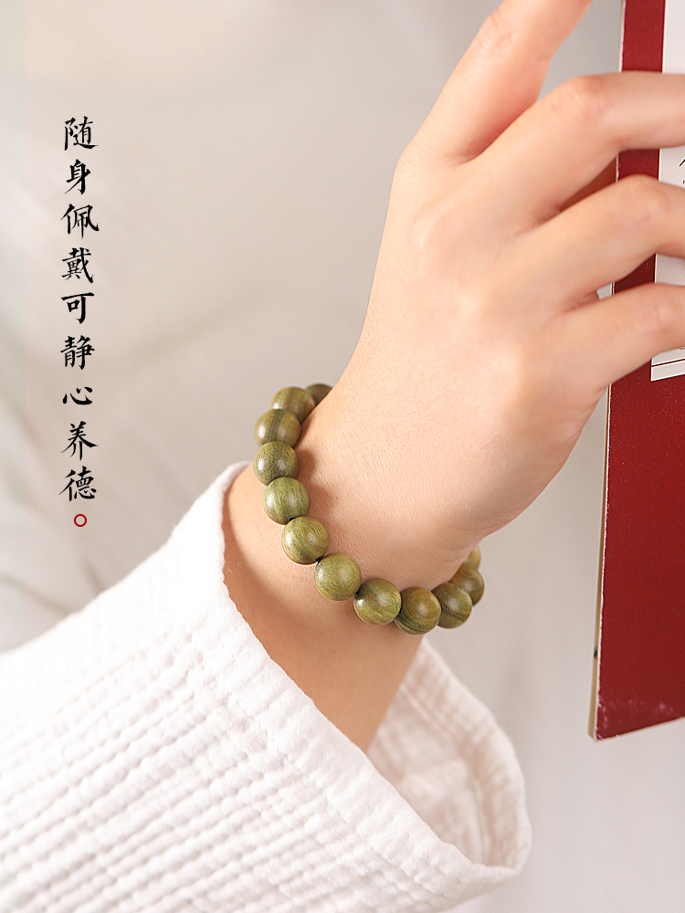ll天然绿檀手串男款盘玩绿檀木手串文玩沉香盘珠檀香木质佛珠手串