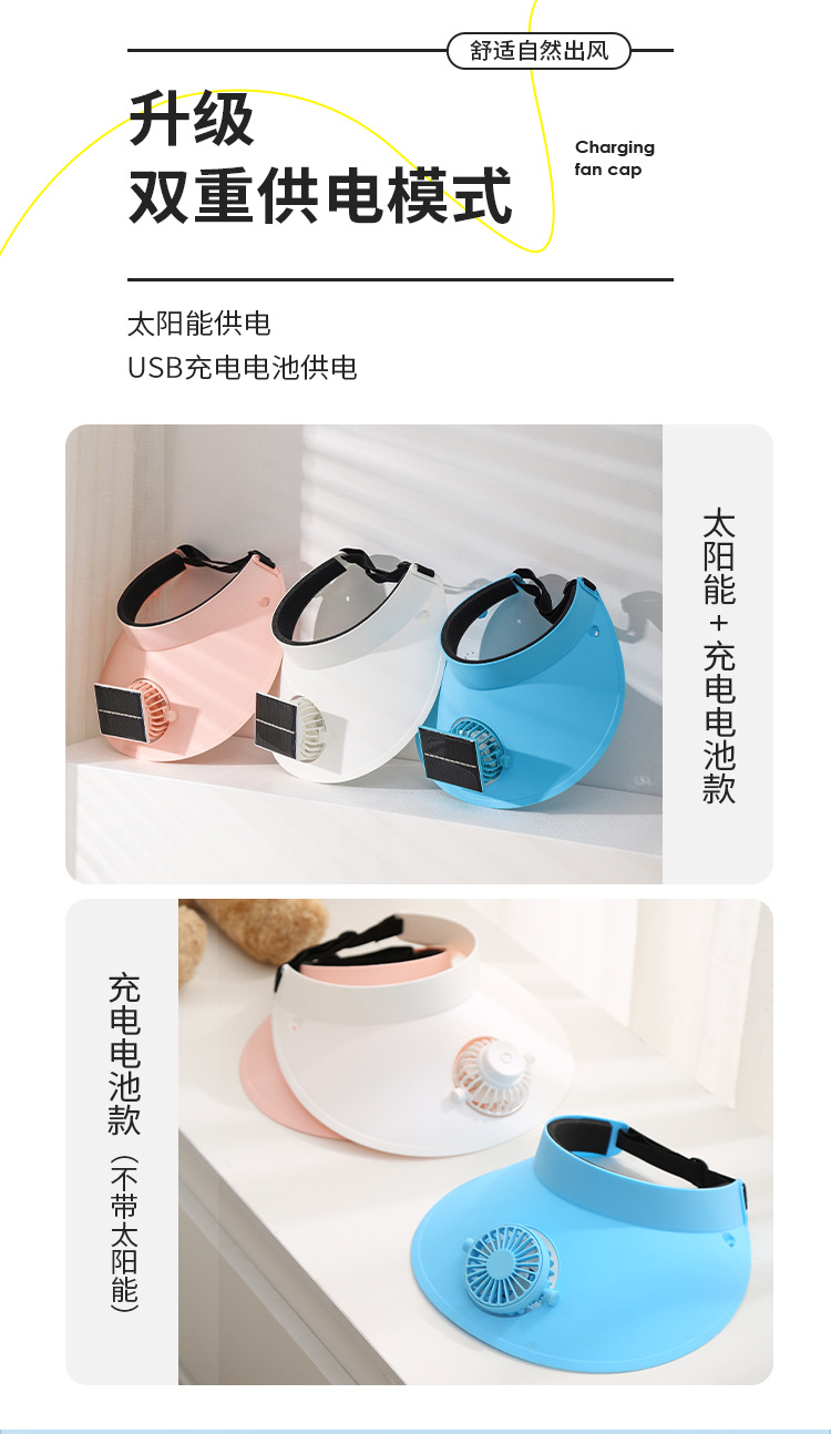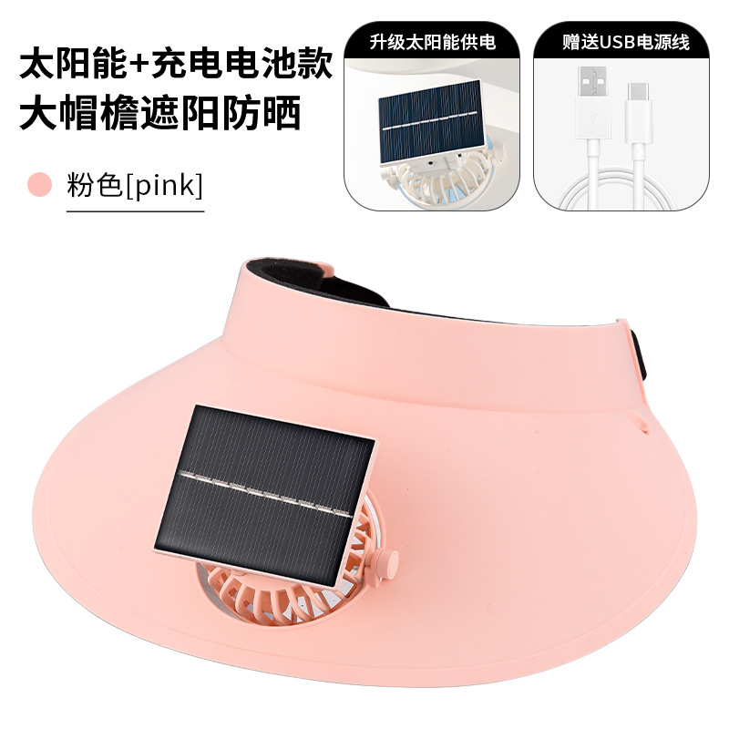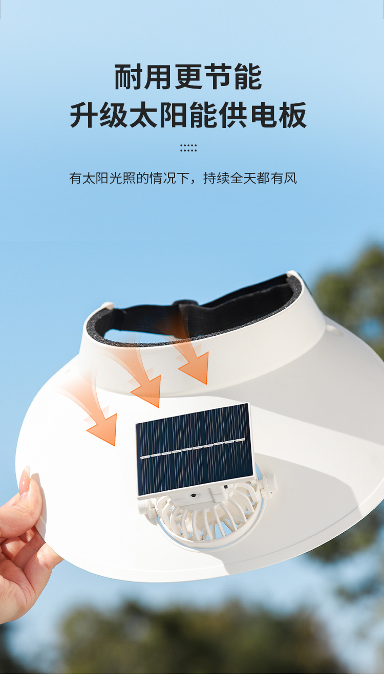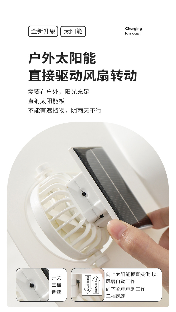 跨境新款夏季遮阳太阳能风扇可旋转大风力户外usb充电帽子风扇