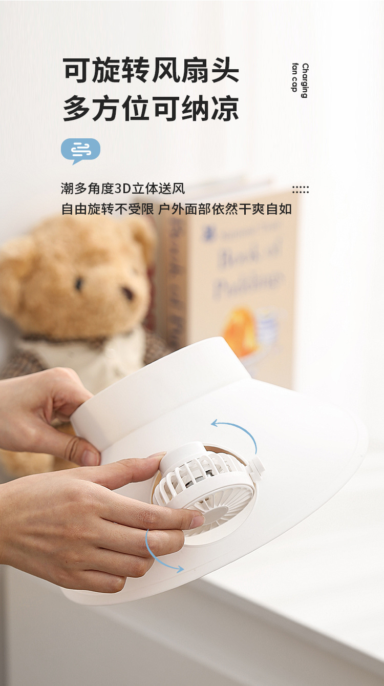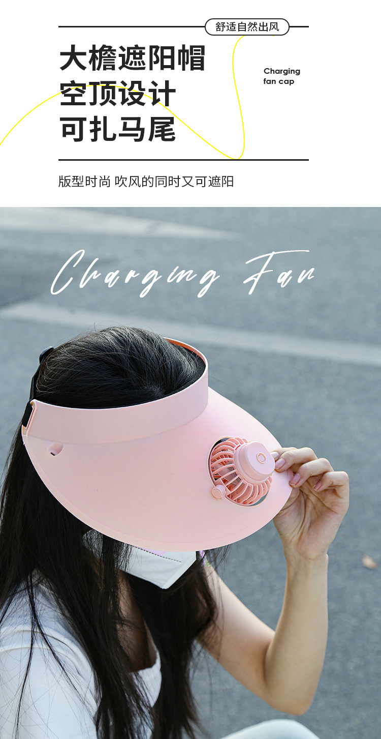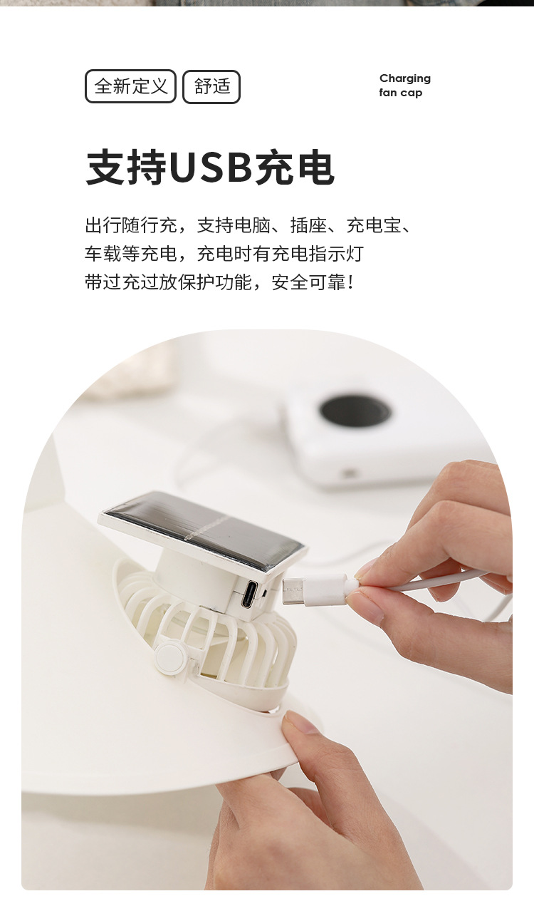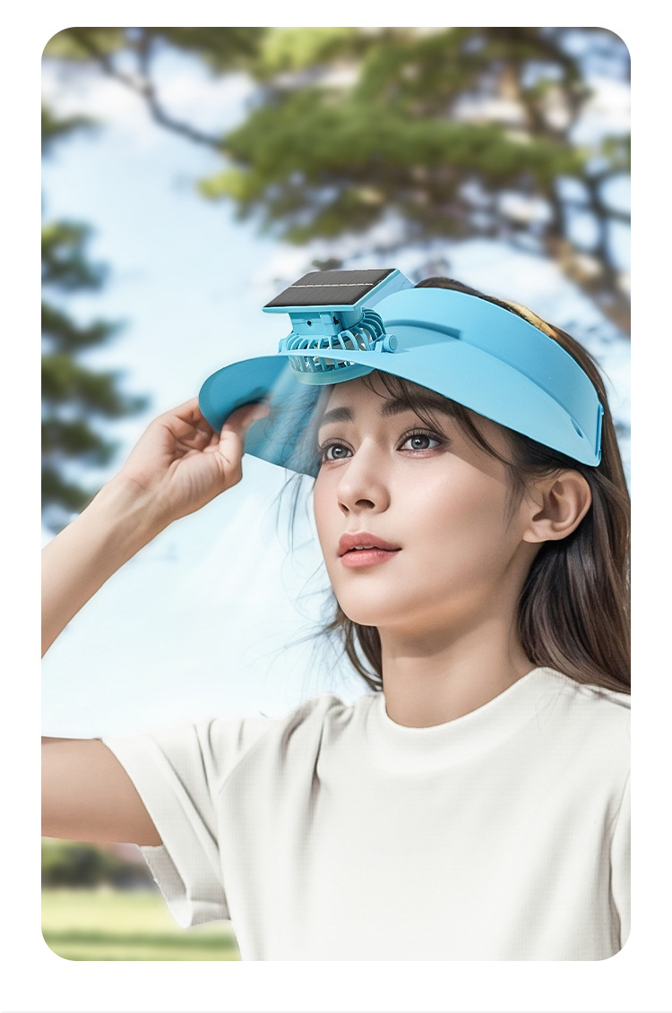 跨境新款夏季遮阳太阳能风扇可旋转大风力户外usb充电帽子风扇