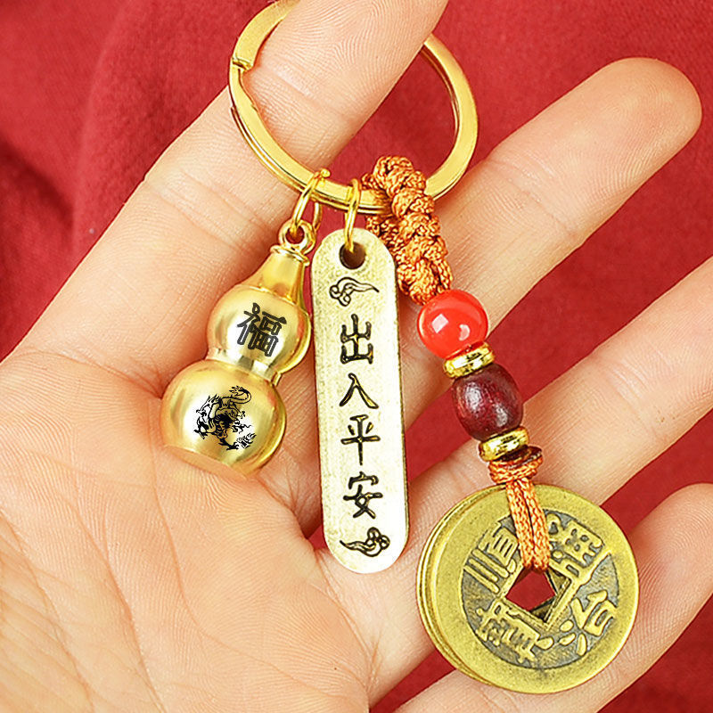 网红钥匙扣2024年新款黄铜空心小葫芦汽车朱砂十二生肖男女钥匙链