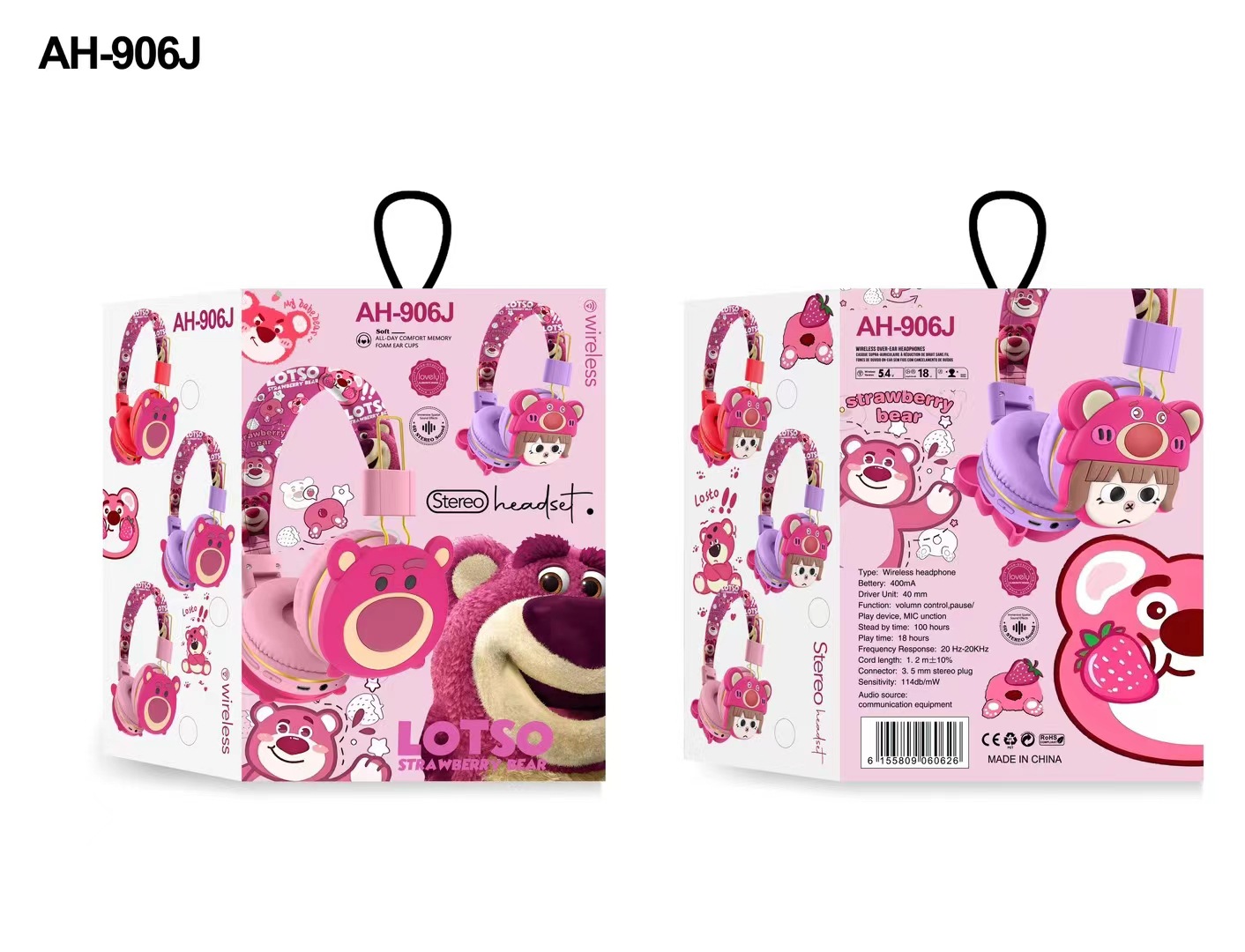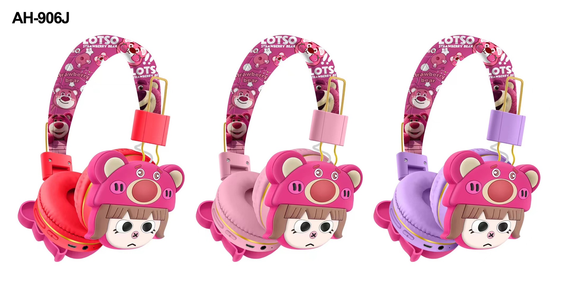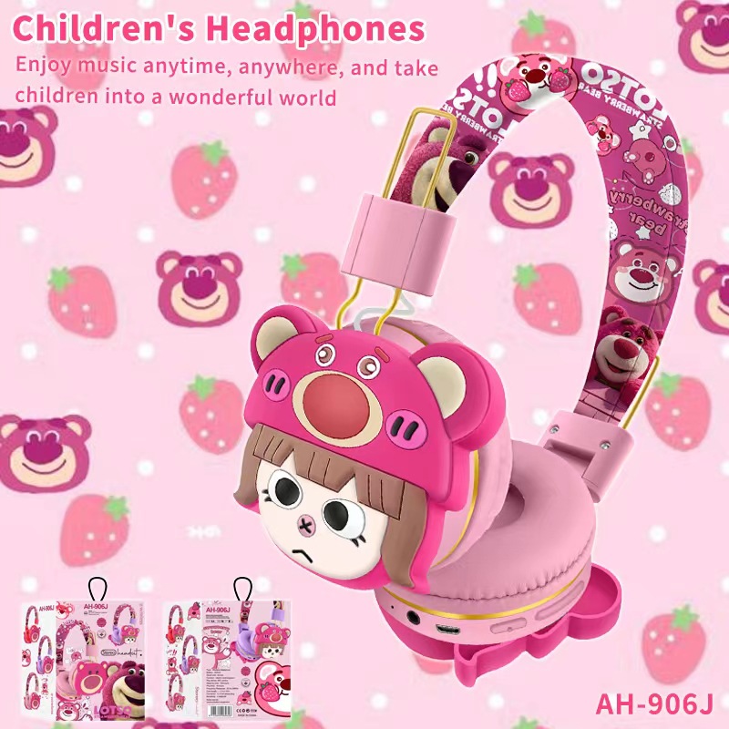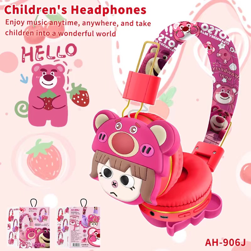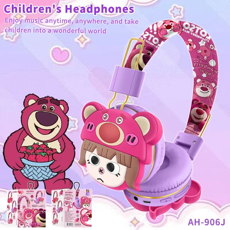 AH-906J 外贸新品蓝牙耳机儿童卡通可爱草莓熊创意头戴式无线耳麦