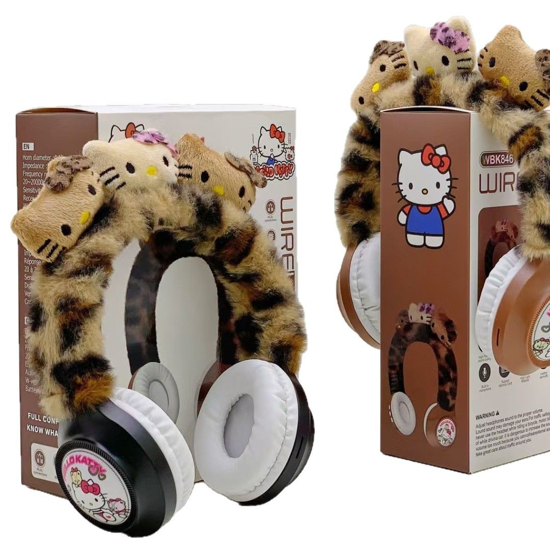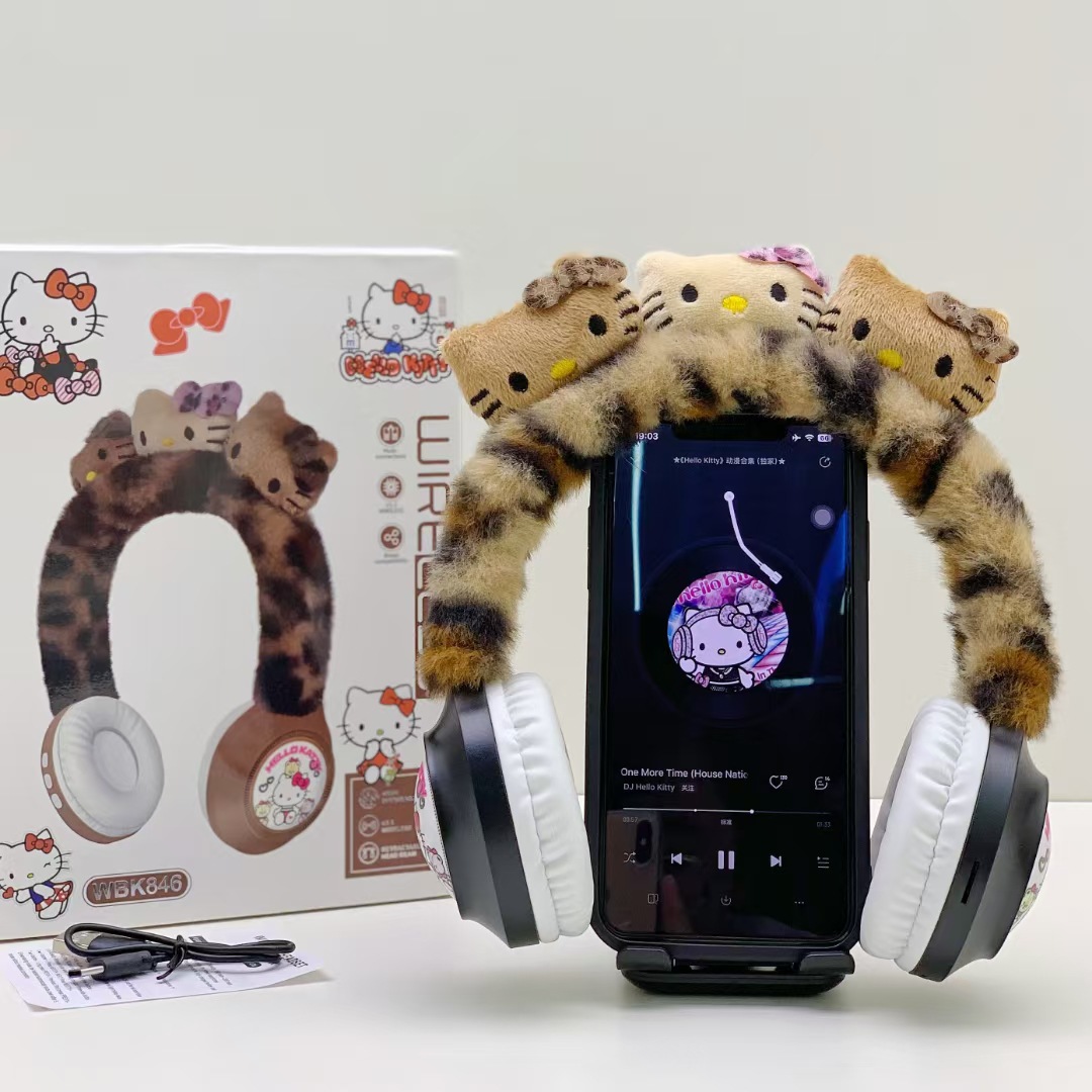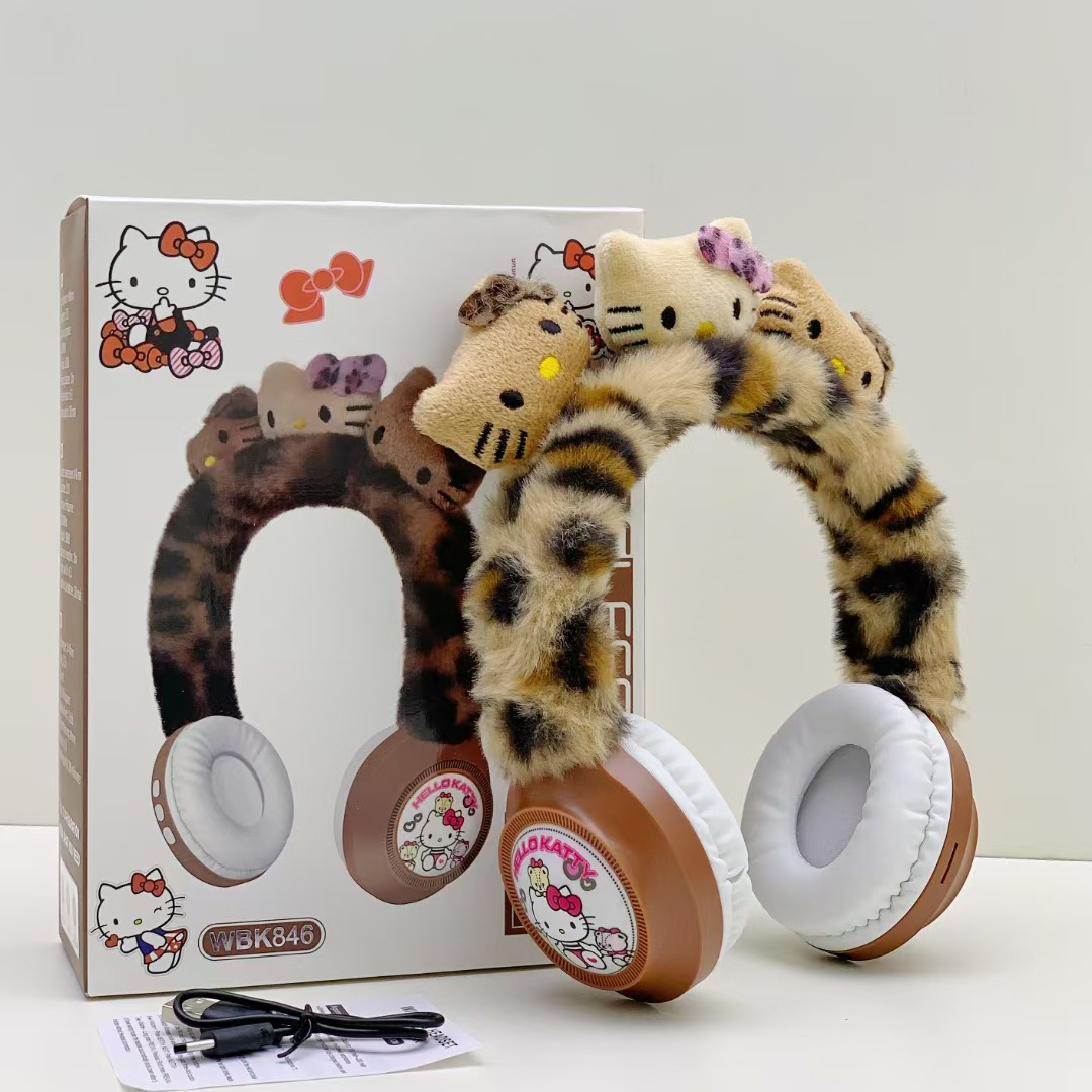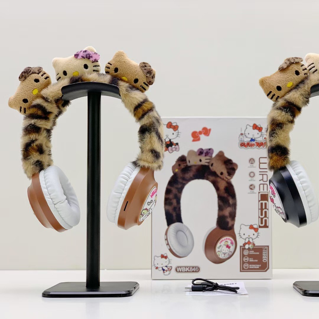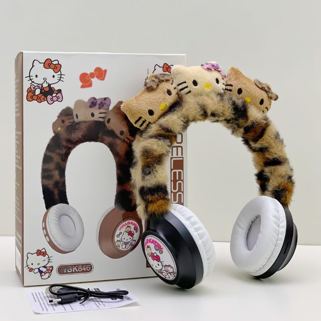 WBK846 跨境卡通KT猫毛绒头戴蓝牙耳机礼品保暖无线儿童卡通耳机