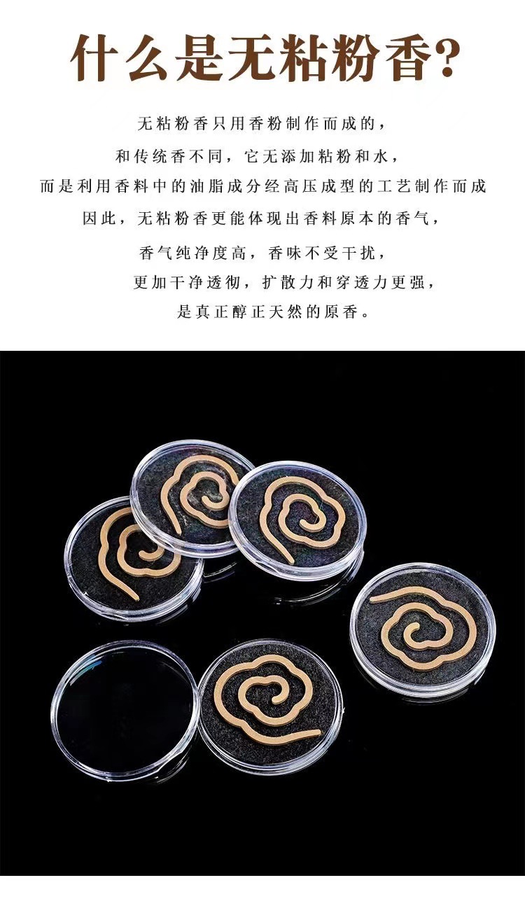抖音爆款鹅梨帐中香祥云盘香无黏粉檀香沉香虫漏厂家批发香薰